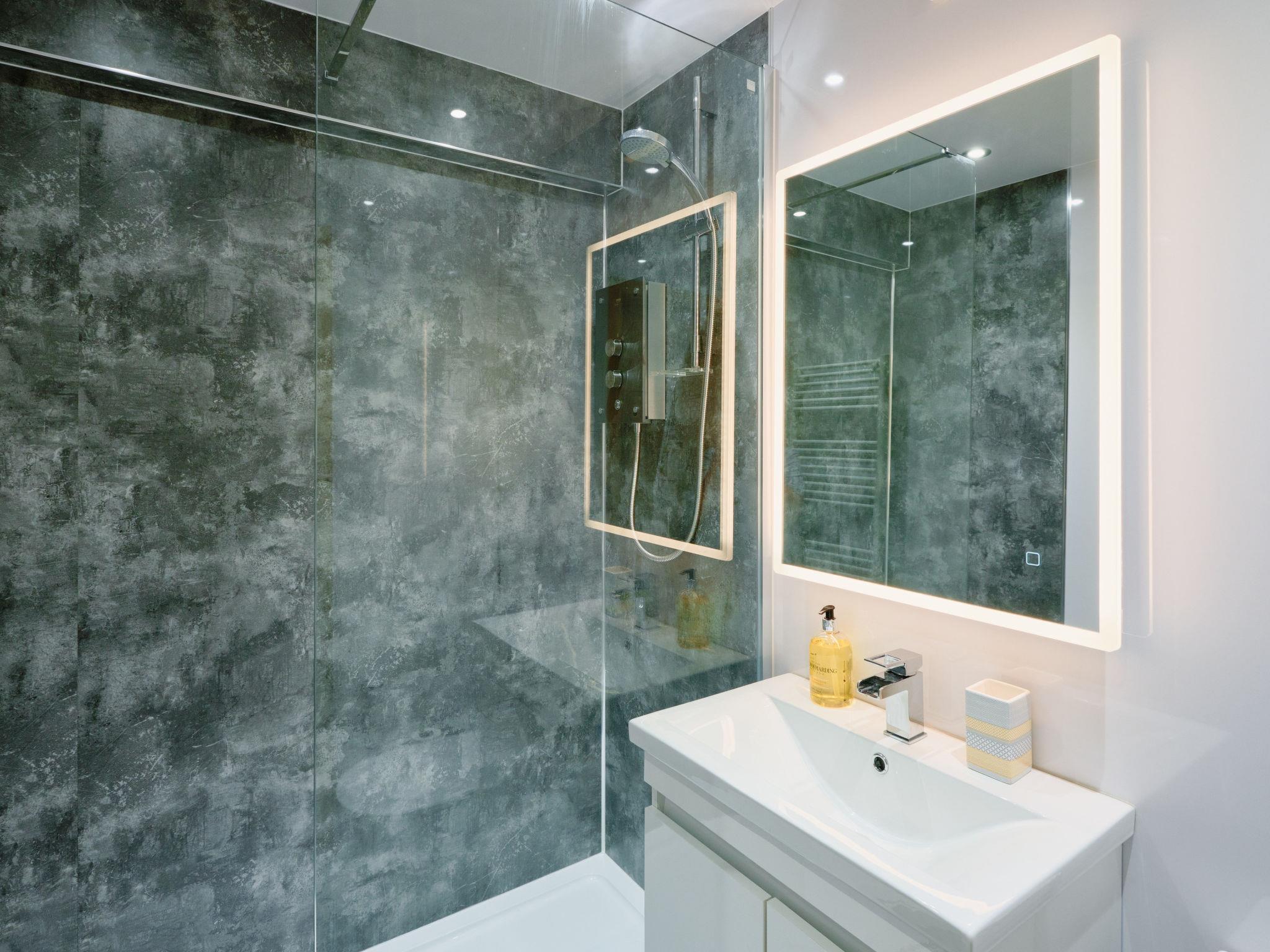 Porthleven: Apartment block. Supermarket 100 m, restaurant, sandy beach 300 m.