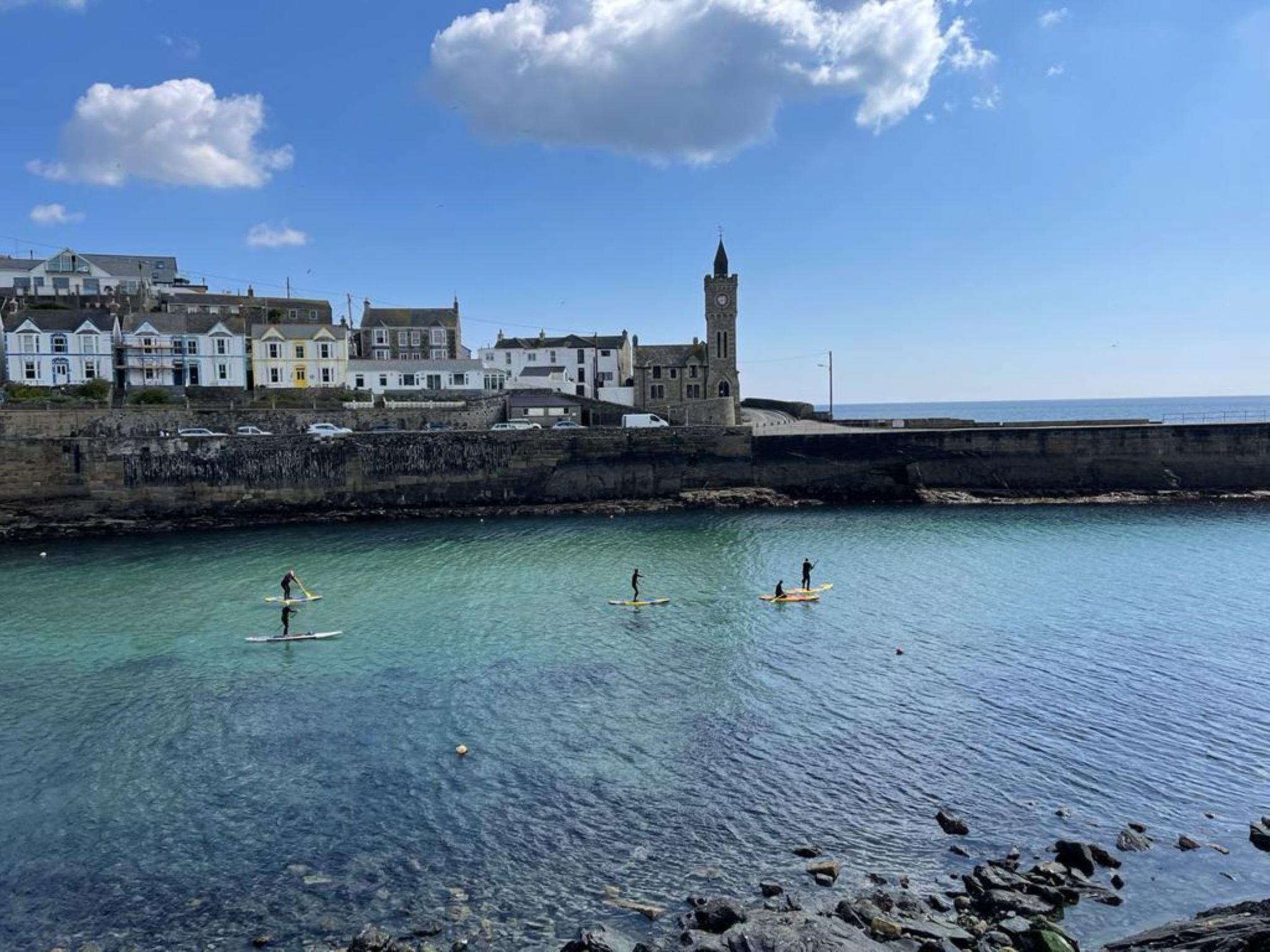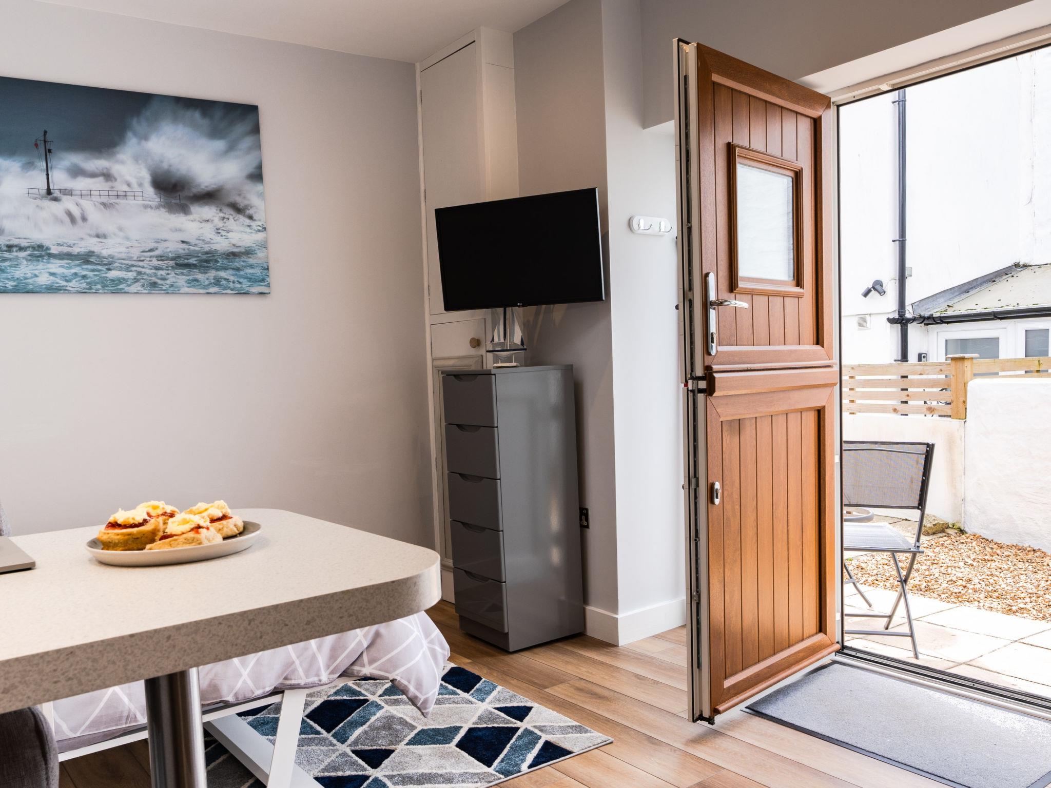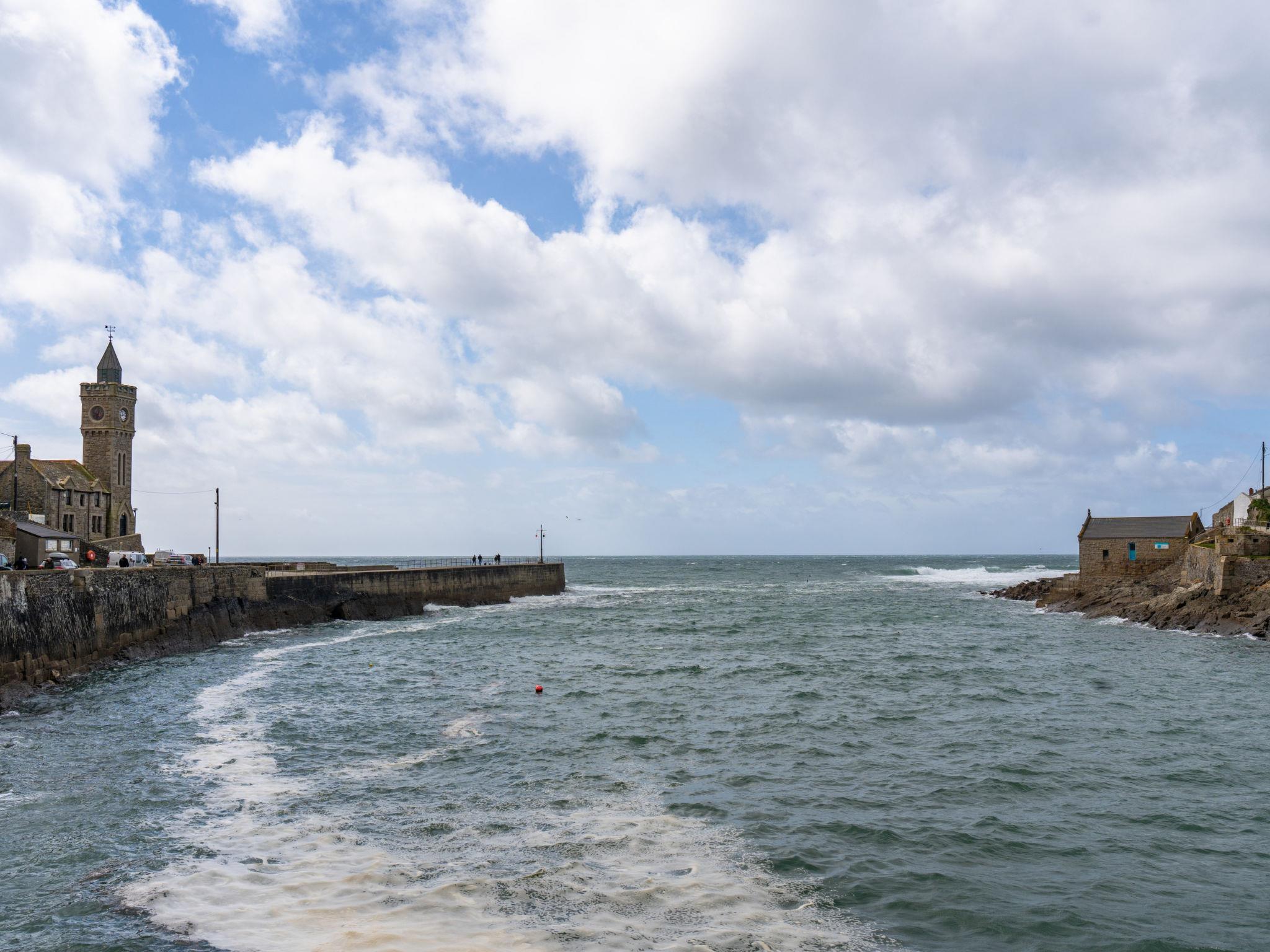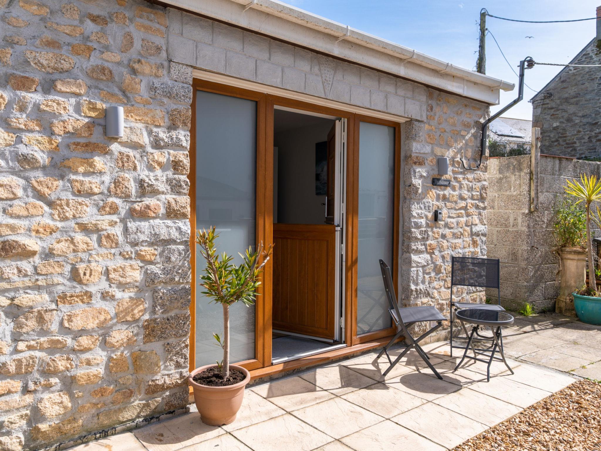 Porthleven: Apartment block. Public parking. Supermarket 100 m, restaurant, sandy beach 300 m.