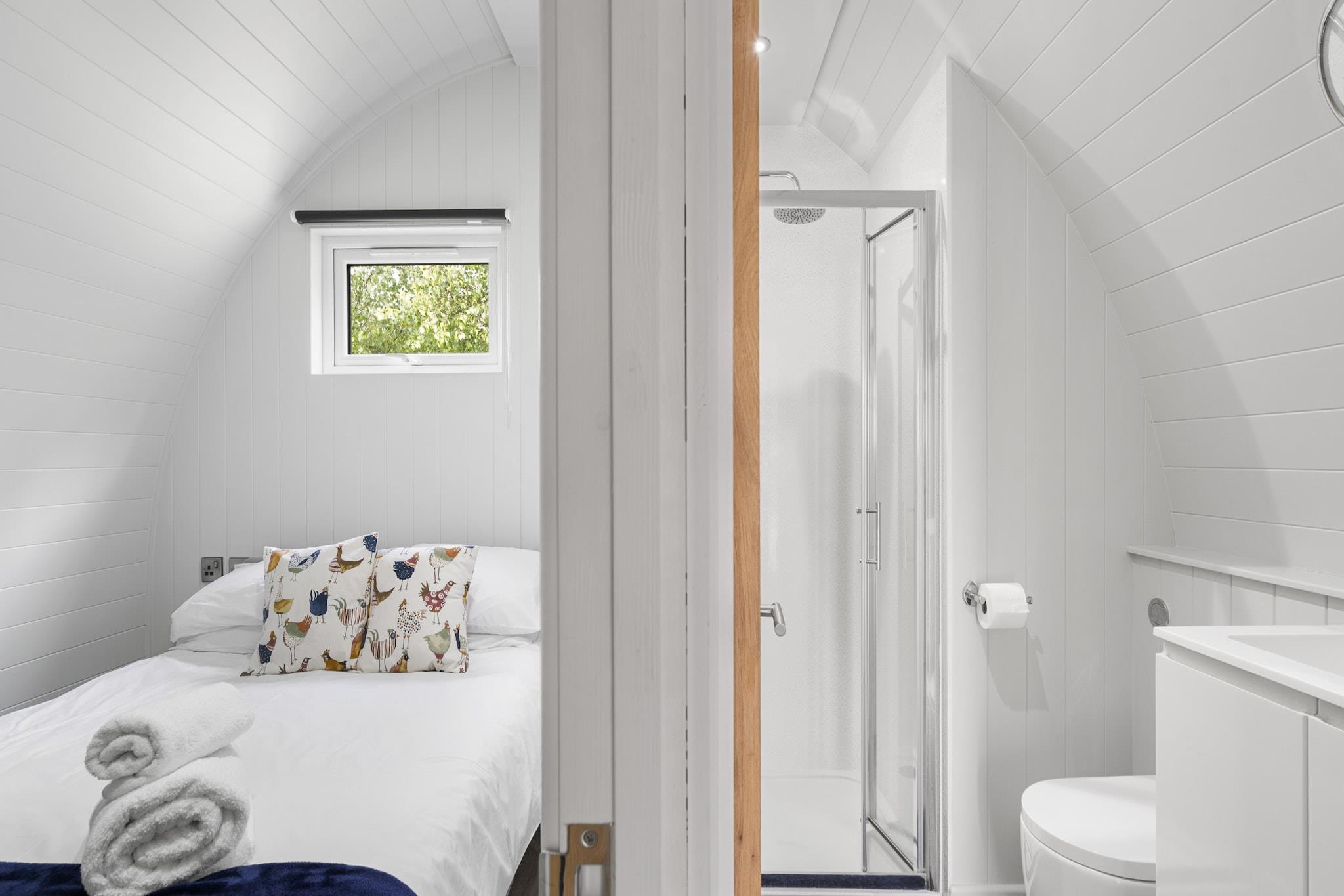Denne hyggelige hytte kan rumme op til seks gæster med to soveværelser - det ene med en dobbeltseng og det andet med to enkeltsenge - og en dobbelt sovesofa i stuen. Ideel for familier og par, ejendommen er kæledyrsvenlig for op til to velopdragne kæledyr (mod et natligt gebyr). Et privat brændefyret spabad tilbyder fredfyldt udsigt over søen, og opholdet inkluderer gratis adgang til en gårdpark på stedet, hvor gæsterne kan møde dyr som alpakaer og lam. Der er grill til lune sommeraftener, og gæsterne får også rabat i gårdens butik med lokale råvarer. Beliggende kun få minutters kørsel fra centrum af Hertford og A10, tilbyder denne chalet den perfekte balance mellem landlig fred og bymæssig bekvemmelighed. Nærliggende attraktioner omfatter Hertford Castle med dets offentlige haver og Chadwell Way Sculpture Trail - en naturskøn 5-mile vandrerute gennem Hertford, Ware og Great Amwell. Lokale pubber, caféer og shoppingmuligheder er let tilgængelige, hvilket gør det til et godt forbundet, men alligevel fredeligt oase. Indenfor vil gæsterne finde et køkken, spisestue og opholdsstue i åbent plan samt et privat brusebad. Køkkenet er udstyret med alt det nødvendige, herunder komfur, køleskab, kedel og spiseplads, mens varme, sengetøj, håndklæder og slutrengøring er inkluderet i opholdet. Yderligere regler gælder, såsom ingen svømning i søen og restriktioner for åben ild inde, med check-in tilgængelig på udvalgte dage fra kl. 15-18.