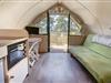 Oplev en charmerende, kæledyrsvenlig glampinghytte beliggende ved siden af ??den fredelige Langley Dam, med en fantastisk udsigt over fiskesøen. Designet til at ligne en traditionel klinkerbåd, kombinerer denne unikke kahyt nautisk charme med moderne komfort. Sover op til 4 gæster (plus et ekstra barn), med en hyggelig fast king-size seng og en alsidig sovesofa, perfekt til at slappe af efter en dag med udforskning. Det veludstyrede tekøkken omfatter vask, kedel, brødrister, køleskab med lille isboks, keramisk kogeplade og elektrisk ovn, mens den private terrasse med siddepladser og en bålplads/grill er et ideelt sted at slappe af og nyde de naturskønne omgivelser. Hyttens udendørsområde ligger i smukke haver og naturområder og er perfekt til at slappe af med dine kæledyr og få mest muligt ud af landskabet. Det gruslagte område med siddepladser og en bålplads giver dig mulighed for at nyde lange aftener udendørs, mens det omkringliggende miljø ved søen indbyder til at se dyreliv, stjernekiggeri og fredelige gåture. Webstedet tilbyder et dedikeret legeområde for børn, designet med et nautisk tema, med rutsjebane, lastnet, balancebjælker, lille båd og hævet platform, hvilket giver endeløs sjov for børn. Indvendigt kan kabinen prale af et komfortabelt en-suite brusebadeværelse, smart-tv med dvd og WiFi, hvilket gør det til et hyggeligt hjem væk fra hjemmet. Uanset om du søger et roligt tilflugtssted nedsænket i naturen eller et familieeventyr med dine kæledyr, tilbyder denne glamping-oplevelse ved søen en perfekt blanding af rustik charme, naturskøn skønhed og udendørs sjov i indbydende, kæledyrsvenlige omgivelser.