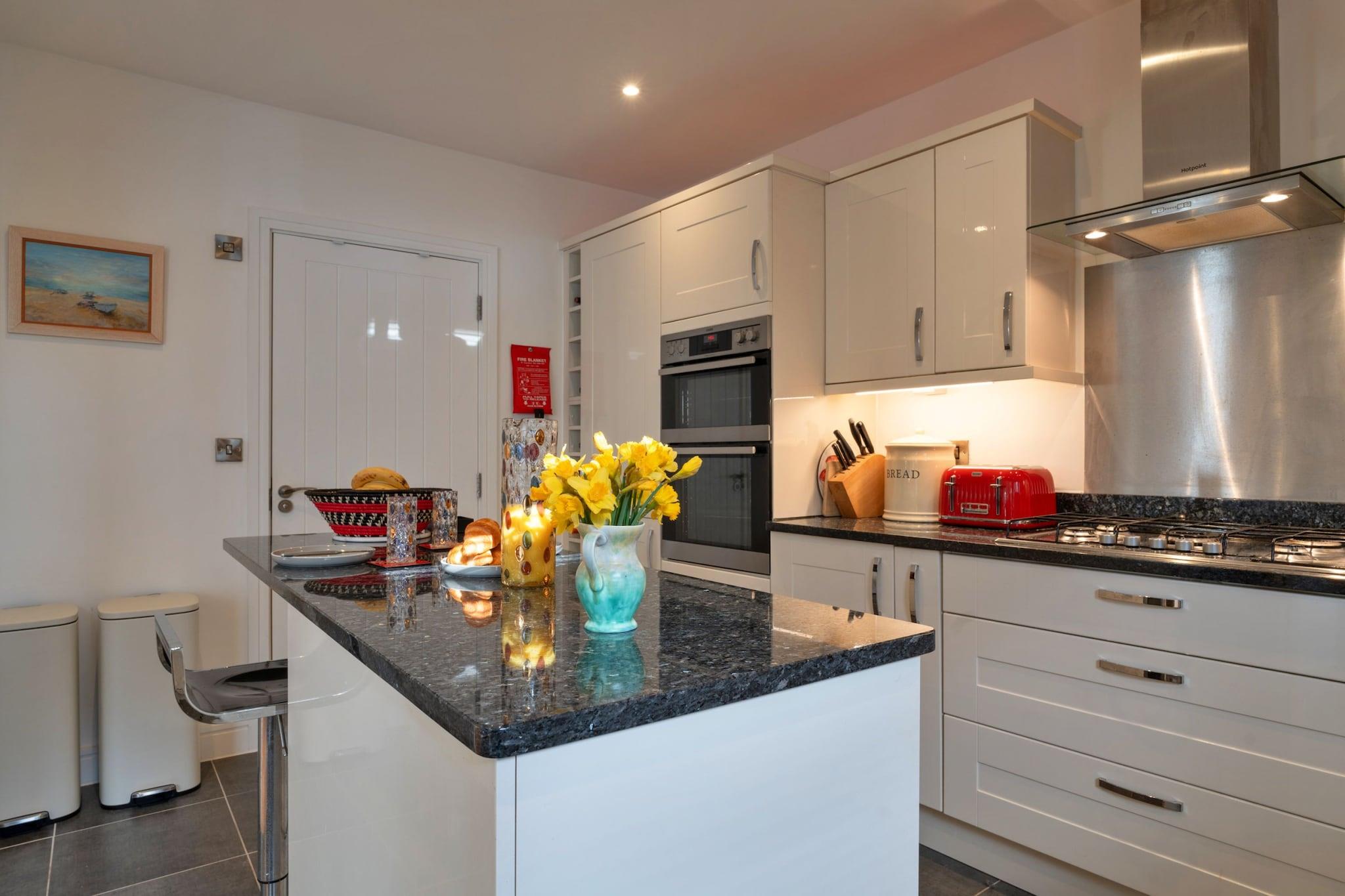 Dette charmerende ombyggede vognhus med tre soveværelser tilbyder et roligt tilflugtssted på den fredelige, afsondrede grund ved Holcombe Hall. Beliggende over Holcombe-stranden, mellem Dawlish og Teignmouth, er det den perfekte base for at udforske den fantastiske South Devon-kystlinje. Ejendommen kan prale af et rummeligt og komfortabelt planløsning med et opholds- og spiseområde i åbent plan på øverste etage, sømløst forbundet med et moderne køkken og en garderobe med toilet. Gæster kan træde udenfor for at nyde to overdækkede solterrasser, ideelle til at slappe af i den friske kystluft. I stueetagen finder du et luksuriøst soveværelse med en super kingsize seng og en-suite, et andet soveværelse med en kingsize seng og et hyggeligt dobbeltværelse perfekt til børn. Et familiebadeværelse fuldender layoutet, hvilket sikrer rigelig plads til op til seks gæster. En kort gåtur ned ad den private sti fører til ejendommens fælles klippetophave med en betagende udsigt over kysten. Holcombe-stranden ligger kun 5 minutter væk, og South West Coastal Path er let tilgængelig for naturskønne gåture. Du kan udforske de nærliggende byer Teignmouth og Dawlish, begge 40 minutters gang væk, med praktiske busruter for nem retur. Landsbyen Holcombe byder på en indbydende atmosfære med Crown Inn, Smugglers Inn og en sæsonåben café i bunden af ??haven. For dem, der søger mere eventyr, er Shaldon med sin zoologiske have, botaniske haver og Ness Cove kun en kort køretur væk. Exeters livlige kultur og historie, Torbays charme ved havet og den majestætiske Haytor på Dartmoor er alle inden for 30-40 minutter i bil. Denne ejendom har også sikker parkering til én bil, med yderligere parkering tilgængelig i nærheden.