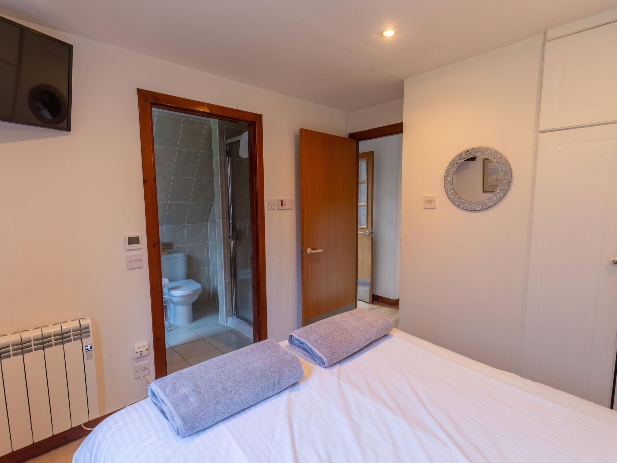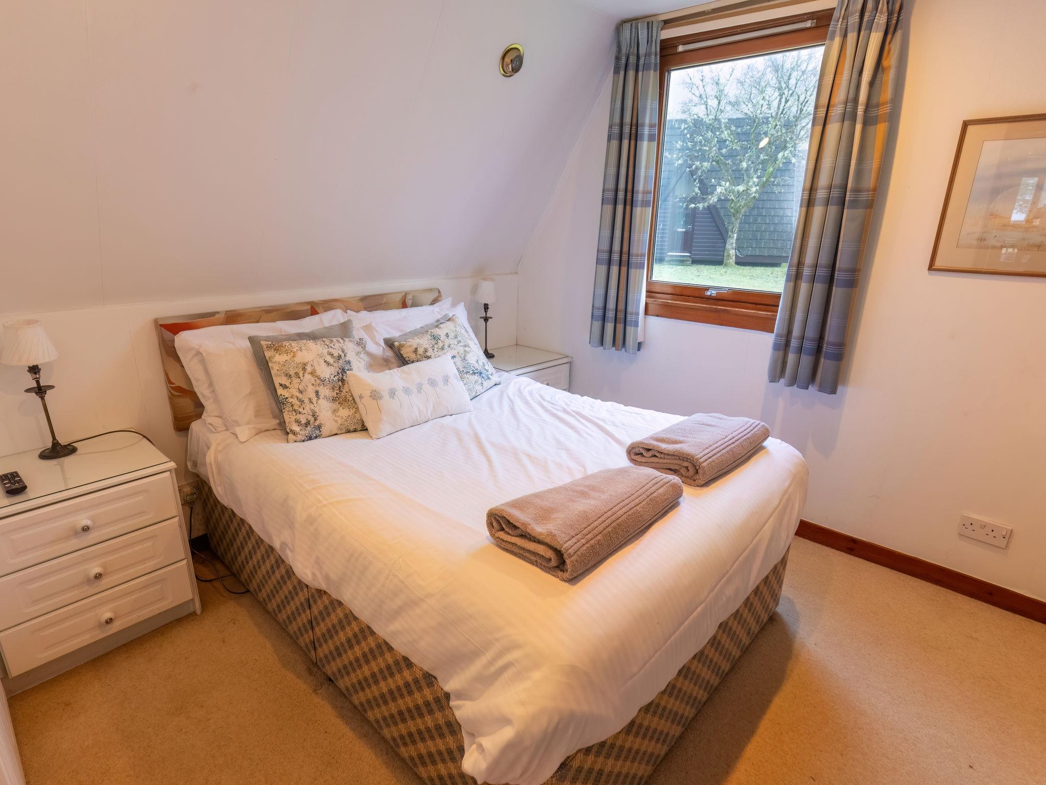 3-room chalet 59 m2. Bright, very comfortable and tasteful furnishings: open living/dining room with 1 double sofabed, dining table and TV (flat screen), radio. Exit to the terrace. 1 double bedroom with 1 double bed and shower/WC. 1 double bedroom with 2 beds. Open kitchen (4 hot plates, oven, dishwasher, microwave, grill). Bath/shower/WC. Electric heating, underfloor heating. Terrace furniture. Beautiful panoramic view of the lake and the countryside. Facilities: children's high chair, baby cot for up to 2 year olds. Internet (WiFi, free). Please note: suitable for families. Non-smoking house. Maximum 3 pets/ dogs allowed. TV only EN. Fully enclosed non-slip, dog safe, decking with gas BBQ and uninterrupted views of Loch Oich. HI-40086-F