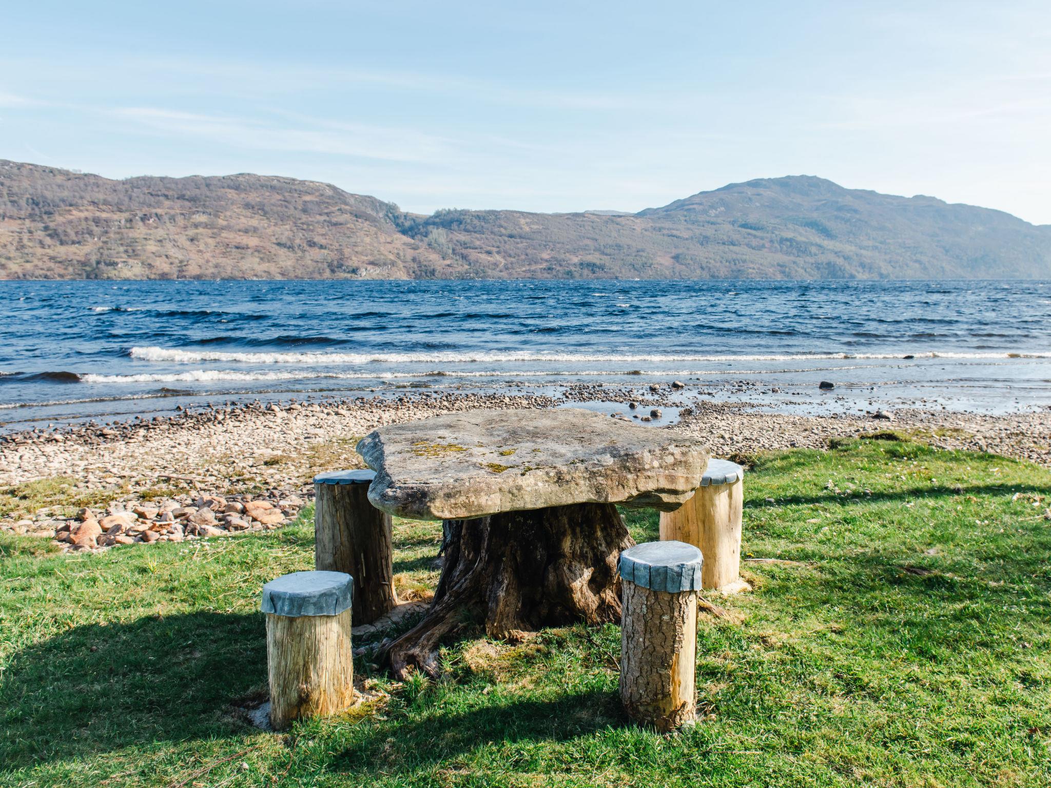 Invermoriston 20 km from Drumnadrochit: A unique opportunity to stay on the shores of Loch Ness in fifty acres of stunning well kept grounds on the Glenmoriston Estate. Fort Augustus Church is only 11km away and welcomes all worshippers. Beautiful, historical cottage "Farmburn Bothy", detached, renovated in 2024. On the outskirts, 1 km from the centre of Invermoriston, in a secluded, sunny position, 20 m from the lake. For shared use: meadow, lawn for sunbathing, beautiful garden to relax, courtyard. Rowing boat. Pre-arrival grocery service. Airport transfer (extra). 4x4 car recommended in winter. Parking at the house. Shop 1 km, grocery 1 km, supermarket 40 km, restaurant 2 km, café 2 km, bus stop "Invermoriston" 1 km, railway station "Inverness" 40 km. Golf course (18 hole) 18 km, riding stable 20 km. Nearby attractions: Urquhart Castle 20 km, Loch Ness Monster exhibition 20 km, Glen Affric 40 km, Invermoriston Waterfalls 1 km. Well-known lakes can easily be reached: Loch Ness 20 m. Please note: car recommended. The complex has another 2 houses for rent.