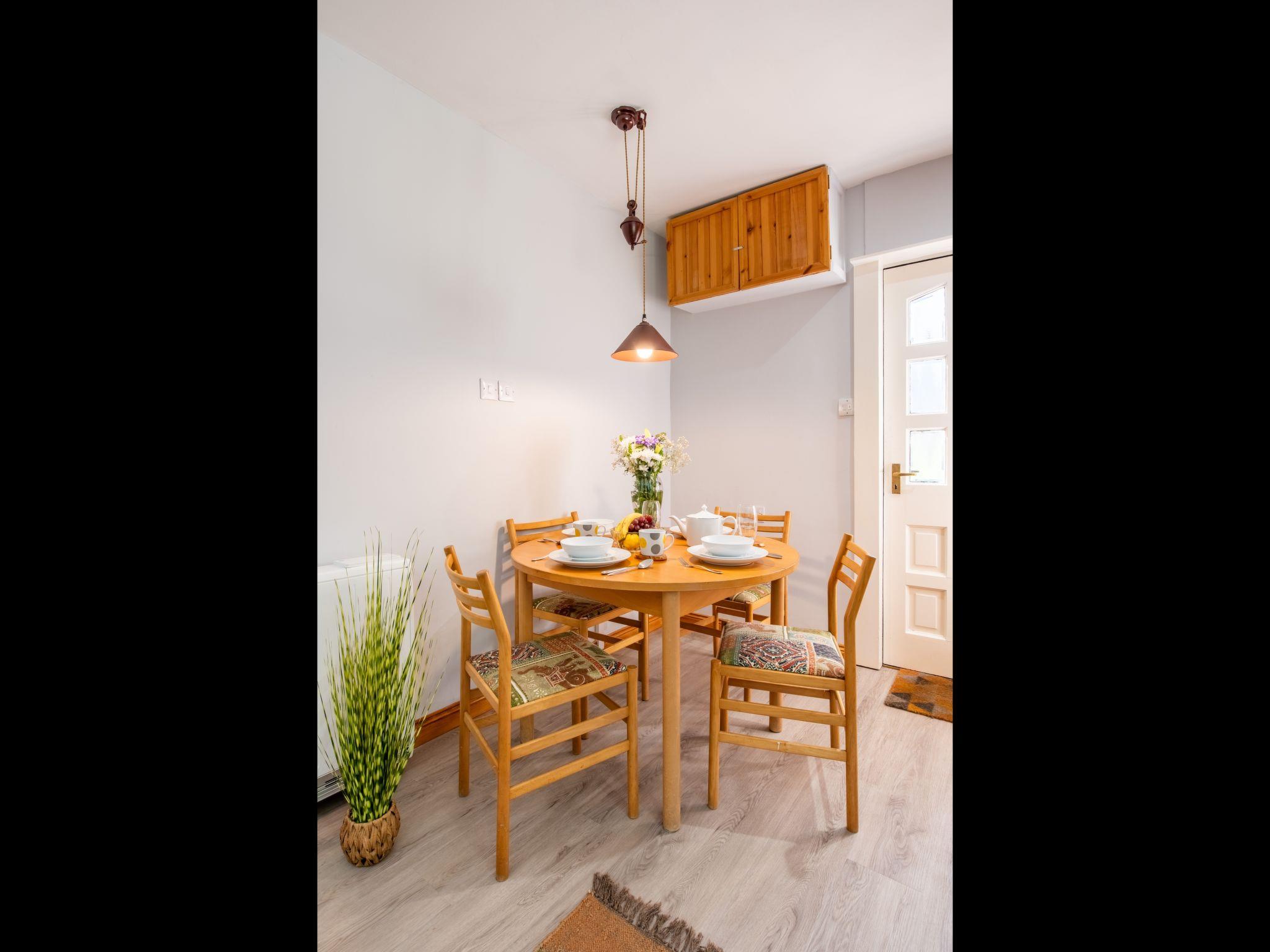 6-room cottage. Spacious and bright, tasteful and stylish furnishings: living room with TV (flat screen), wood-burning stove. 1 double bedroom with 1 double bed. 1 room with 2 beds. 1 room with 1 x 2 bunk beds. Open living/dining room. Kitchen (oven, dishwasher, 4 induction hot plates, microwave, grill) with dining table. Shower/WC. Heating. Upper floor: mezzanine with 1 double bed. Conservatory. Beautiful view of the lake and the countryside. Facilities: washing machine, iron, children's high chair, baby cot for up to 2 year olds (extra), hair dryer. Internet (WiFi, free). Please note: suitable for families one double bedroom is outside the apartment. Property consists of 2 separate properties side by side. One 3 bedrooms and a self contained studio with bedroom.