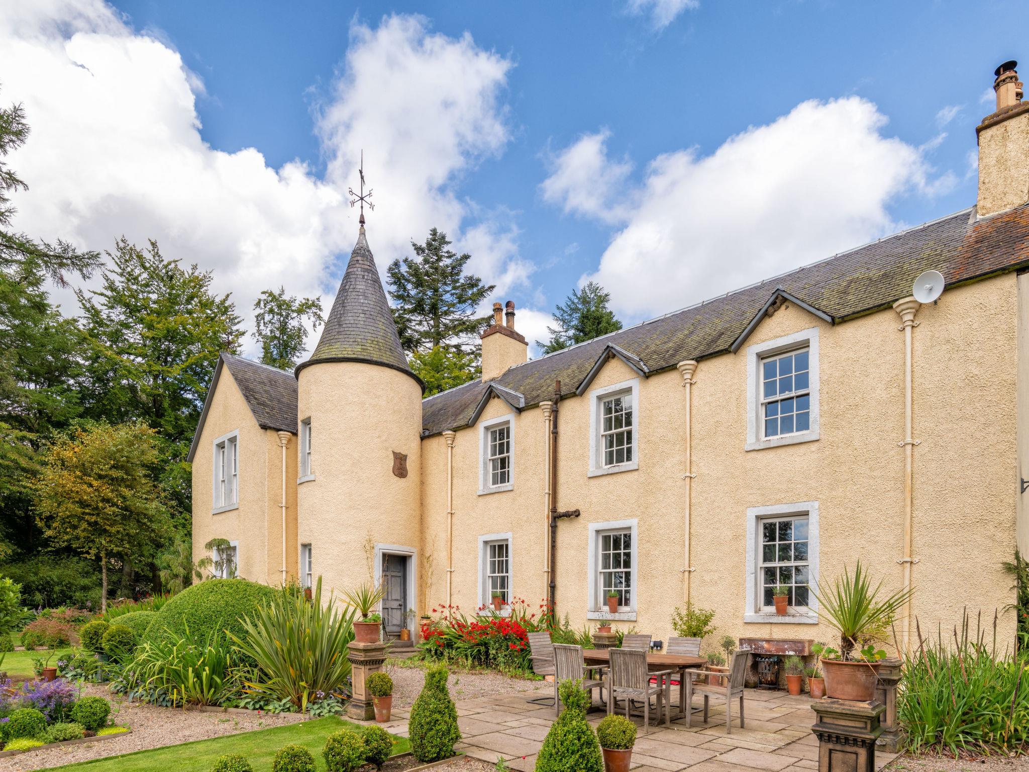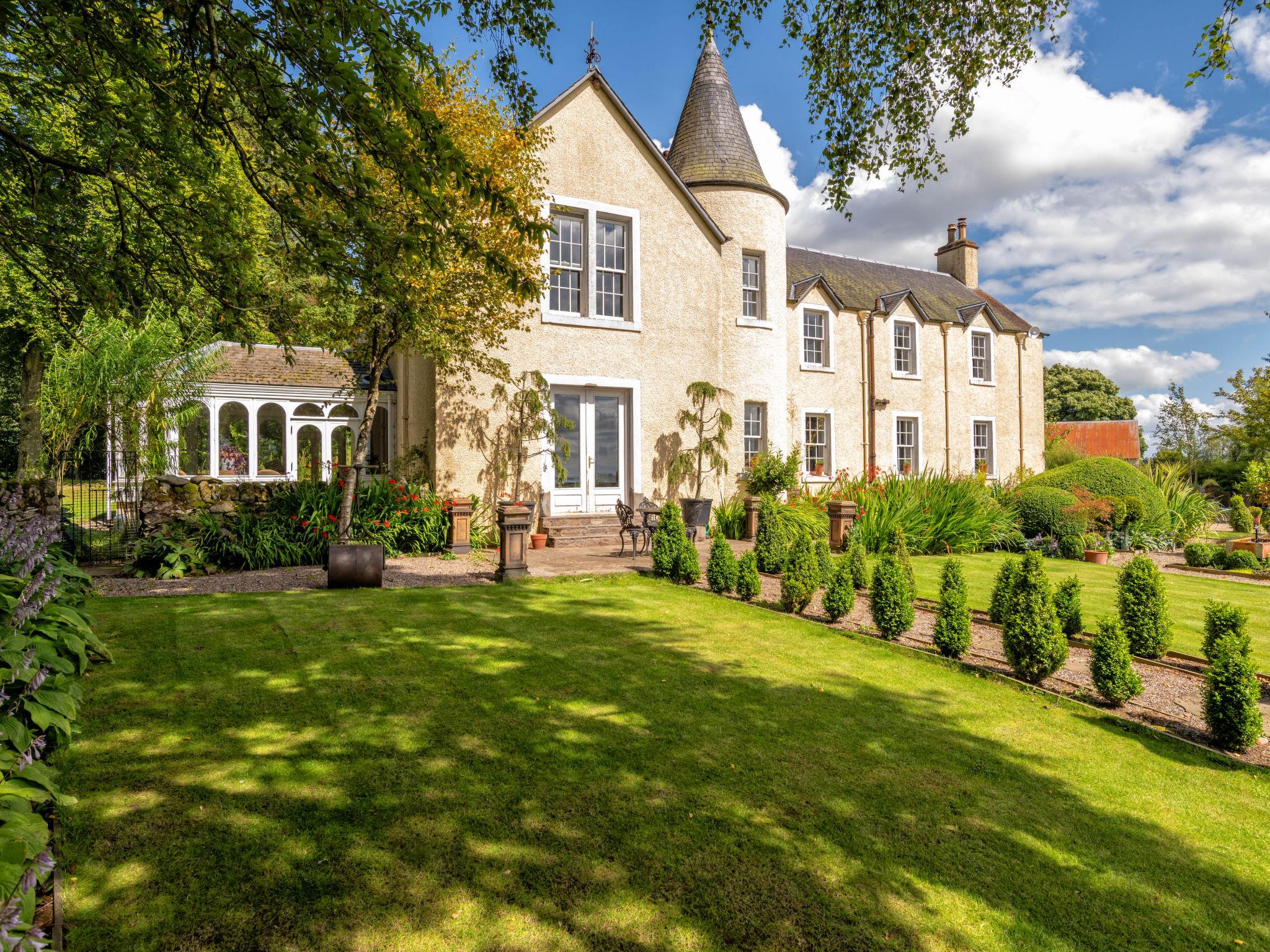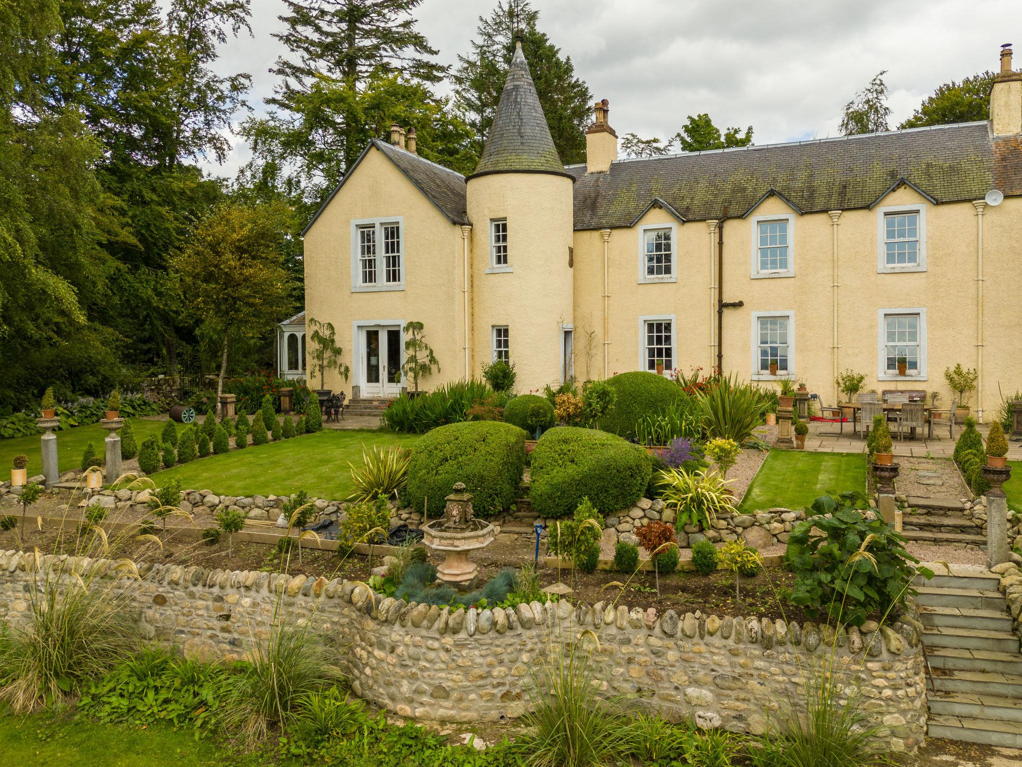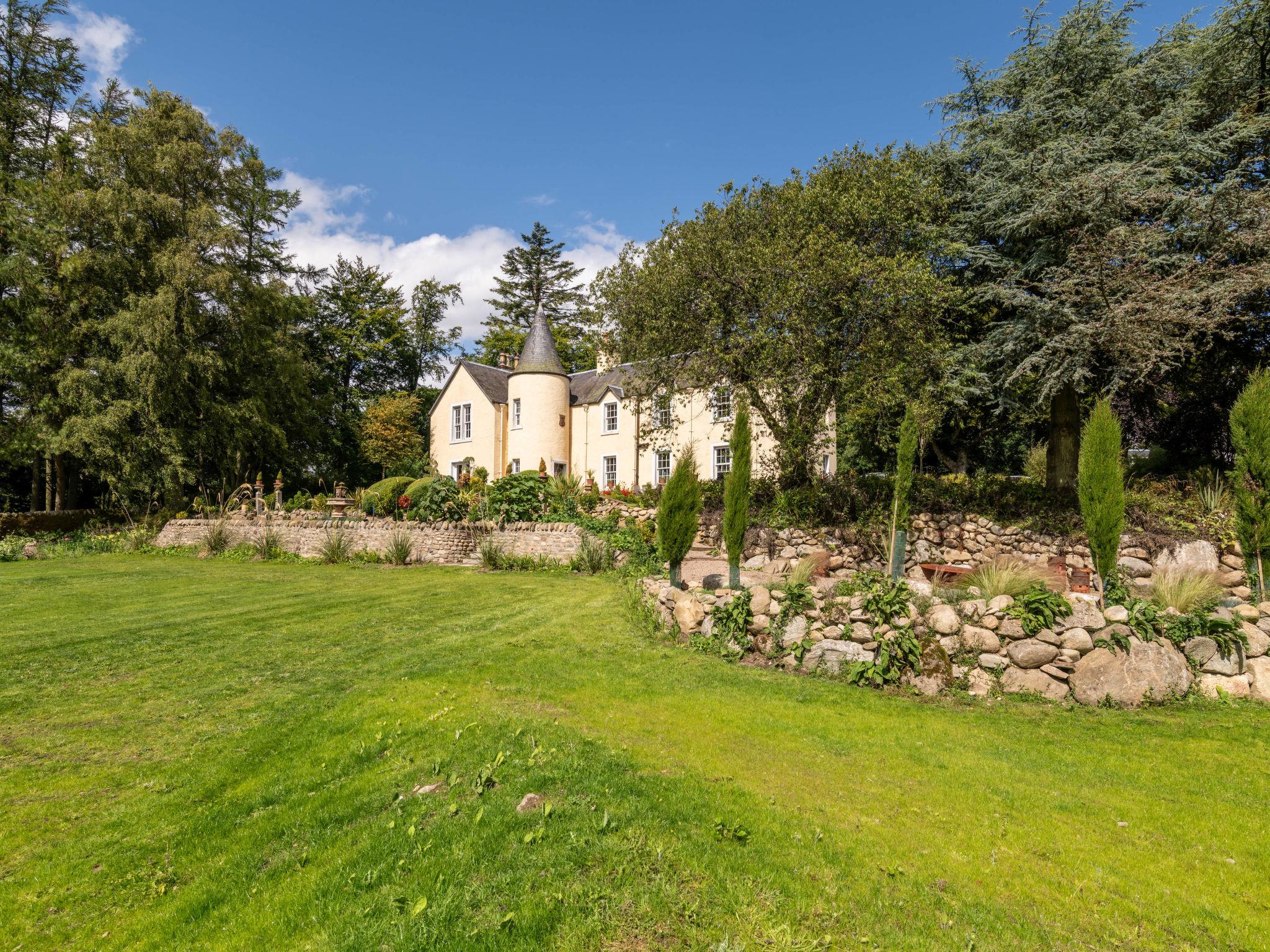 Very beautiful, comfortable country house "Glenquiech House", detached. In the district Angus Glens, in a secluded position, in the countryside. Private: beautiful garden to relax. Terrace, garden furniture, barbecue, fireplace. In the house: sun terrace. Parking at the house. Shop 18 km, supermarket 18 km, restaurant 8 km, bar 18 km, bus stop "Shielhill Bridge Cottage" 11 km. Nearby attractions: Broughty Castle Museum 44 km, Glamis Castle 27 km, Monikie Country Park 39 km. Please note: car recommended. The owner does not accept any groups. The owner does not accept any youth groups. Wake to birdsong, walk in private woodlands and relax by a crackling fire. Our five-bedroom country house offers the perfect retreat for families and groups seeking tranquillity in the heart of the Angus Glens.