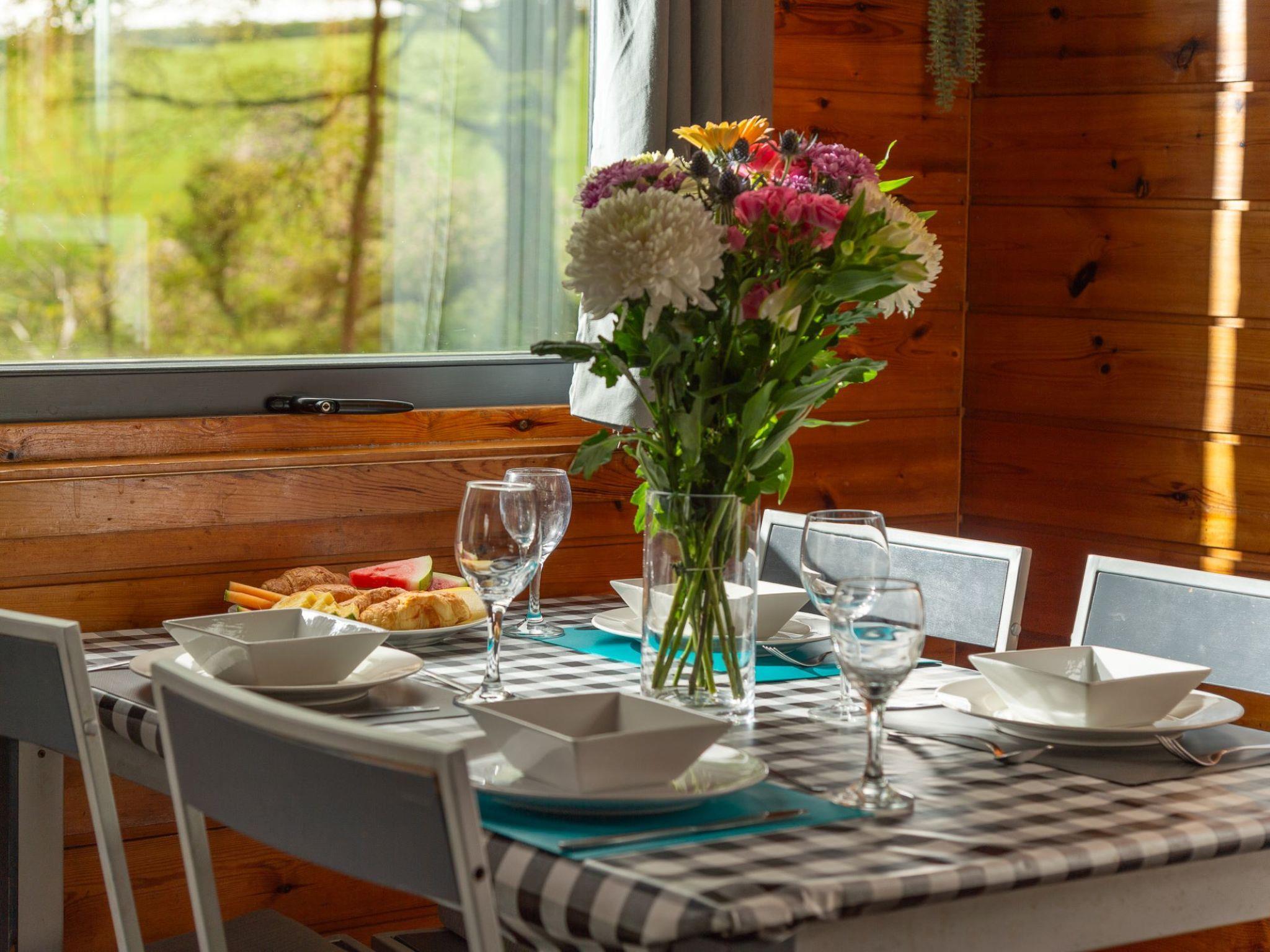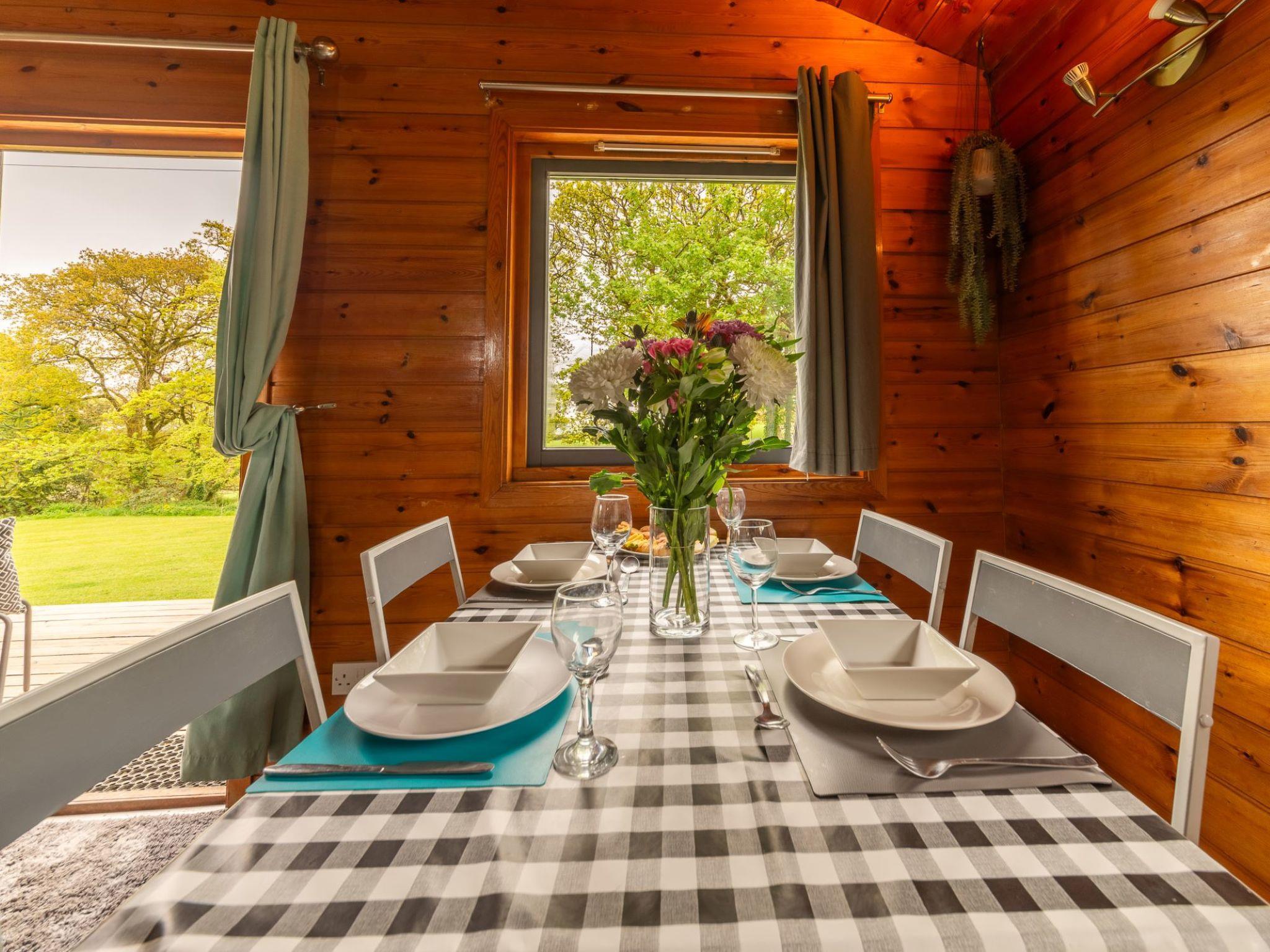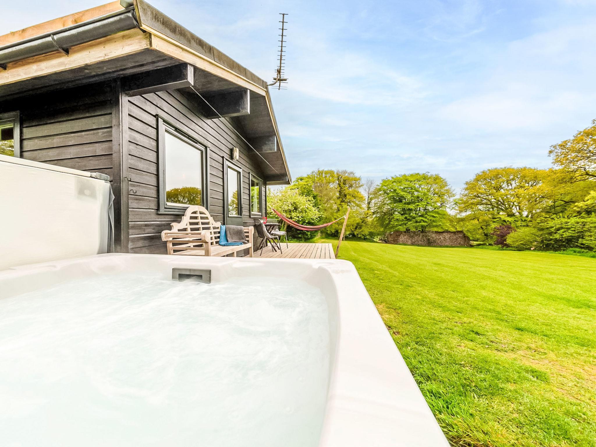 Please note as this is an eco concious site you will need to bring your own towels. Beautiful, cosy chalet "Lodge 4 - Hot Tub Lodge", surrounded by trees and fields. On the outskirts, 10 km from the centre of Launceston, in a secluded position, 1 m along the wooded area, 20 km from the sea, 250 m from the lake, 200 km from the beach, in the countryside. For shared use: trees, orchard. Private: hot tub, terrace, garden furniture. In the house: central heating system. Parking. Grocery 11 km, supermarket 11 km, bakery 10 km, café 3 km, bus stop "North Petherwin Bus Shelter" 6 km, railway station "Liskeard" 38 km, sandy beach "Crackington Haven" 18 km, lake Roadford Lake 20 km. Sailing school 20 km, tennis 12 km, minigolf 21 km, fishing possibilities 20 km. Nearby attractions: Summerleaze Beach 21 km, Halvana Plantation 25 km, Tintagel Castle 28 km, Trethorne Leisure Park 15 km, Boscastle Historical Fishing Port 25 km, Hidden Valley Puzzle Park 15 km. Well-known lakes can easily be reached: Roadford Lake 20 km. Hiking paths: Nines Stone Circle 29 km, Crackington Haven Circular Walk 20 km. Please note: suitable for families. On the estate animal husbandry. Animals in the neighbourhood. The complex has another 5 chalets for rent.