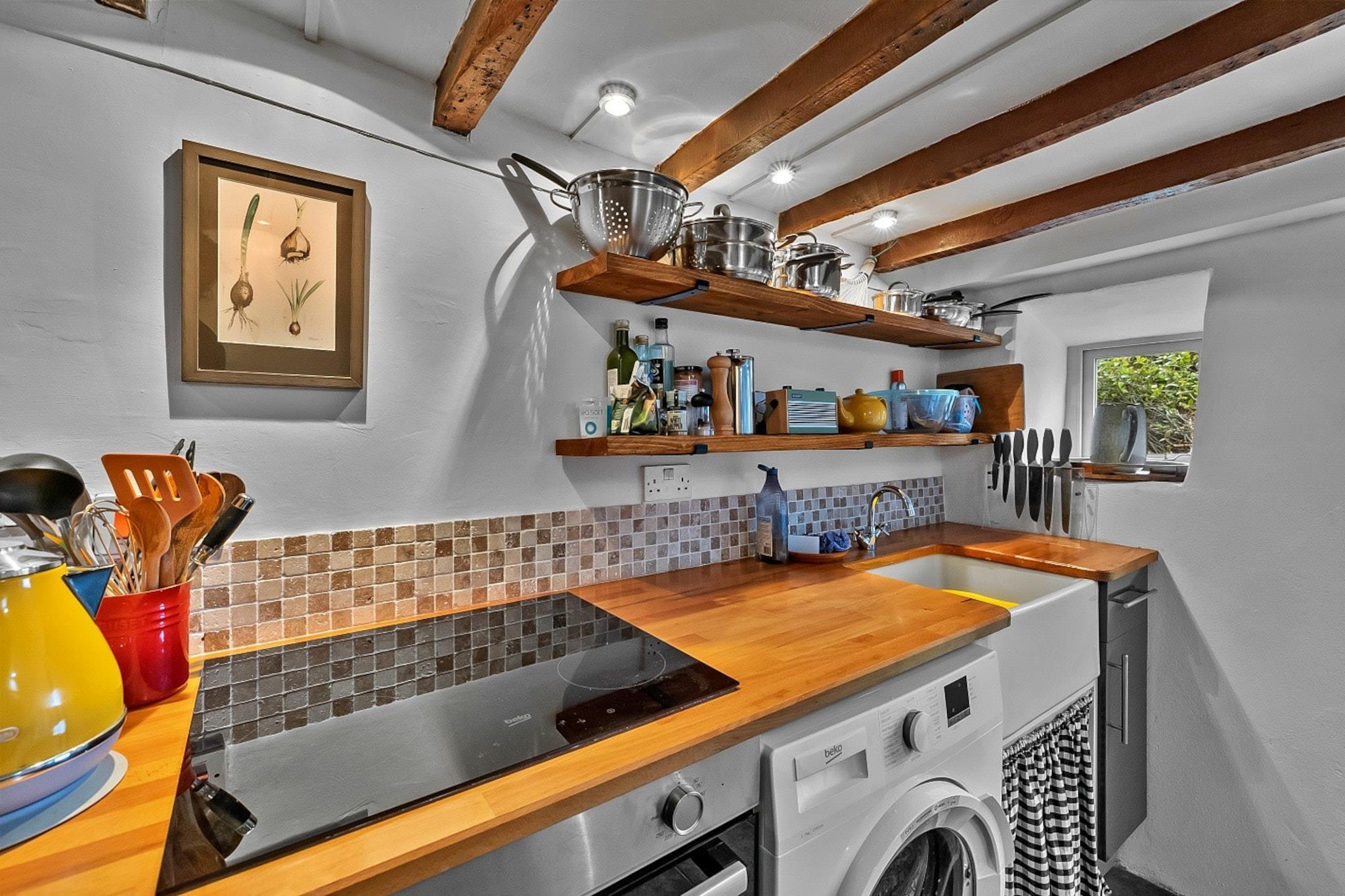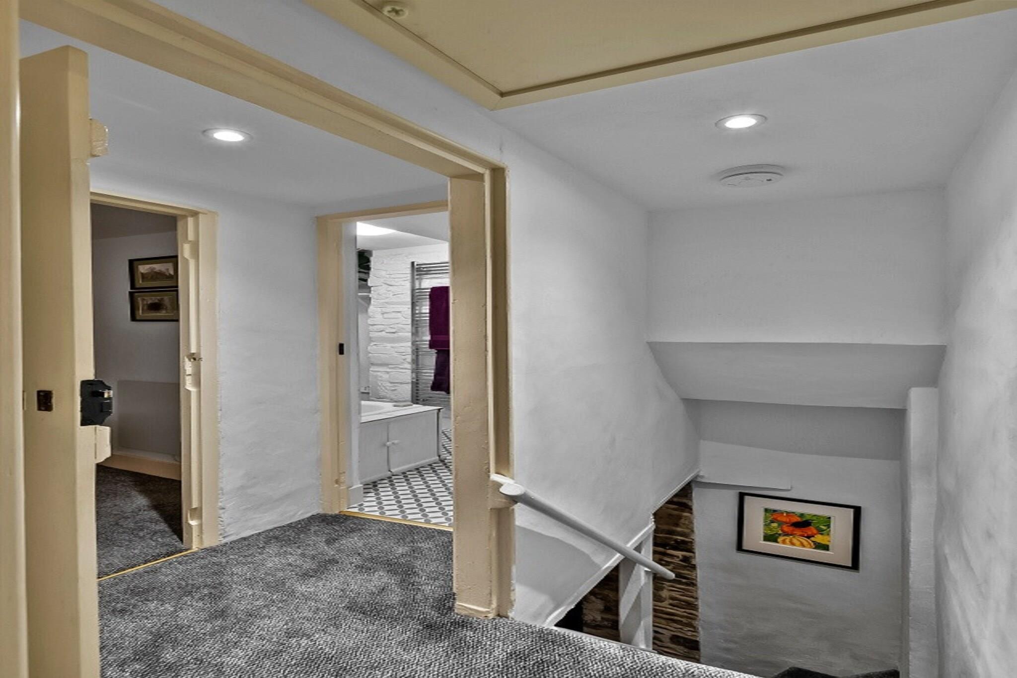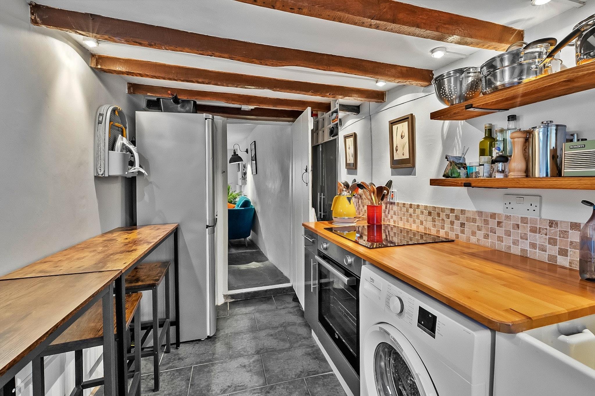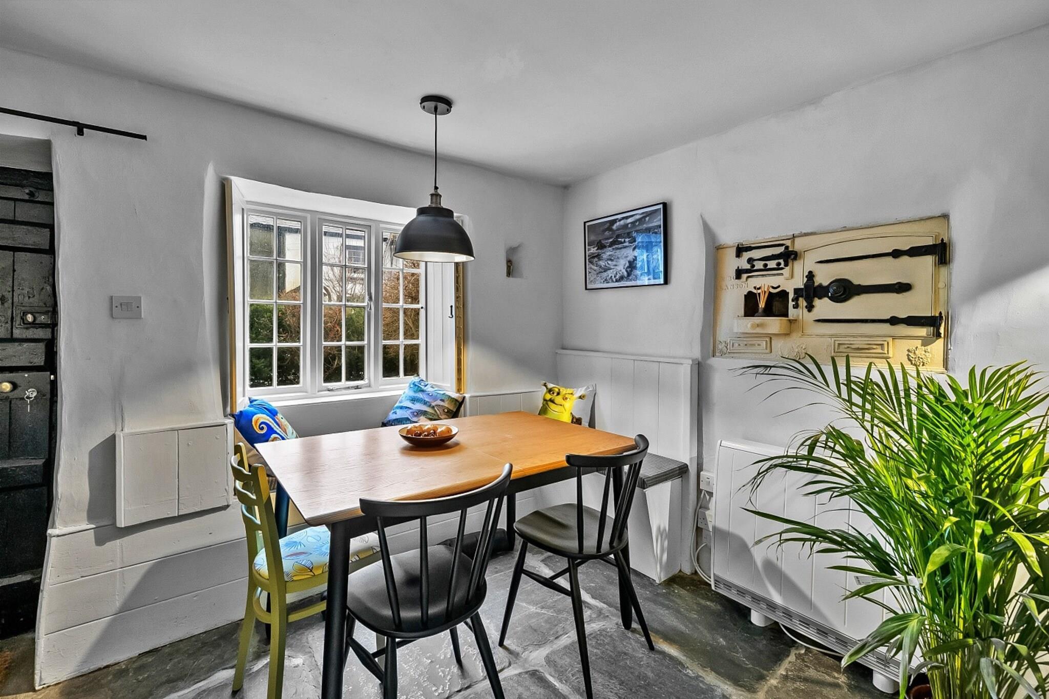 Oplev et varmt og indbydende tilflugtssted i en charmerende stenhytte med to soveværelser, der fremviser tidlig Tudor-arkitektur, der dateres tilbage til omkring 1500. Dette unikke hjem blander ekspertisk traditionel karakter med moderne bekvemmeligheder og tilbyder en hyggelig atmosfære, der er perfekt til dem, der ønsker at fordybe sig i århundreders historie. Ideelt beliggende for at udforske de fantastiske kyster, bølgende bakker og gamle byer i både Cornwall og Devon, dette sommerhus giver en fremragende base for dine eventyr. Det indbydende opholds- og spiseområde har en traditionel brændeovn i originalt murværk, hvilket gør det til et ideelt sted at slappe af på køligere aftener. Komfortable sofaer er perfekte til at krølle sammen med en bog eller nyde en hyggelig aften efter en dag med udforskning. Spisepladsen, der er indrettet med indbyggede bænke og et udvideligt bord, er lyst og luftigt om dagen, men skaber alligevel en hyggelig atmosfære under blød pendulbelysning. Det fuldt udstyrede kabyskøkken er klar til hjemmelavede måltider, uanset om det er en solid morgenmad eller en afslappet aftensmad. Ovenpå tilbyder to komfortable soveværelser - en konge og en dobbelt - en fredelig nattesøvn. Rigelige opbevaringsløsninger øger den hyggelige oplevelse, og det velindrettede badeværelse sørger for bekvemmelighed. Udenfor giver en beskyttet privat have et dejligt sted til morgenkaffe eller alfresco-måltider, mens der er gratis parkering på gaden i nærheden. Beliggende i den charmerende markedsby Launceston, rig på historie og moderne bekvemmeligheder, er dette sommerhus kun få minutter væk fra vartegn og attraktioner, hvilket gør det til det perfekte tilflugtssted for at opdage det bedste af Cornwall og Devon.