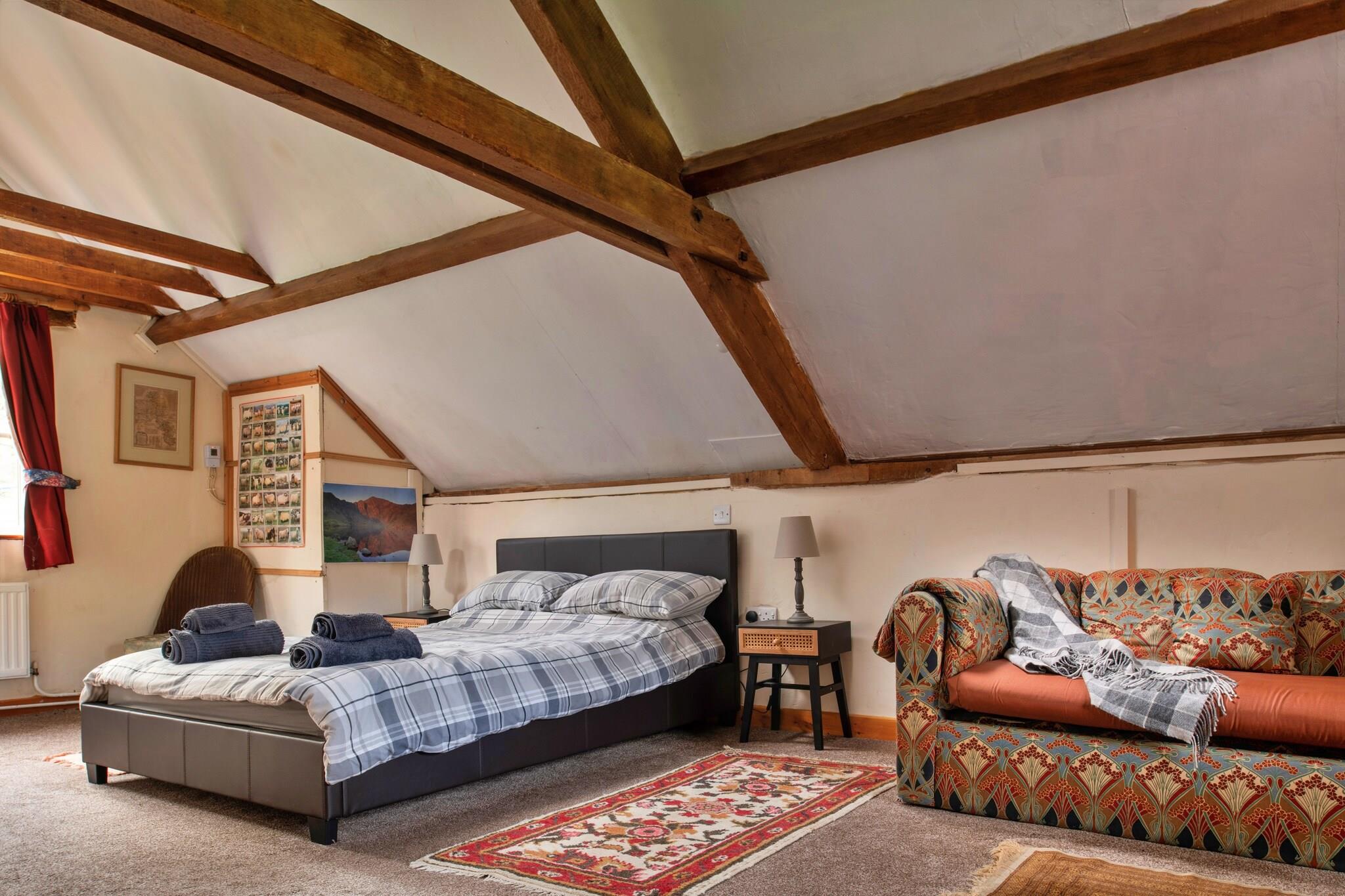 Gemt væk i de fredelige bakker i midt-Wales tilbyder dette historiske 1-værelses sommerhus et roligt landskab, ideelt for par, der søger et roligt tilflugtssted eller naturelskere, der ønsker at udforske den omkringliggende vildmark. Ejendommen var engang en victoriansk kornbutik for Great Cantal Mill fra det 17. århundrede, og ejendommen er blevet sympatisk omdannet for at bevare originale træk såsom synlige bjælker og rustikke stenvægge, alt imens den tilbyder komforten ved en moderne livsstil. Indenfor vil gæsterne finde et hyggeligt åbent køkken, stue og spisestue med udsigt ud til det fredfyldte landskab, et brusebad i stueetagen og et charmerende soveværelse ovenpå med en dobbeltseng og en ekstra enkelt sovesofa - ideel til en tredje gæst, hvis det er nødvendigt. Hytten er kæledyrsvenlig og tillader op til to velopdragne hunde, hvilket gør det perfekt til dem, der ønsker at udforske med deres firbenede ledsagere. Beliggende kun 30 minutter fra den berømte Hay Festival og nær kurbyen Llandrindod Wells, er ejendommen omgivet af vandreruter, herunder Glyndwr's Way og tæt på fredede områder såsom Beacon Hill Common og Tylcau Hill naturreservat. Med parkering på stedet (begrænset til én bil), rolige omgivelser ved floden og nærliggende muligheder for fuglekiggeri og dyreliv, er denne hytte en vidunderlig base for at genskabe forbindelsen til naturen i naturskønne, etagers omgivelser.