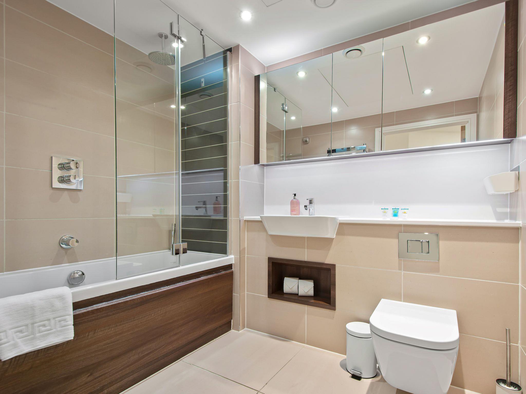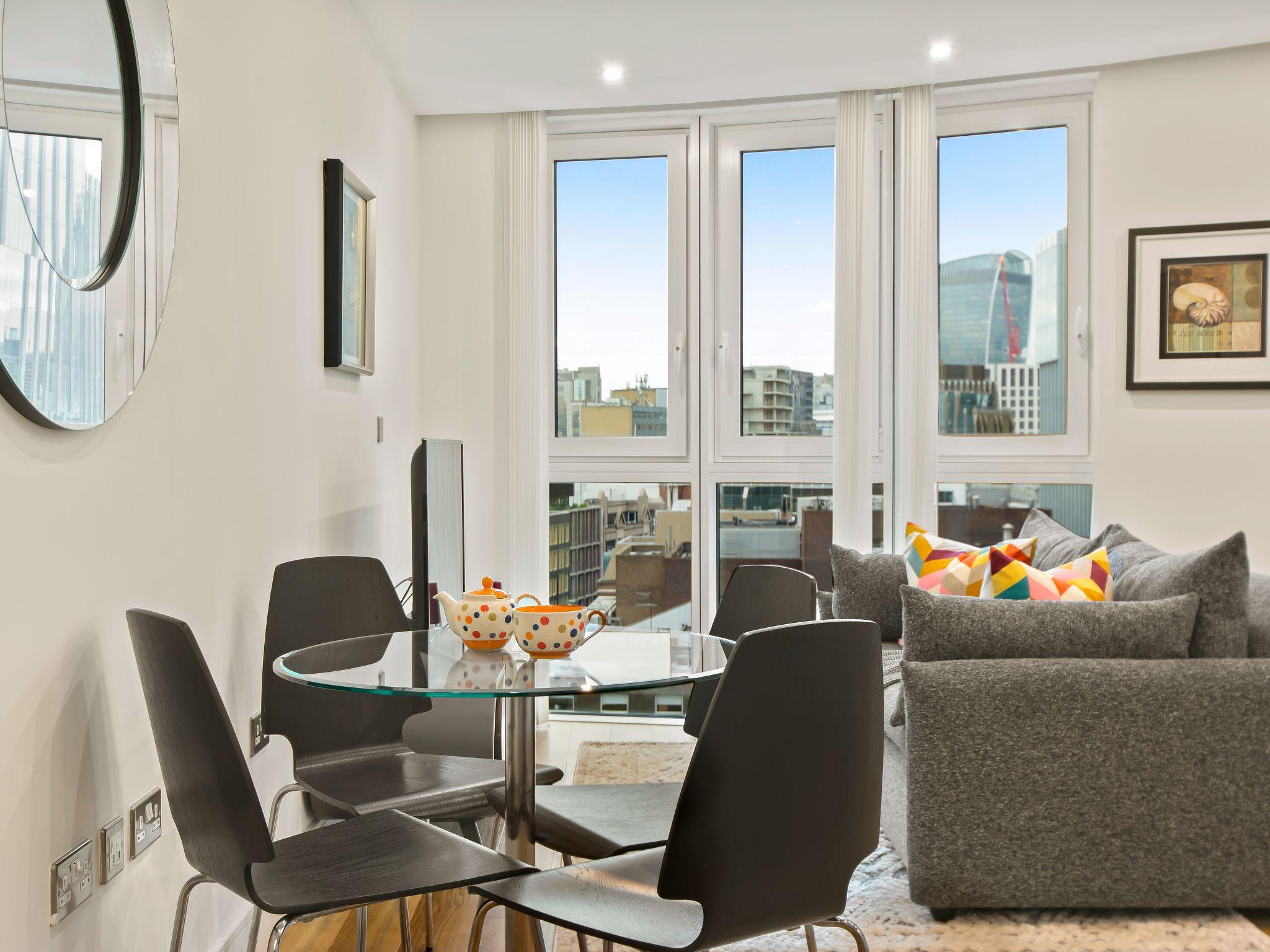 Modern apartment block "Altitude Point". In the centre of London, in a central position. In the complex: restaurant, bar, bistro, WiFi, lift, central heating system, laundry (extra). Room cleaning weekly (included). Breakfast on request (extra). Grocery, bar 100 m, bus stop "Dukes Place" 800 m, railway station "Liverpool Street" 3 km, underground station "Aldgate" 480 m. Nearby attractions: Barbican Cultural Centre 3 km, St. Paul‘s Cathedral / Tate Modern 3 km, Buckingham Palace 6 km, Piccadilly Circus 6 km, Tower of London & London Bridge 4 km, London Eye 3 km. Please note: reception open 09:00-17:00 hrs. Baby equipment on request (extra), childminding (extra). Please note: the photograph shows a typical example. The holiday properties may differ in living space, floorplan, equipment and furnishing.
