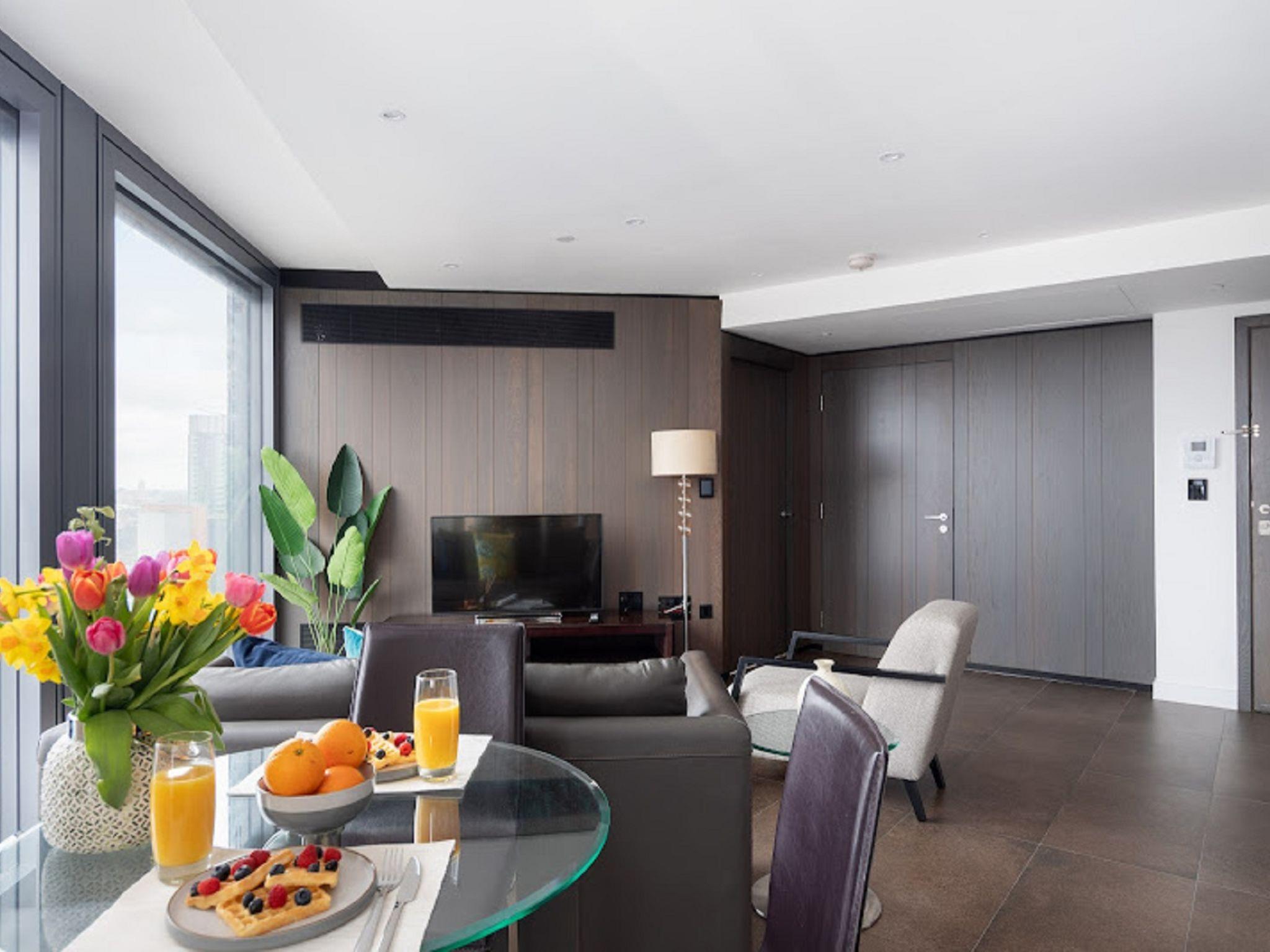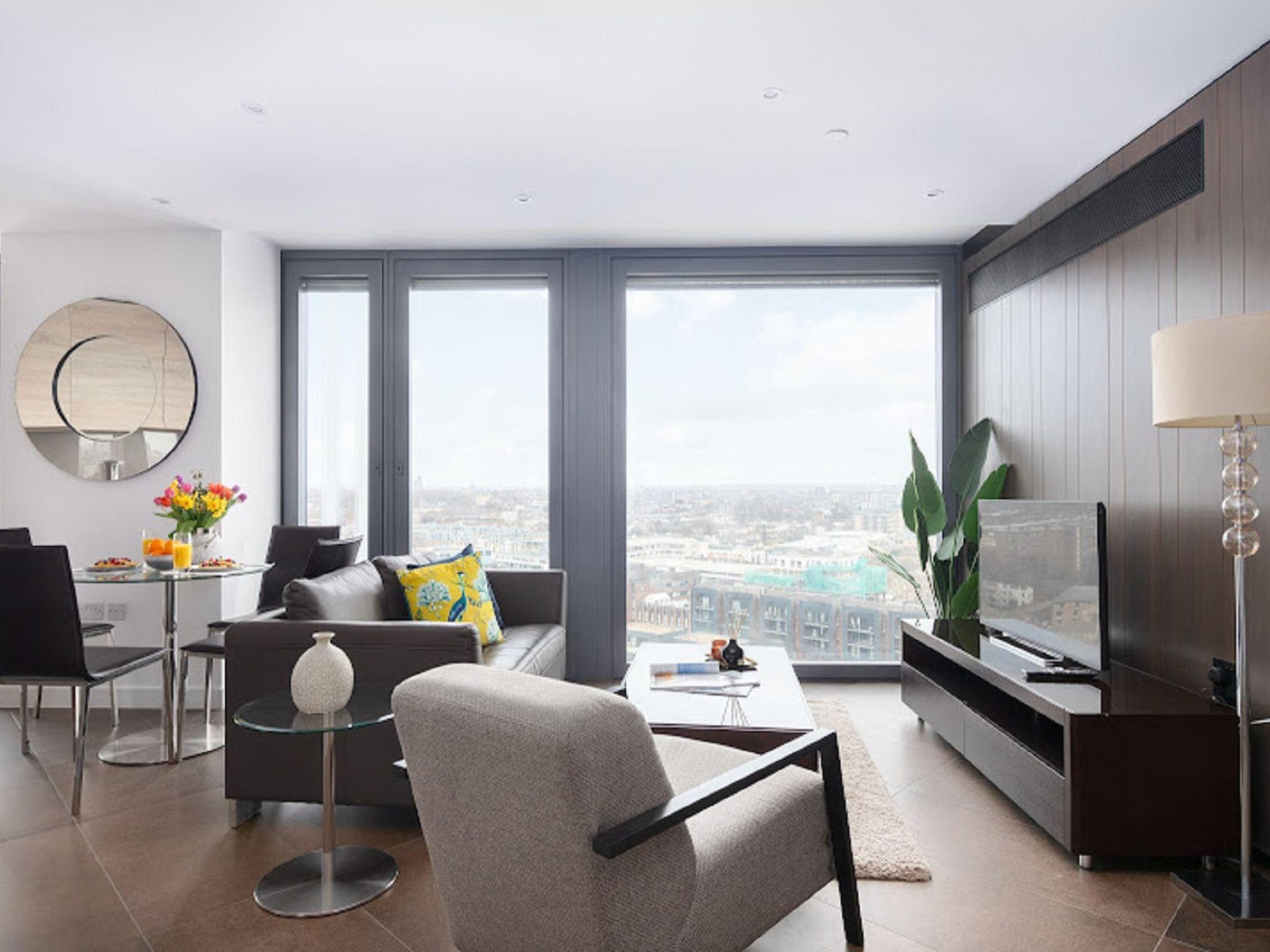 Modern apartment block "Lexicon, Angel". In the centre of London, in a central position. In the complex: WiFi, fitness room, lift, central heating system, laundry (extra). Room cleaning weekly (included). Breakfast on request (extra). Grocery, bar 100 m, bus stop "Friend Street" 800 m, railway station "Old Street" 700 m, underground station "Old Street" 700 m. Nearby attractions: Barbican Cultural Centre 3 km, St. Paul‘s Cathedral / Tate Modern 3 km, Buckingham Palace 6 km, Piccadilly Circus 6 km, Tower of London & London Bridge 5 km, London Eye 3 km. Please note: reception open 12:00-12:00 hrs. Suitable for families, baby equipment on request (extra). Please note: the photograph shows a typical example. The holiday properties may differ in living space, floorplan, equipment and furnishing.