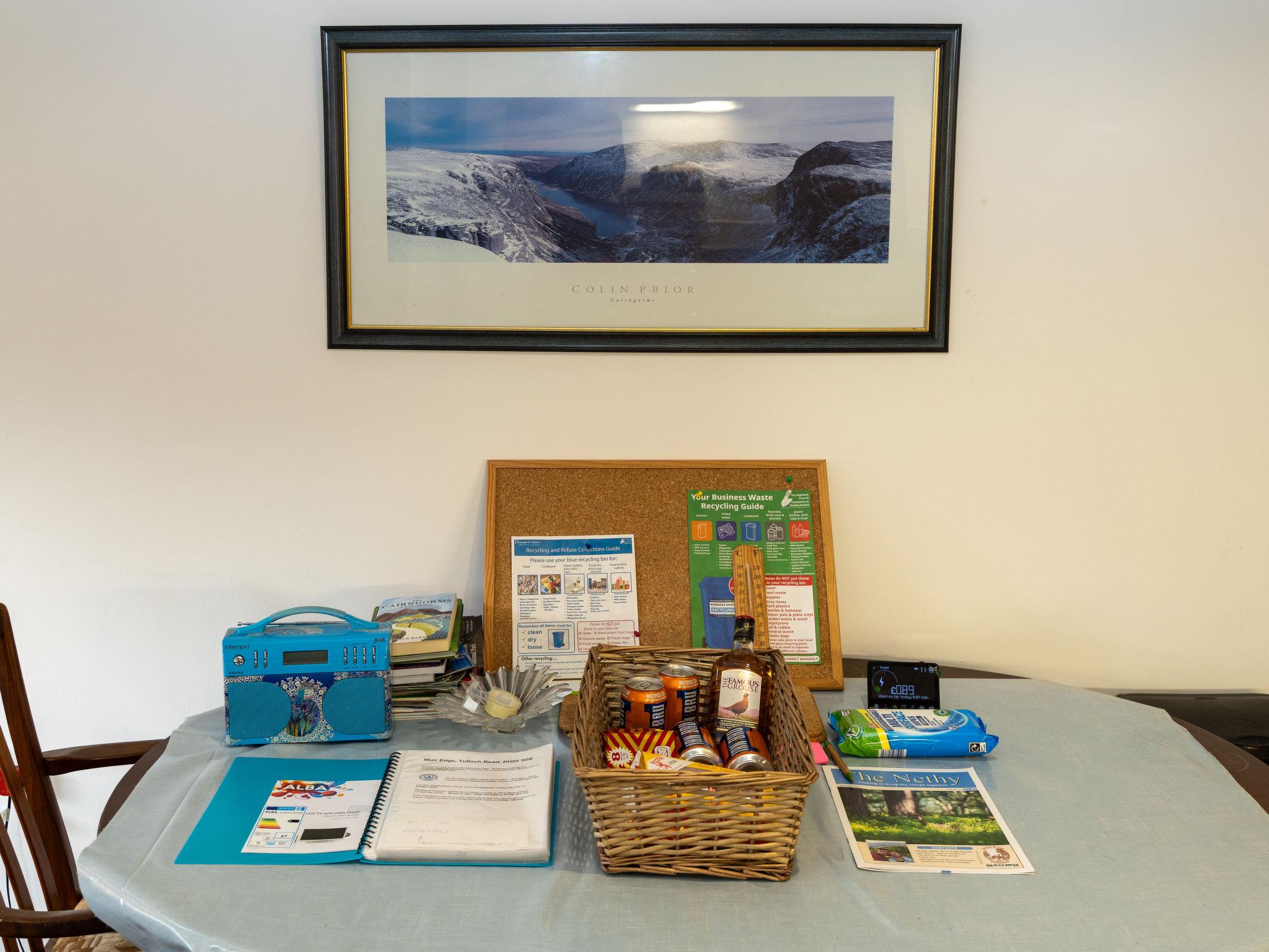 Cosy, comfortable cottage "Muir Edge", 2 storeys, detached. On the outskirts Nethy Bridge, 18 km from the centre of Aviemore, in a quiet, sunny position, 6 km from the lake, 30 km from the skiing area, in the countryside. Private: garden (fenced) with lawn. Patio, garden furniture, parking (for 3 cars) at the house. Shop 600 m, supermarket 10 km, restaurant 600 m, bar 1 km, bus stop "Nethy Bridge (Dell Rd)" 550 m, railway station "Aviemore" 20 km. Golf course (18 hole) 2 km, ski lift 38 km. Nearby attractions: Abernethy Golf Course 2 km, Cairngorm National Park, Highland Folk Museum 43 km, Inverness 55 km, Highland Wildlife Park 33 km, Landmark 17 km. Well-known ski regions can easily be reached: Cairngorms ski resort 38 km, Lecht Ski Centre 31 m. Well-known lakes can easily be reached: Loch Ness 76 km, Loch Garten 6 km. Please note: car recommended.