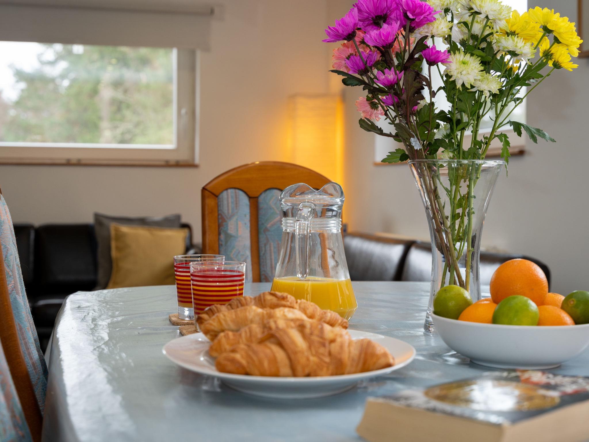 4-room cottage 94 m2. Comfortable and cosy furnishings: open living/dining room with dining table and TV (flat screen). 1 double bedroom with 1 double bed (150 cm, length 200 cm), shower/WC. Open kitchen (4 hot plates, oven, dishwasher, toaster, kettle, microwave, freezer, grill). Upper floor: large, 1 double bedroom with 1 double bed (150 cm, length 200 cm). 1 double bedroom with 2 beds. Bath/shower/WC. Electric heating. Small patio, large garden, lawn. Terrace furniture. Facilities: washing machine, iron. Internet (WiFi, free). Parking at the house. Please note: non-smoking house. Maximum 2 pets/ dogs allowed. TV only EN. Smoke alarm. HI-70377-F