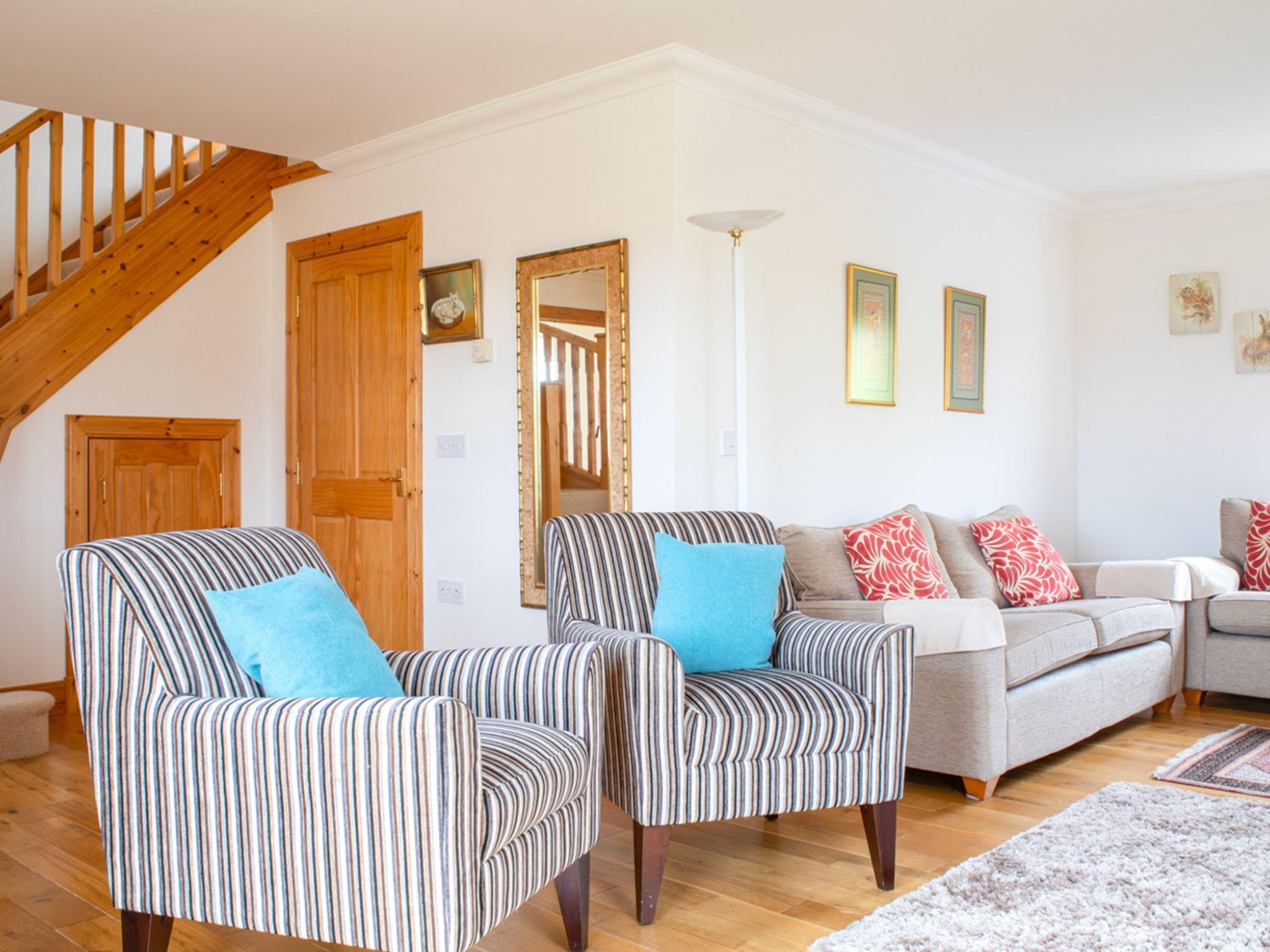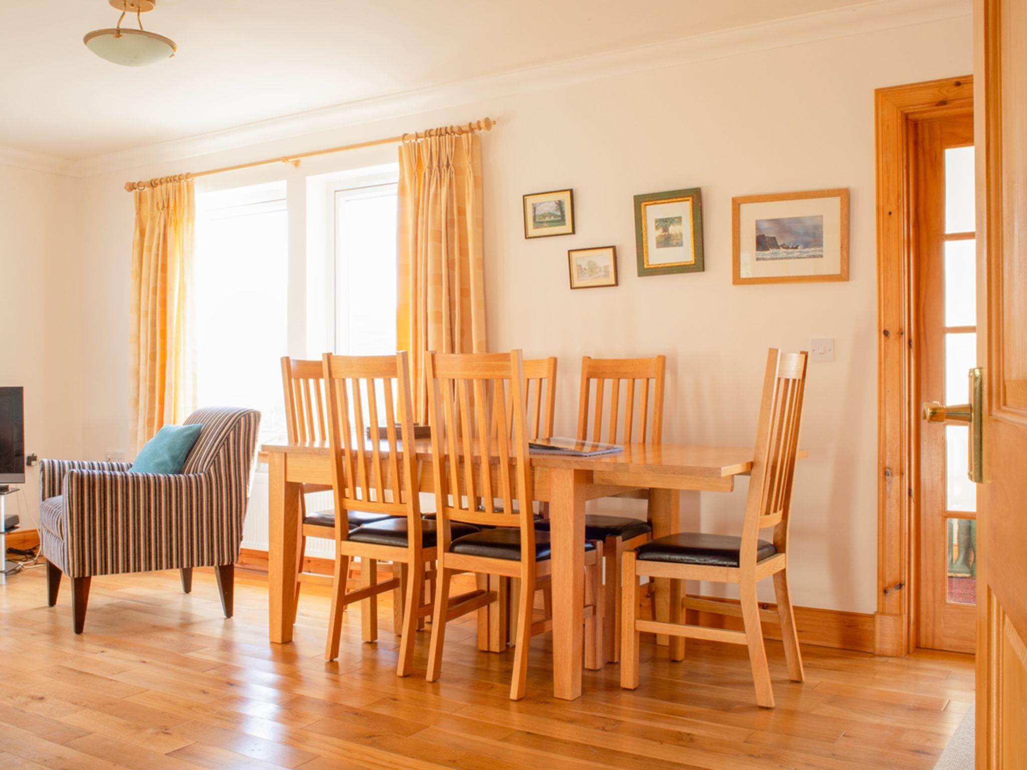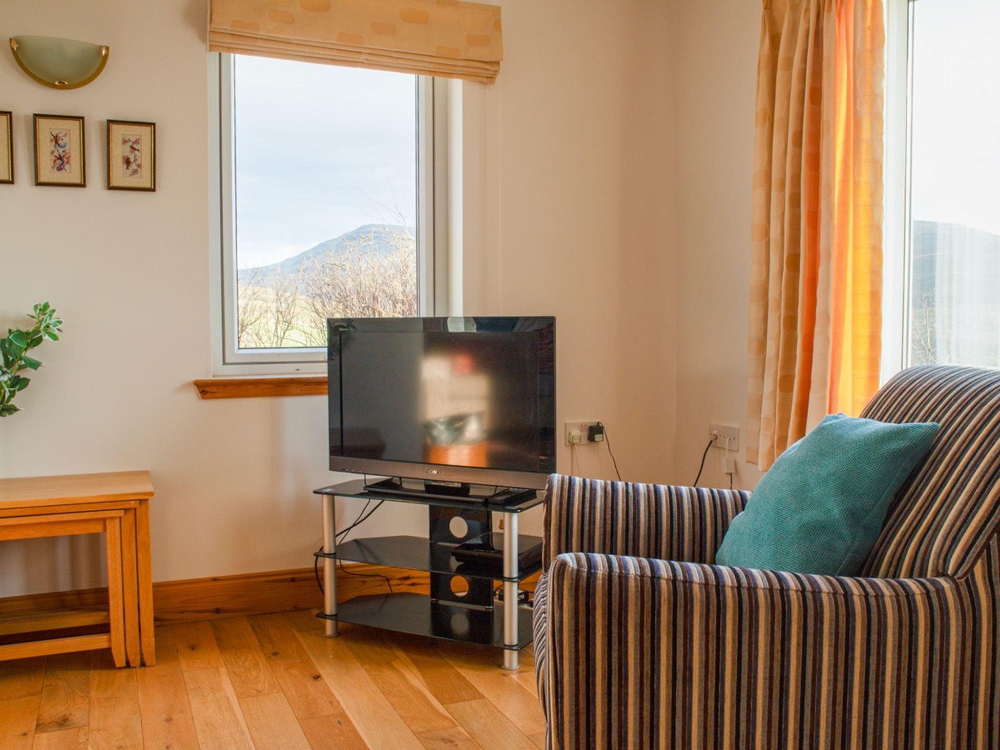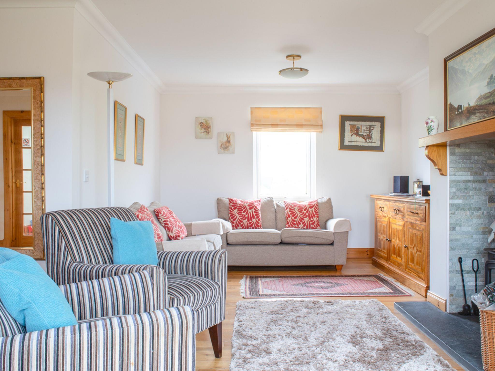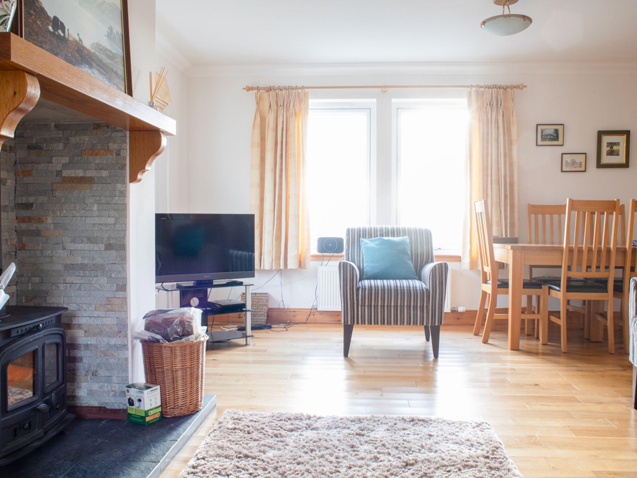 "Creagan", 4-room cottage 132 m2. Comfortable furnishings: living/dining room with dining table and TV (flat screen), DVD and wood-burning stove. 1 room with 2 beds. Kitchen (oven, dishwasher, 4 ceramic glass hob hotplates, toaster, kettle, microwave, freezer). Bath/shower/WC. Oil heating. Upper floor: 2 double bedrooms, each room with 1 double bed. Shower/WC. Beautiful view of the countryside. Facilities: washing machine. Parking (3 cars). Please note: non-smokers only. TV only EN. Smoke alarm. HI-31168-F