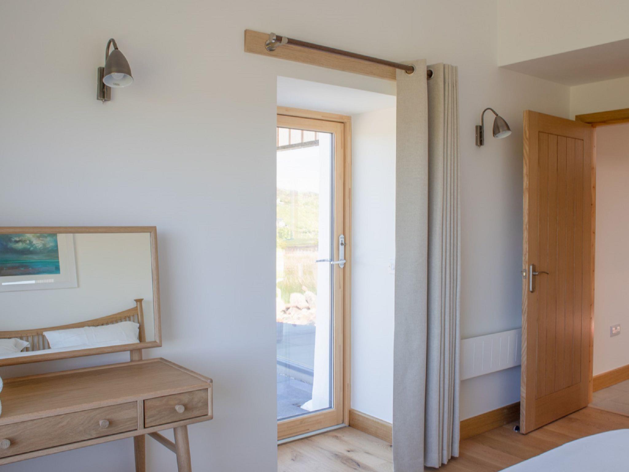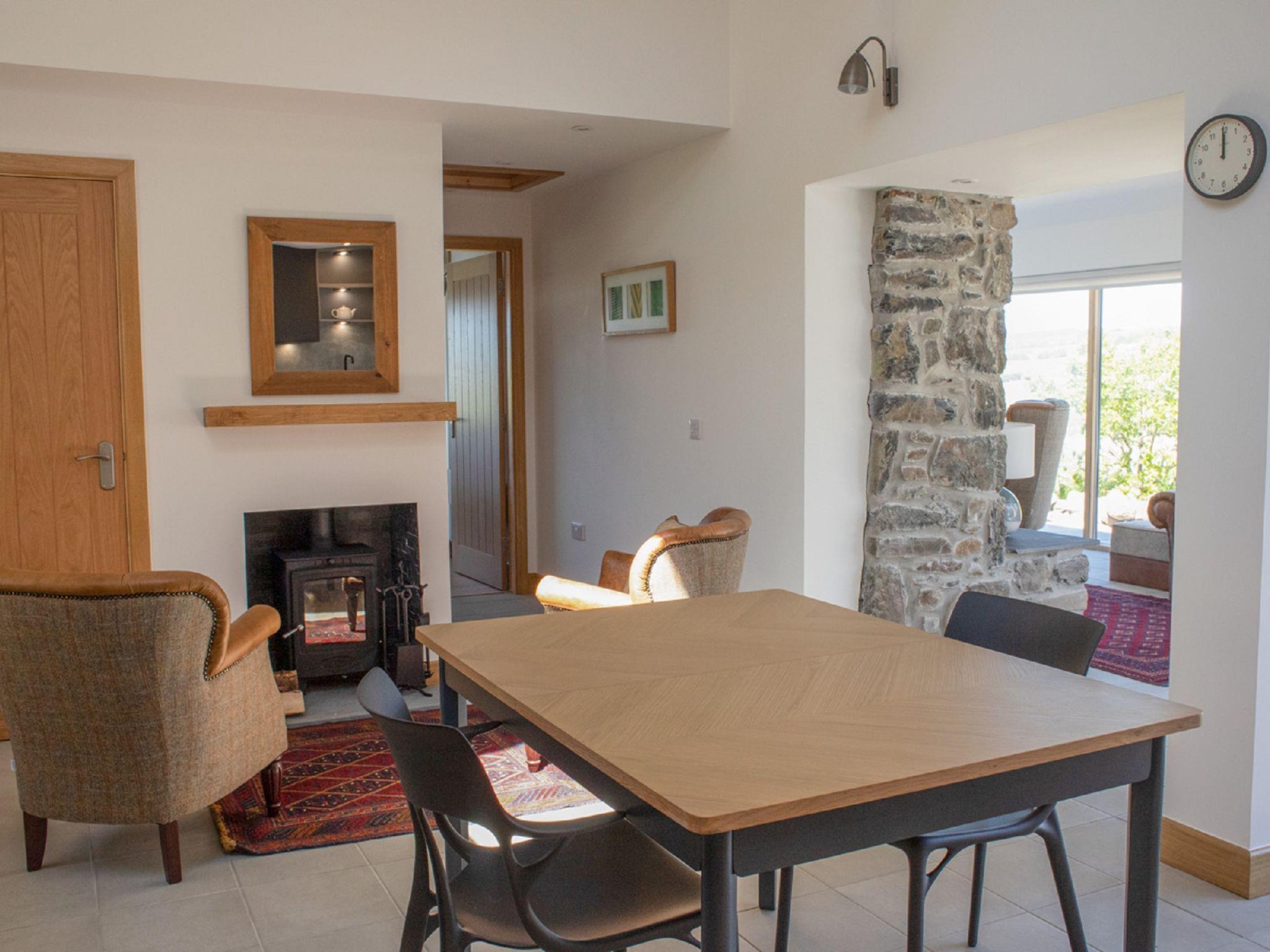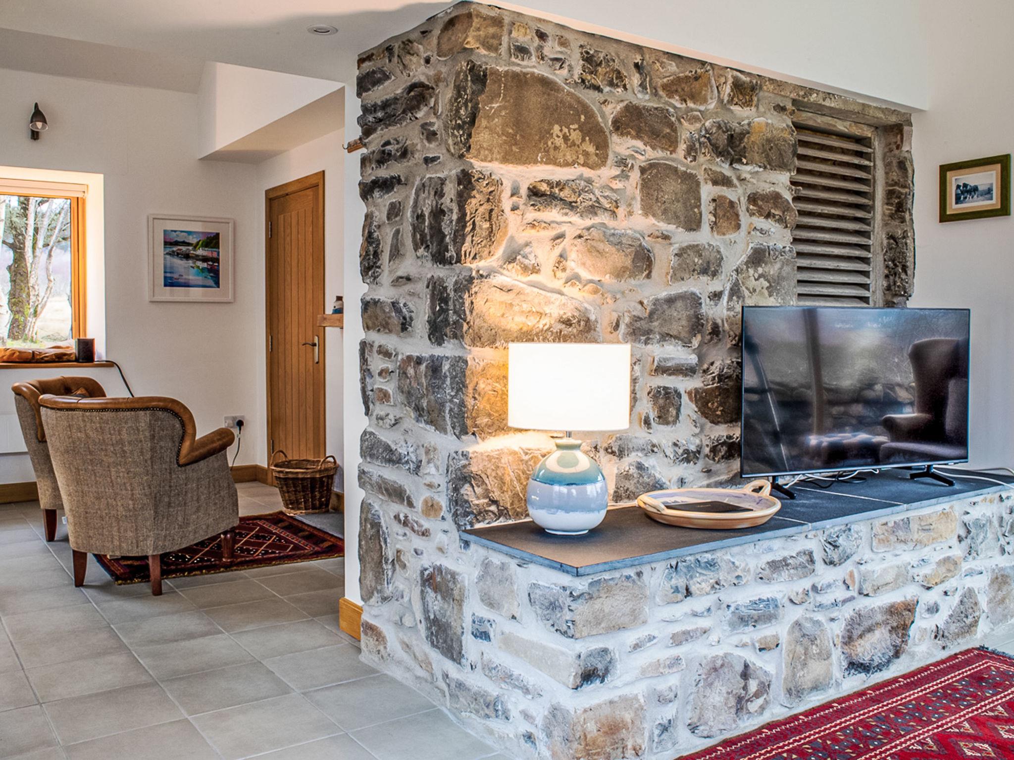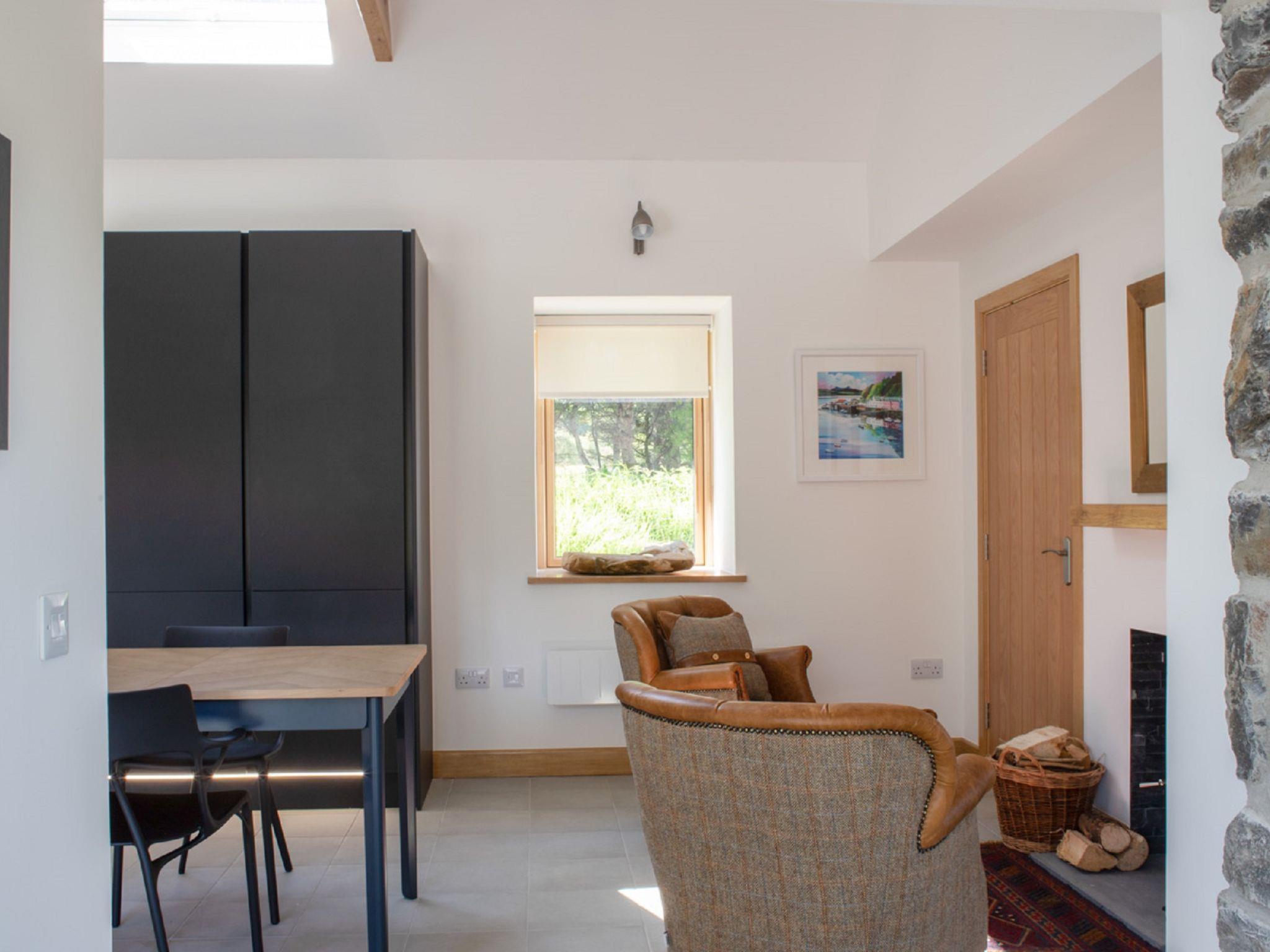 "Finnan's Byre", 2-room house 60 m2, on the ground floor. Spacious and bright, fully renovated in 2022, modern and tasteful furnishings: open living room with TV (flat screen), wood-burning stove. Exit to the patio. 1 double bedroom with 1 double bed. Exit to the patio. Open kitchen (oven, dishwasher, 4 induction hot plates, microwave, freezer) with dining table. Shower/WC. Heating. Patio. Very beautiful view of the lake and the countryside. Facilities: washing machine. Internet (WiFi, free). Parking at the house. Please note: non-smoking house. TV only EN. Please note: the cottage is accessed by a shared driveway with Ploughman's Cottage.