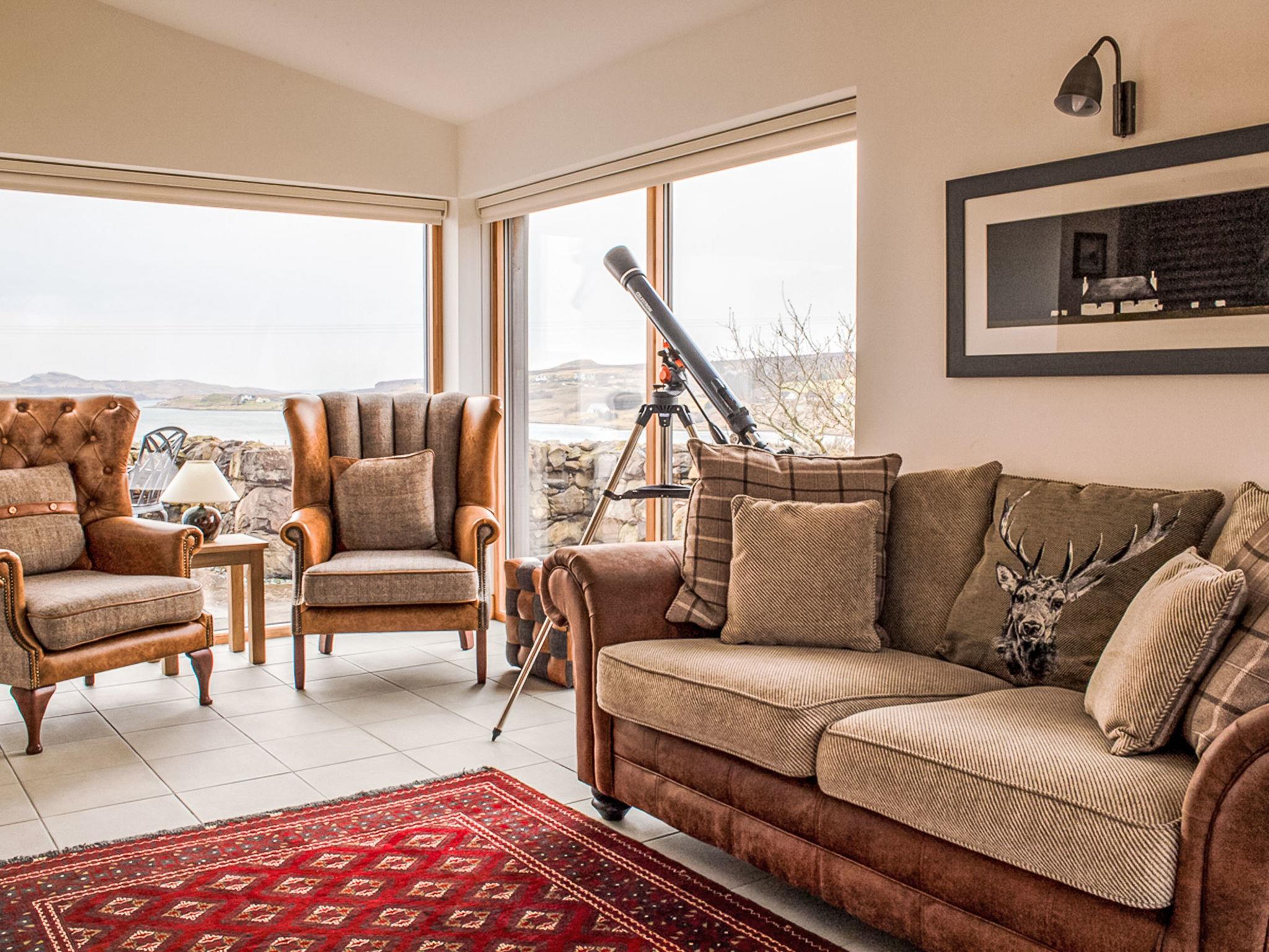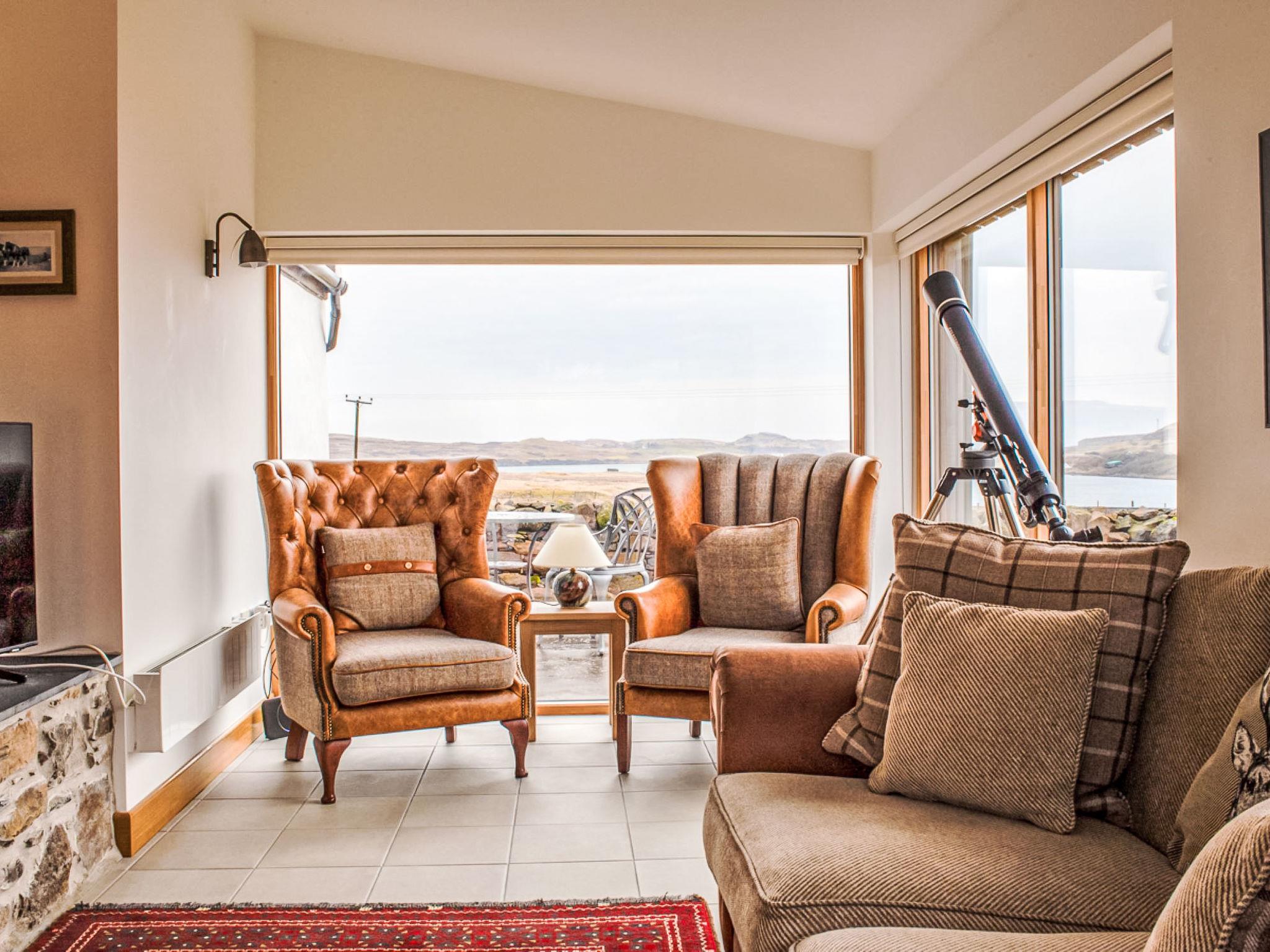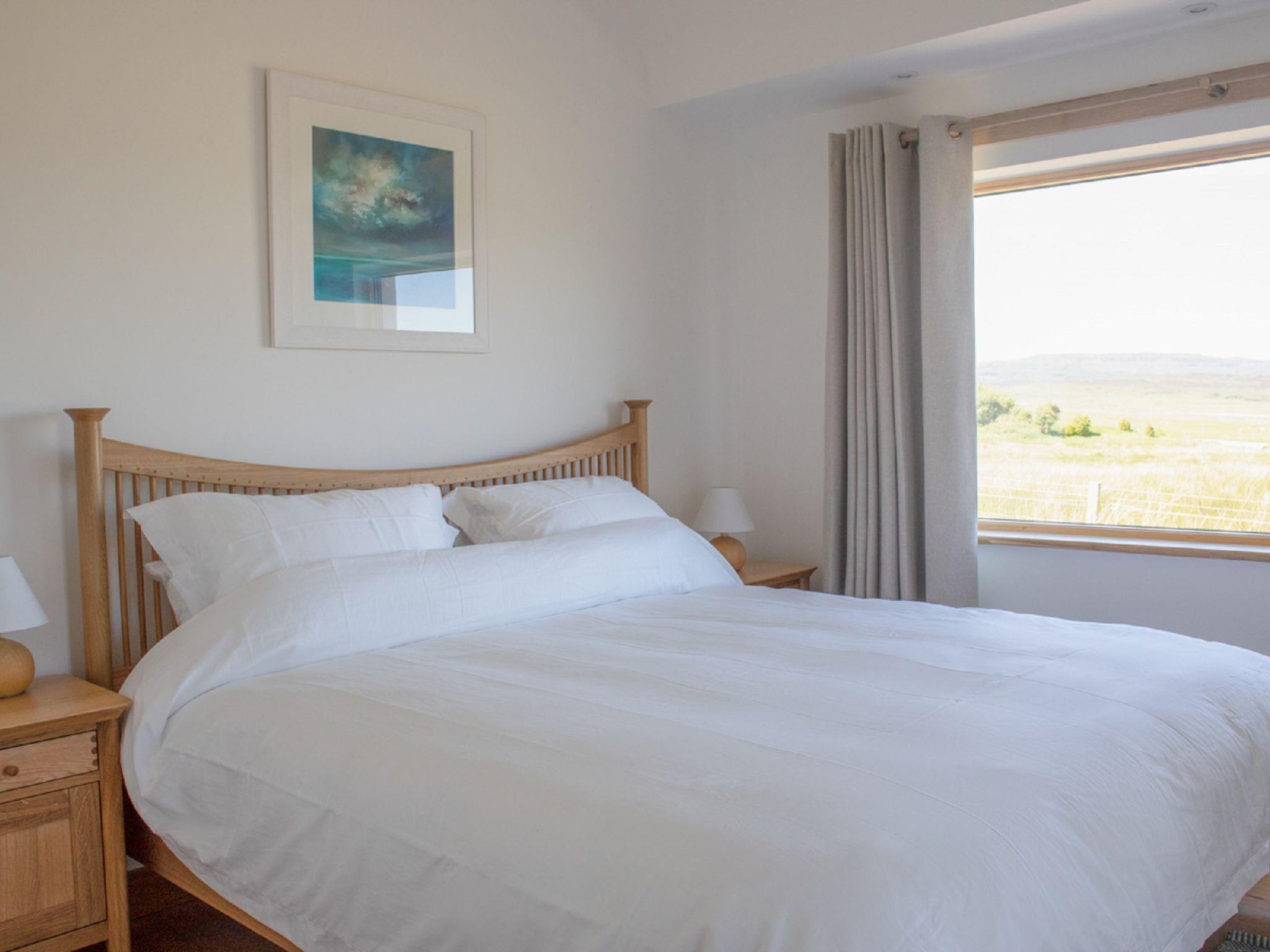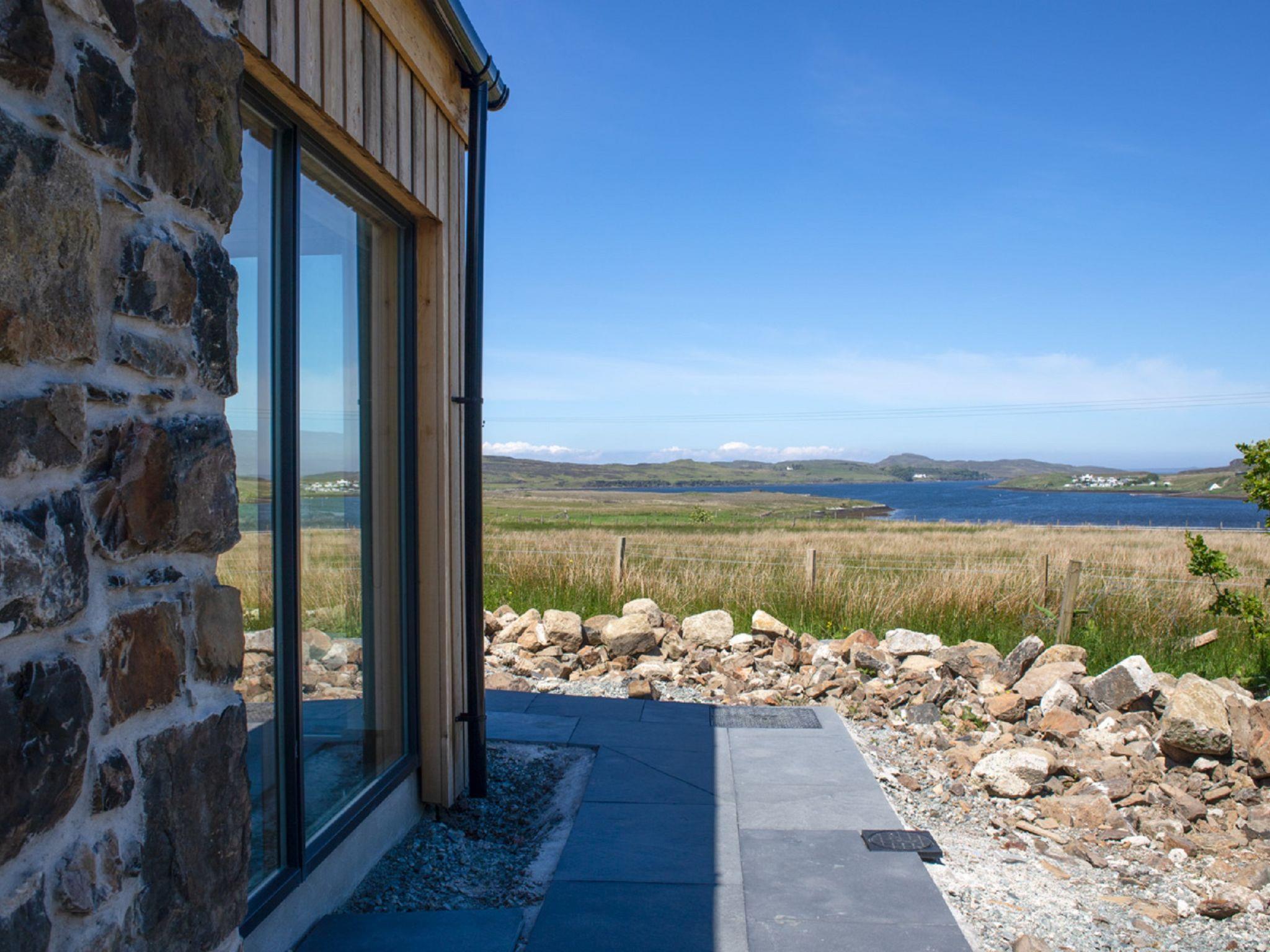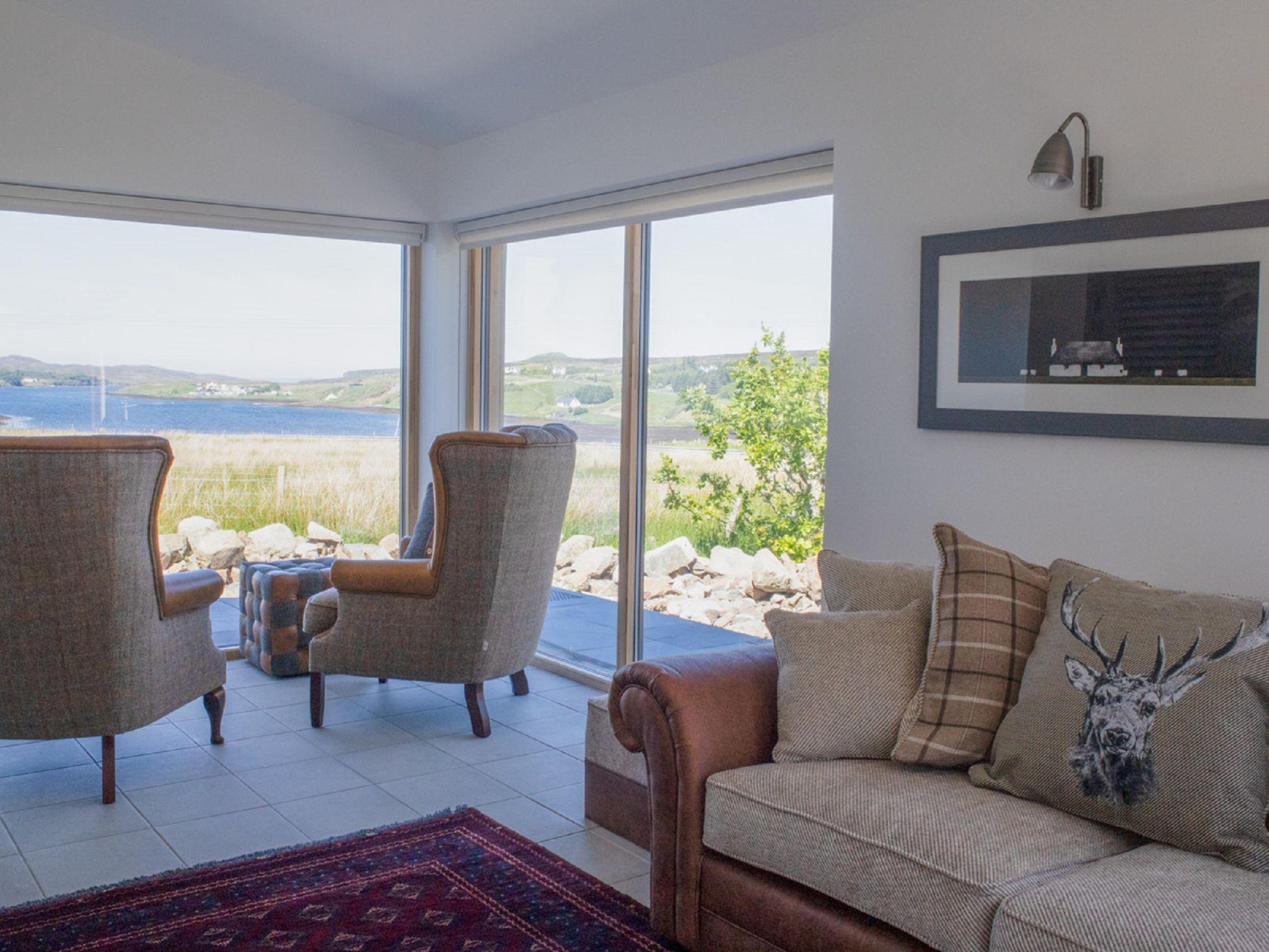 Modern, beautiful house "Finnan's Byre", detached, renovated in 2022. On the outskirts, 13 km from the centre of Dunvegan, in a secluded, quiet position, 100 m from the lake. Private: small, well-kept garden. Terrace. In the house: washing machine. Parking at the house. Shop 13 km, grocery 13 km, restaurant 2 km, bar 2 km, café 13 km, bus stop "Dunvegan" 13 km. Nearby attractions: Dunvegan Castle and Garden 13 km, Edinbane Lodge 2 km, Neist Point 30 km, Loch Greshornish 100 m. Please note: car recommended.