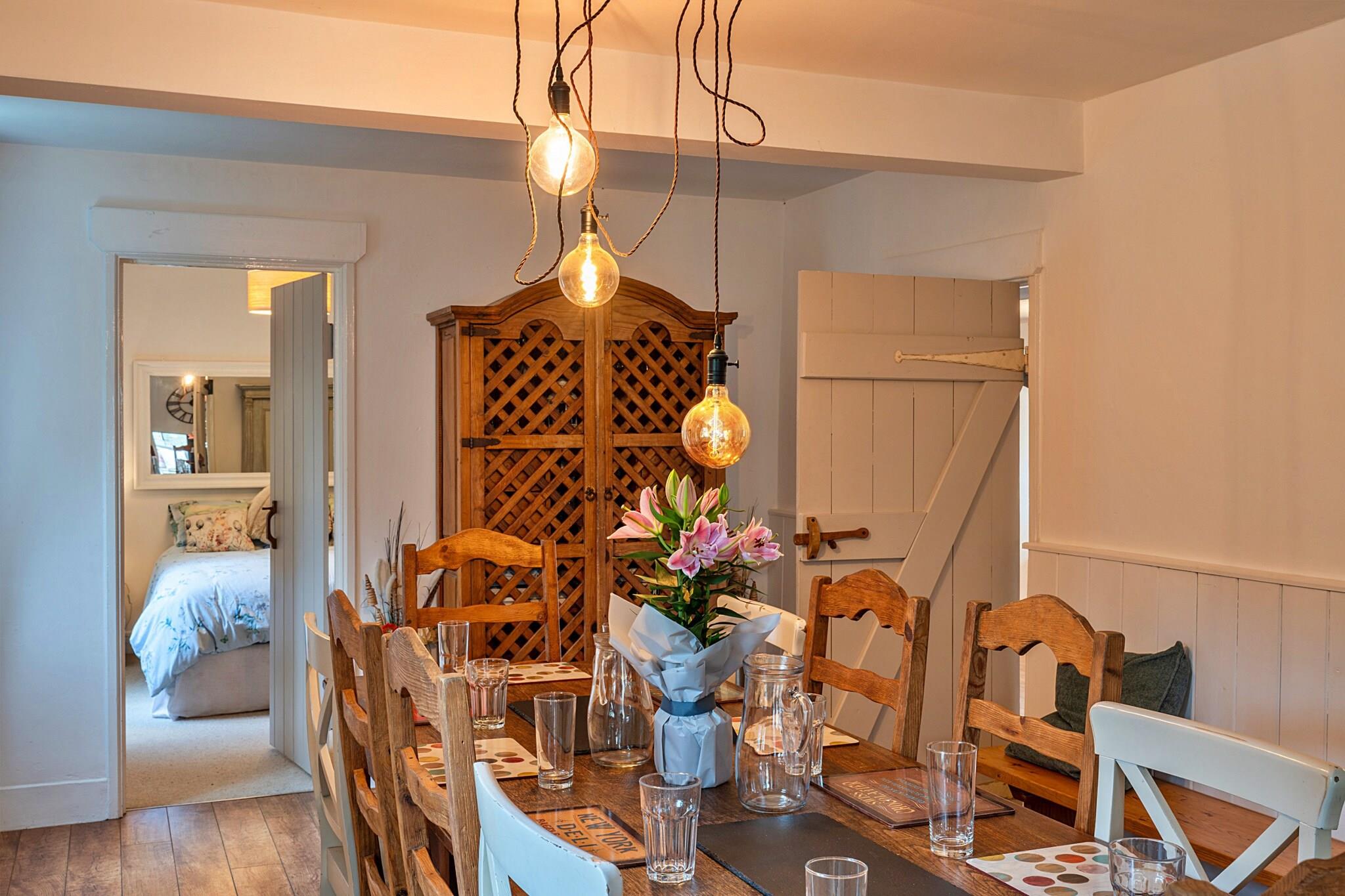 Velkommen til din drømmeferie i hjertet af Devon, hvor det rummelige tilflugtssted, der er ideelt egnet til store familier eller grupper af venner, lokker dig til en uforglemmelig ferieoplevelse. Beliggende nær den naturskønne Dartmoor National Park, dette fem-værelses hjem giver den perfekte base for afslapning, eventyr og kvalitetstid med deres kære. Med rigelig plads til at alle kan samles, vil du skabe elskede minder under ét tag, det være sig over et solidt måltid eller latterfyldte spilleaftener. Træd ind i den charmerende stueetage, hvor et moderne fuldt udstyret køkken venter, udstyret med alt det nødvendige for lethed med selvforplejning. Saml din gruppe i den komfortabelt møblerede stue med sin indbydende brændeovn og Smart TV, perfekt til hyggelige filmaftener. Den tilstødende spisestue, opvarmet af en dobbeltsidet brændeovn, tilbyder ekstra siddepladser, og solstuen fungerer som et dejligt andet opholdsrum, der sikrer, at der er rigelig plads til både børn og voksne til at slappe af. Hvert af de fem smukt præsenterede soveværelser lover afslappende nætter efter lange dage med udforskning og rummer op til ti gæster i komfortable kingsize- og superkingsize-senge, som kan konfigureres som tvillinger, hvis det er nødvendigt. Udendørs inviterer den rolige have med gårdhave og opholdsområde dig til at nyde solen, mens en kulgrill venter til udendørs spisning på varme aftener. Omfavn de eventyr, som Dartmoor National Park byder på, med et væld af vandre- og cykelruter, der er perfekte til udflugter med familie og venner. Hold øjnene åbne for det lokale dyreliv, inklusive de ikoniske Dartmoor-ponyer! Udforsk den nærliggende by Okehampton for lokale faciliteter, og glem ikke de smukke strande og travle feriesteder i Devon, kun en kort køretur væk. Med privat parkering og kæledyrsvenlig indkvartering er dette feriested skræddersyet til din store gruppes ultimative ferie.