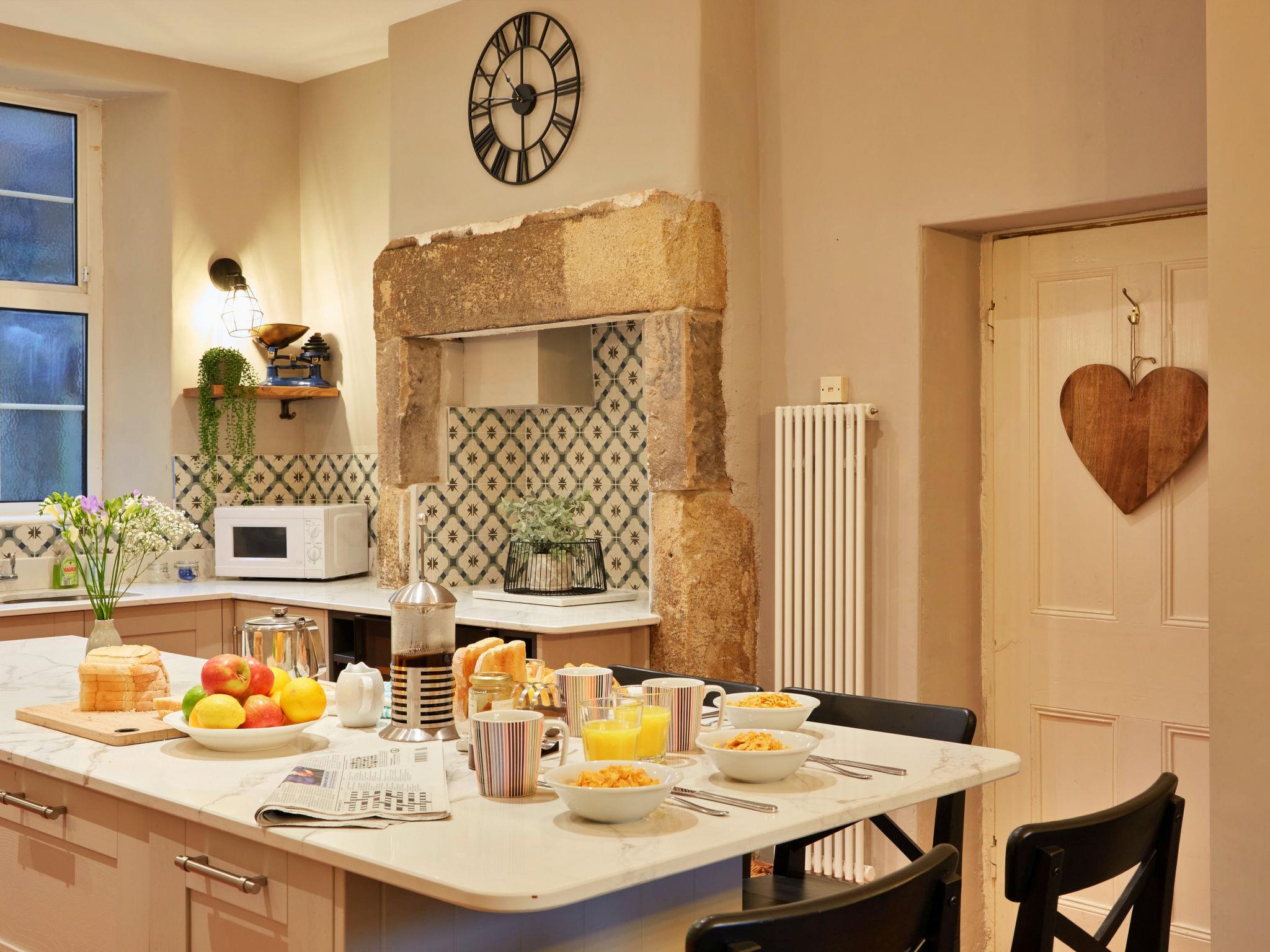"The Cottage at Tideswell", 5-room house 89 m2. Object suitable for 8 adults. Living room with open-hearth fireplace and TV. 1 room with 1 french bed and TV. 1 room with 1 french bed. 1 room with 2 beds. 1 room with 1 french bed. Kitchen (oven, dishwasher, 4 induction hot plates, toaster, kettle, microwave, freezer). 2 showers/WC. Facilities: washing machine, iron. Internet (WiFi, free). Please note: non-smokers only. 2 pets/ dogs allowed. Smoke alarm.