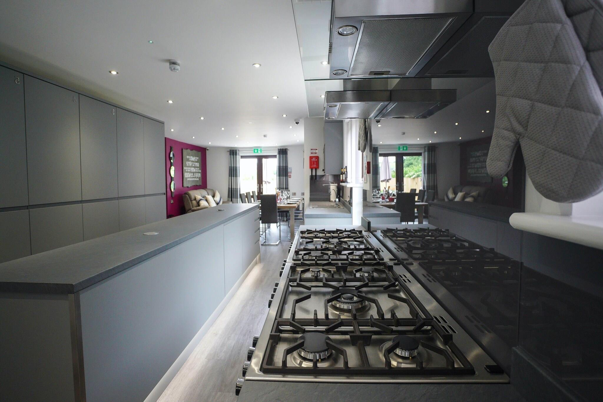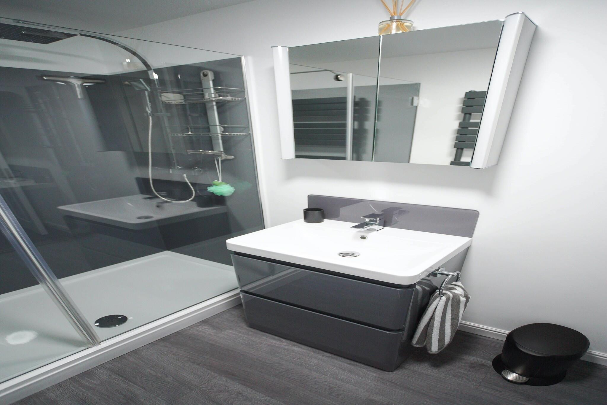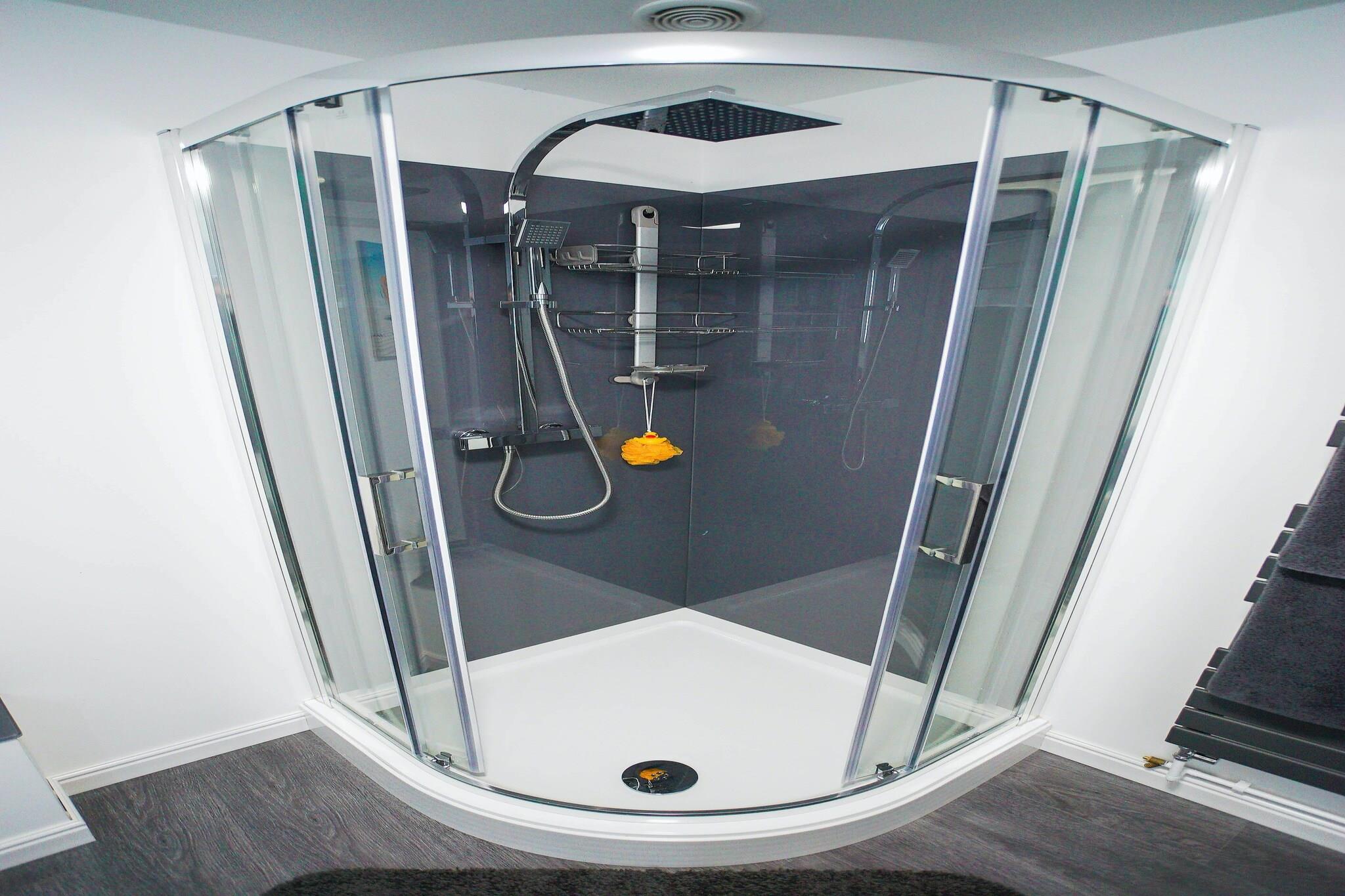 Ground floor: (hallway, Large kitchen(hob, electric kettle, boiling water tap, toaster, cooker, hood, coffee machine, espresso machine, oven, combination microwave, microwave, dishwasher, fridge, freezer), Living/diningroom(TV, dining table, seating area, DVD player), bedroom(double bed), bedroom(bunk bed), bedroom(double bed), bedroom(double bed), bedroom(double bed), Bedroom with bathroom(double bed, shower, washbasin, toilet), bathroom(shower, washbasin, toilet), bathroom(shower, washbasin, toilet), bathroom(bath tub, shower, washbasin, toilet)) hot tub