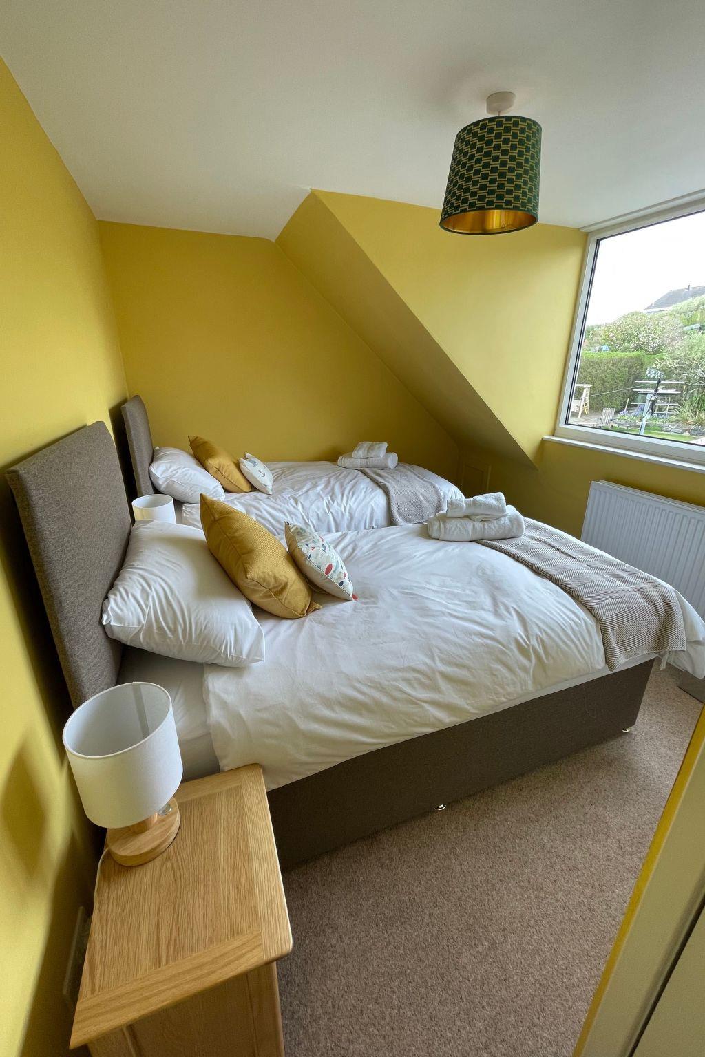 The attractive living room has comfortable sofas and a cosy wood burner which is the perfect place after a busy day. There is a sea view from this room which catches different light depending on the weather. The front bedroom enjoys stunning sea views and provides a very relaxing place to rest during a well-earned break.