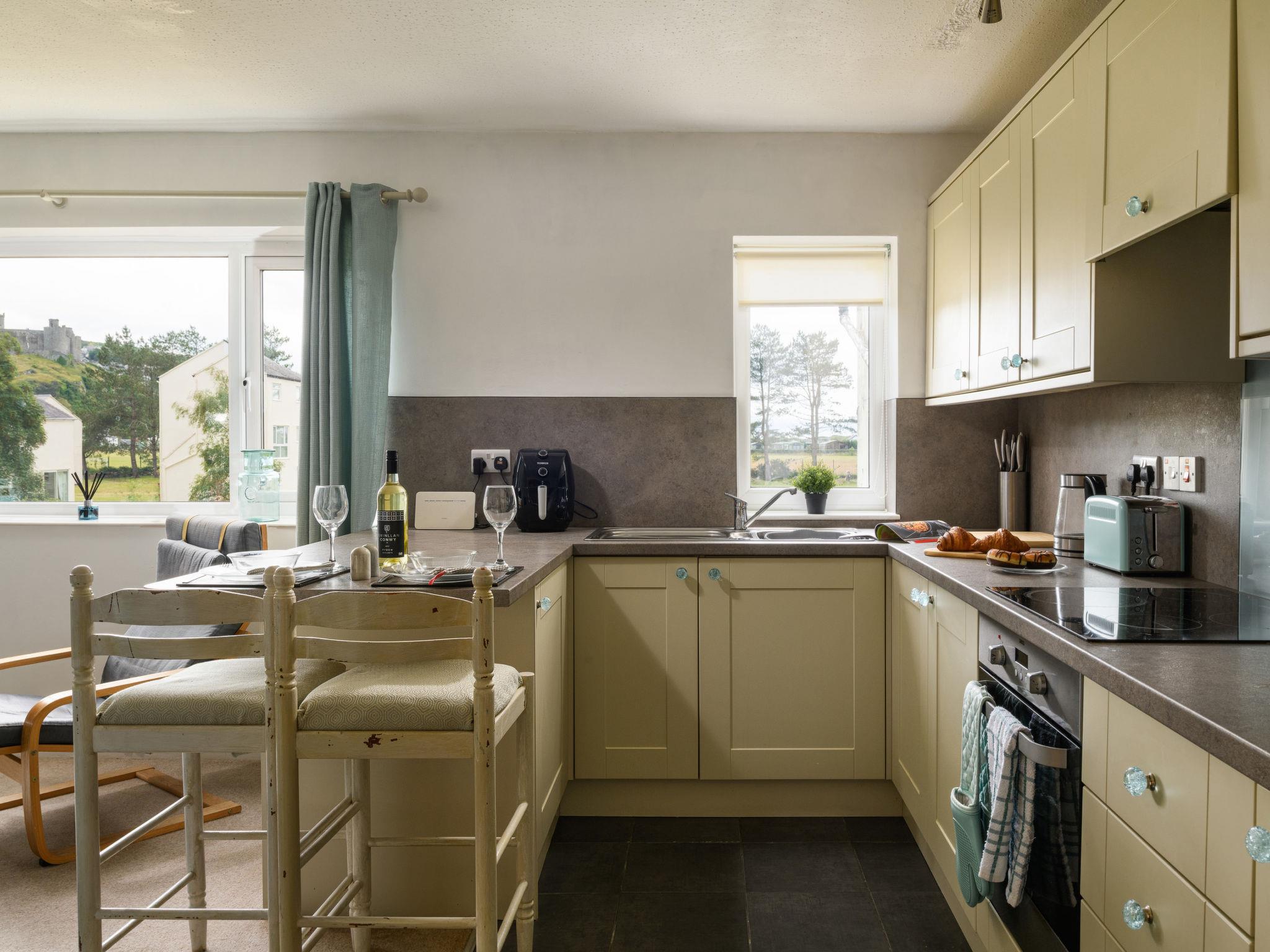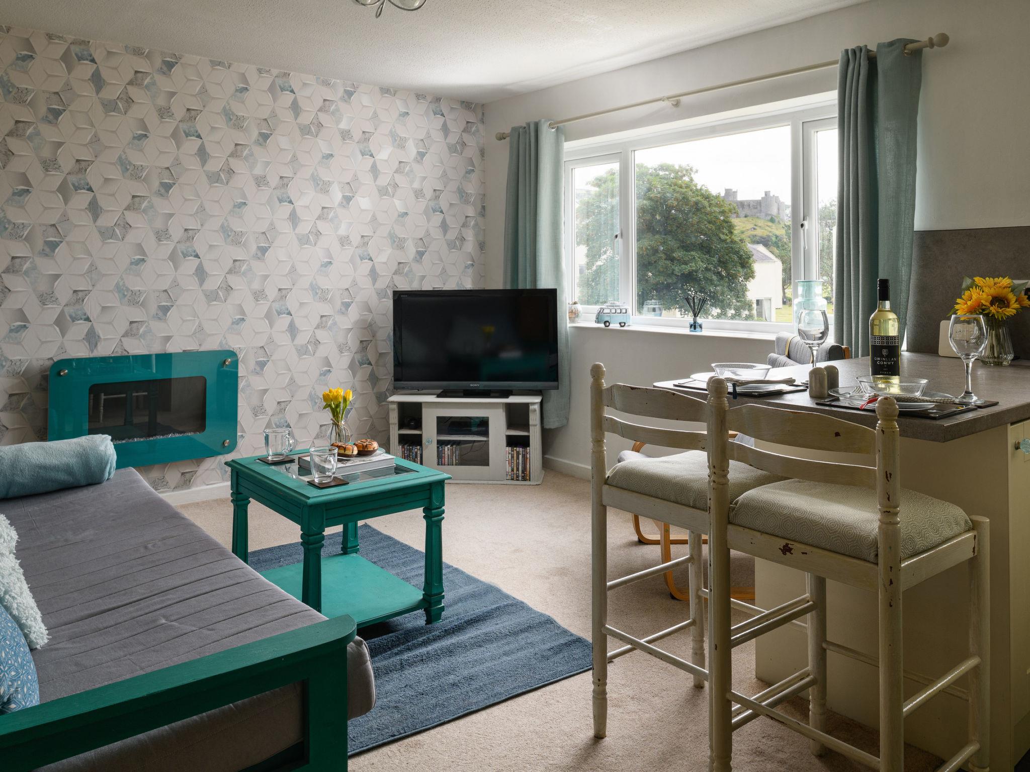 "Golygfa o'r Castell - Castle Views", 2-room apartment 50 m2. Object suitable for 2 adults. Living room with open-hearth fireplace, TV and DVD. 1 room with 1 double bed. Kitchen (oven, toaster, kettle, microwave, freezer). Shower/WC. Facilities: washing machine. Internet (WiFi, free). Please note: non-smokers only. 1 pet/ dog allowed. Smoke alarm.