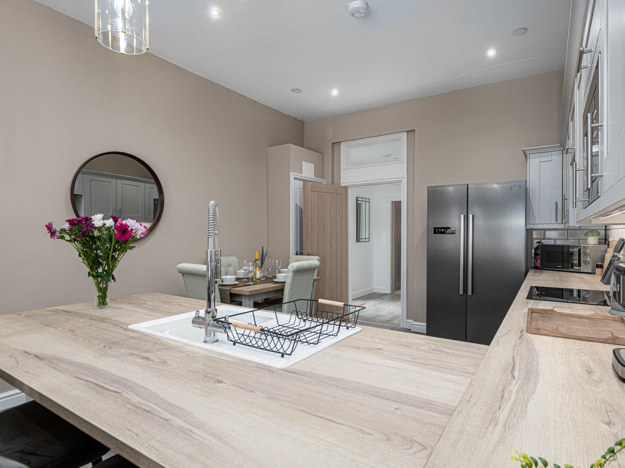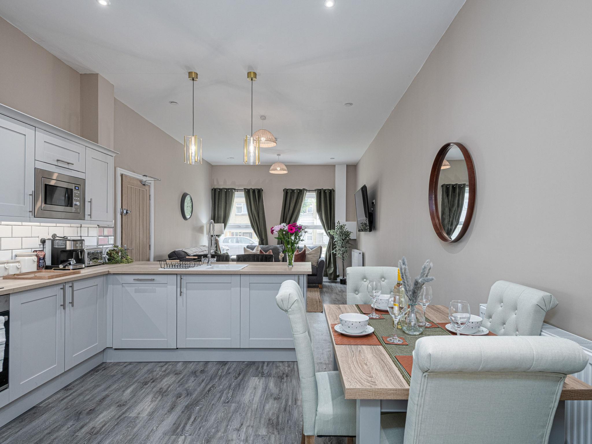 "Peace Retreats Apartment - Pwllheli", 3-room apartment 100 m2. Object suitable for 4 adults. Living room. 1 room with 1 double bed. 1 room with 1 double bed. Kitchen (oven, dishwasher, toaster, kettle, microwave, freezer). Bath/WC. Facilities: washing machine, iron. Internet (WiFi, free). Parking (1 car). Please note: non-smokers only. 1 pet/ dog allowed. Smoke alarm.