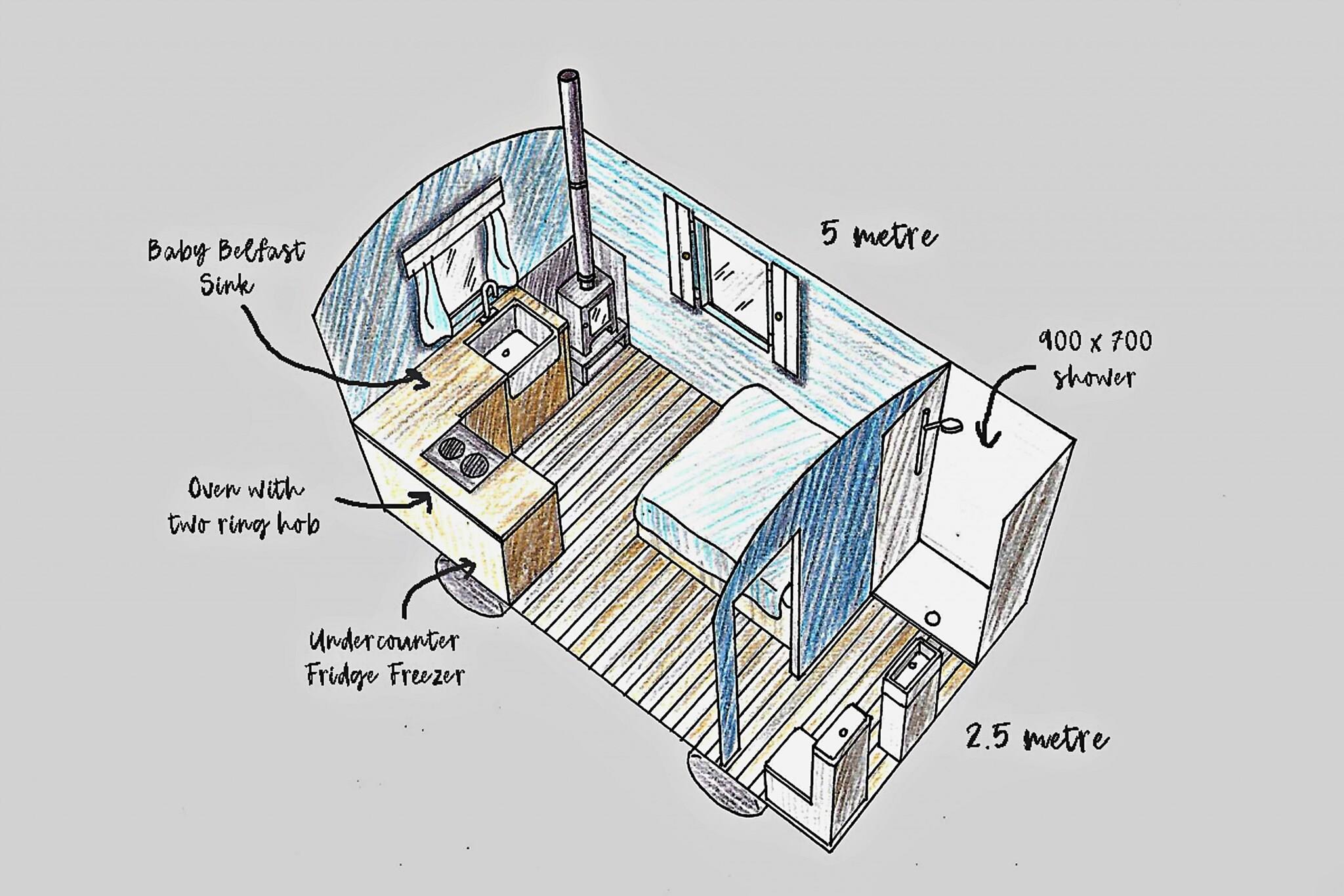 Flygt til et roligt tilflugtssted ved søen, hvor dobbeltdøre åbner direkte ud til en glitrende sø, så du kan slappe af og se solen danse hen over vandet, mens den går ned. Beliggende på den fantastiske Ll?n-halvø nær grænsen til Snowdonia National Park i det nordlige Wales, tilbyder denne afsondrede oase en betagende, uforstyrret udsigt over Yr Eifl (The Rivals)-bjergene. Blot en kort afstand fra den charmerende italienske landsby Portmeirion finder du den perfekte balance mellem fred, naturlig skønhed og nem adgang til lokale attraktioner. Beliggende i en vildblomsteng med udsigt over en privat sø, giver denne luksuriøse hyrdehytte det ideelle miljø til at slappe af, afbryde og genoprette forbindelsen til naturen. Interiøret kombinerer komfort og stil med en hyggelig dobbeltseng, et fuldt udstyret køkken med ovn, komfur, køleskab, fryser og Belfast-vask, samt et moderne ensuite brusebadeværelse med miljøvenlige toiletartikler. Hold dig varm ved brændeovnen med brændestykker, og nyd moderne faciliteter såsom en Anker Bluetooth-højttaler, håndklæderadiator og en bålplads med gratis brænde til udendørs madlavning og afslapning. På stedet finder du borde og siddepladser både inde og ude, perfekt til at nyde de naturskønne omgivelser. De fem skræddersyede hytter – hver med sin egen karakter og eklektiske indretning – tilbyder en helt unik oplevelse. Med parkering inkluderet bag hver hytte og et ophold på minimum tre nætter giver denne fredelige flugt alt, hvad du behøver for at slappe af, nyde naturen og skabe uforglemmelige minder i det nordlige Wales. Beklager, ingen kæledyr tilladt.
