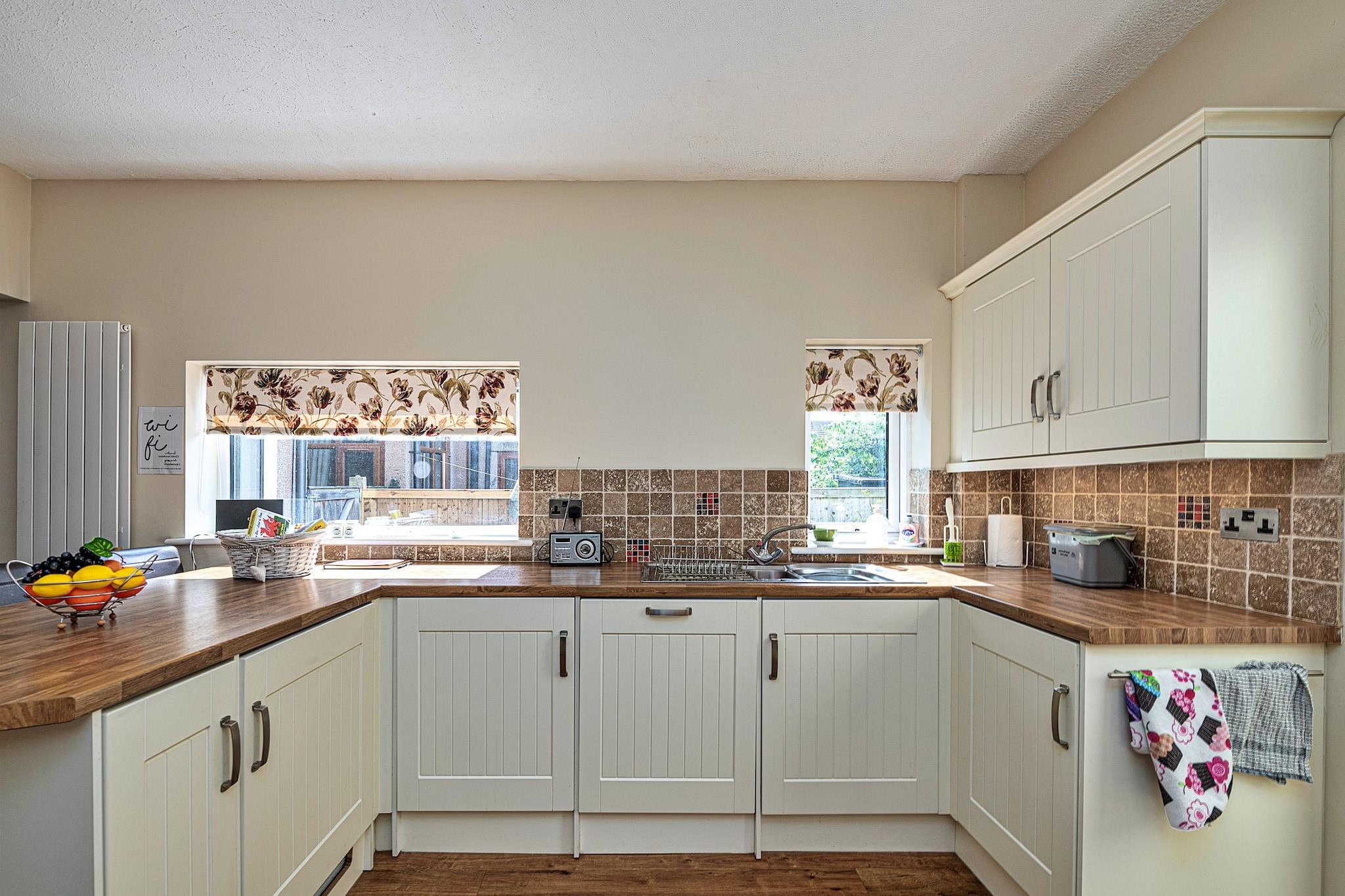 Beliggende i den charmerende kystlandsby Rhos-on-Sea, er Penrhyn Avenue det perfekte tilflugtssted for dem, der længes efter en harmonisk blanding af afslapning og eventyr. Dette velindrettede sommerhus ligger kun et stenkast fra den betagende nordlige Wales kystlinje, hvor en fantastisk havudsigt og adgang til naturlige vidundere venter. Sommerhuset har tre smukt indrettede dobbeltværelser, der giver rigelig plads til afslapning, mens et familiebadeværelse med både bruser og badekar sikrer bekvemmelighed. Udenfor venter en privat have, perfekt til at nippe til morgenkaffe eller nyde et aftenglas vin under stjernerne Træd indenfor i dette dejlige sommerhus, hvor en varm og indbydende atmosfære omslutter dig. Det komfortable opholdsområde, der er udstyret med hyggelige sofaer, Wi-Fi og et fladskærms-tv, er ideelt til at slappe af efter en dag med udforskning. Det fuldt udstyrede køkken har moderne apparater, hvilket gør det til det perfekte sted at tilberede lækre måltider, som du kan nyde i den tilstødende spiseplads, uanset om du brænder op til en eventyrlig dag eller nyder et roligt aftensmåltid. Kun en kort gåtur tager dig til sandstranden, hvor du kan nyde afslappede gåture langs promenaden eller udforske lokale butikker og caféer. Nærliggende attraktioner, såsom Welsh Mountain Zoo og det ikoniske Conwy Castle, byder på endnu mere at se og gøre. Plus, den pulserende by Llandudno, hjemsted for Great Orme Tramway og Llandudno Pier, er inden for rækkevidde, hvilket giver uendelige muligheder for underholdning og udforskning.