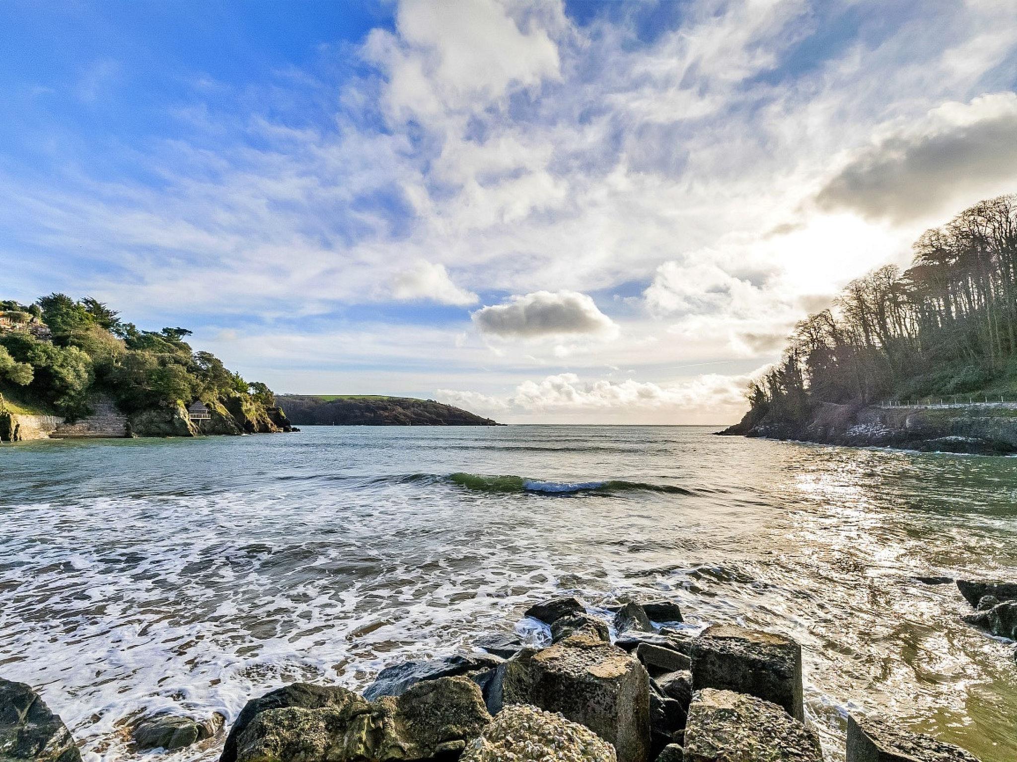 Salcombe: Apartment block. Parking (for 2 cars) at the house. Supermarket 805 m, bus stop 161 m, railway station 30.4 km, sandy beach 1.8 km.