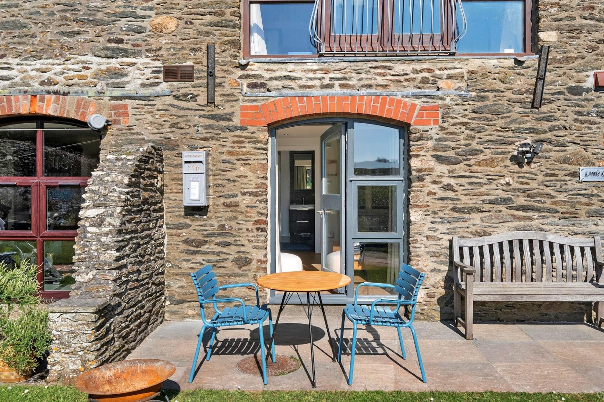 Velkommen til en charmerende og stilfuld etværelses lejlighed i stueetagen, designet til dem, der ønsker at slappe af og fordybe sig i Soars fantastiske skønhed, South Devon. Beliggende i en historisk, 200 år gammel gård, er dette smukt renoverede tilflugtssted beliggende i et område med enestående naturskønhed, kun få øjeblikke fra South West Coastal Path, hvilket gør det til en fantastisk base for naturelskere og udendørsentusiaster. Denne lejlighed har et lyst og luftigt opholdsrum i åbent plan, komplet med et fuldt udstyret køkken og et kompakt bryggers med vaskemaskine og tørretumbler. Selvom der ikke er nogen kedel, er en praktisk Quooker-kogende hane tilgængelig til at lave varme drikke på ingen tid. Det rummelige soveværelse har en luksuriøs kingsize-seng og store indbyggede skabe, suppleret med et en-suite badeværelse med brusekabine. Træd udenfor til det forreste terrasseområde for at slappe af og nyde det smukke Devonshire-solskin. Uanset om du søger afslapning, eventyr eller en romantisk ferie, tjener denne lejlighed som en luksuriøs og komfortabel base for dit ophold. Nyd betagende gåture til nærliggende Soar Mill Cove, Salcombe, Bolberry og Hope Cove eller slap af i det smukt designede interiør. Med parkering på stedet for et køretøj og den unikke charme i det omkringliggende landskab er dette tilflugtssted det ideelle sted for vandreture langs kysten eller fredelige dage på stranden. Bemærk dog, at denne ejendom ikke rummer hunde og har begrænset mobilnetværksforbindelse.