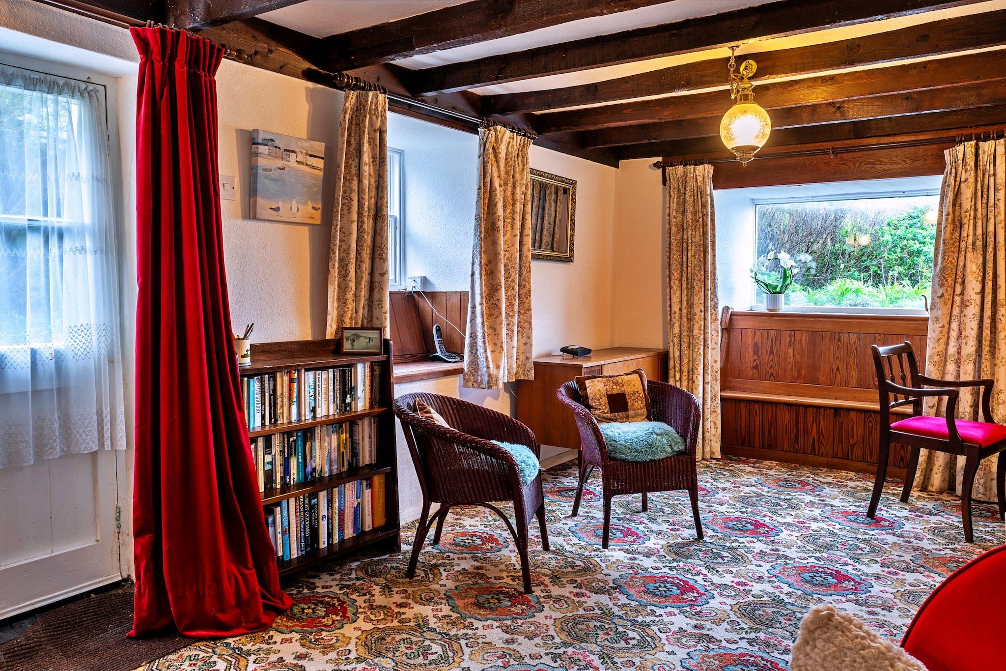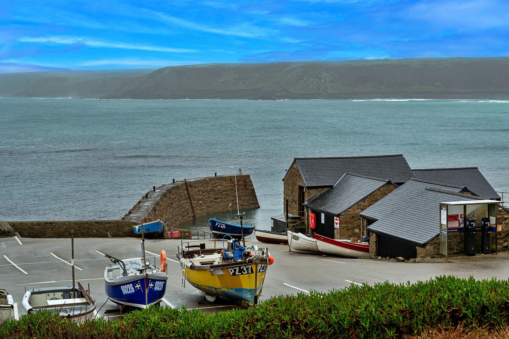 Beliggende bag den charmerende havn i Sennen Cove, tilbyder denne dejlige stråtækte hytte fra det 17. århundrede en betagende havudsigt og fungerer som det perfekte tilflugtssted for både badende, surfere og vandrere, eller blot dem, der søger et fredeligt tilflugtssted. Indenfor finder du to hyggelige soveværelser med komfortable enkeltsenge, der giver en god nats søvn. Den rummelige stue, der er udsmykket med originale detaljer såsom synlige bjælker og en pejs, kan prale af en fantastisk udsigt mod Land's End. Til din underholdning er der et Smart TV og gratis Wi-Fi. Køkkenet er omhyggeligt genudstyret med moderne bekvemmeligheder, herunder en dobbelt ovn, vaskemaskine, køleskab med fryser og mikroovn, hvilket sikrer en bekvem madlavningsoplevelse. Et velindrettet badeværelse nedenunder har en håndklædetørrer og et badekar med bruser over hovedet for ekstra komfort. Gæsterne vil nyde et udvalg af bøger og spil til afslappede eftermiddage, mens den maleriske have og den brolagte bagterrasse er perfekte til at slikke solen med udendørsmøbler. Kun fem minutters gåtur væk venter den smukke sandstrand sammen med en række lokale faciliteter - herunder en velassorteret landhandel, et kunstgalleri, en hyggelig café, en fish and chips-butik og en indbydende pub. Bemærk venligst, at på grund af stejle trin, der fører ned til hytten og haven, er dette charmerende hjem muligvis ikke egnet til personer med nedsat mobilitet eller til små børn under otte. Dette er en røgfri og kæledyrsfri ejendom, og off-road parkering er inkluderet for en lille bil, med yderligere betalings-og-visningsmuligheder tilgængelige inden for havneområdet.