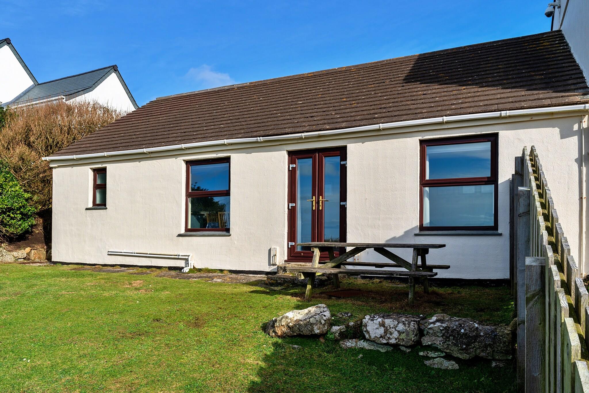 Oplev et charmerende sommerhus fra Cornwall, der ligger på toppen af ??klipper, og tilbyder en betagende havudsigt kun 250 fod over en fantastisk strand med en kilometer af blødt, hvidguldsand. Den åbne planløsning er designet til at maksimere den spektakulære natur og byder på panoramaudsigt over Sennen Cove, Land's End-klipperne og det store hav, der strækker sig til Isles of Scilly. Uanset årstiden skaber det evigt skiftende landskab nedenfor en fascinerende baggrund for din ferie. Den lukkede private have, der er tilgængelig gennem franske døre fra opholdsområdet, giver et sikkert tilflugtssted for små børn og kæledyr, hvilket gør det til et perfekt tilflugtssted for familier og grupper. Op til seks gæster kan komfortabelt slå sig ned i tre indbydende soveværelser, inklusive en dobbeltseng, en tvilling og et charmerende køjeværelse, der er velegnet til både yngre gæster eller voksne. Ud over et familiebadeværelse med bruser over badekarret, øger et ekstra toilet komforten ved dit ophold. Nyd aftenen med at slappe af med gratis Wi-Fi, et fjernsyn, eller tilbered et måltid i det fuldt udstyrede moderne køkken, komplet med vigtige apparater som en vaskemaskine/tørretumbler og fuld ovn. Kun en kort gåtur væk lokker de smukke sandstrande af Sennen Cove. Nyd frisk havluft og følelsen af ??blødt sand under dine fødder, med stranden kendt for at være et af West Cornwalls fineste surfingsteder. Området byder på fremragende faciliteter, herunder livredderopsyn om sommeren, og er let tilgængeligt via en privat sti. For eventyrlystne er regionen moden med muligheder for surfing, paddleboarding og vandreture langs kysten. Den nærliggende landsby byder på caféer, pubber og et kunstgalleri, mens ikoniske vartegn som Lands End og Minack Theatre er kun en kort køretur væk, og de lover fængslende oplevelser i denne smukke del af Cornwall.
