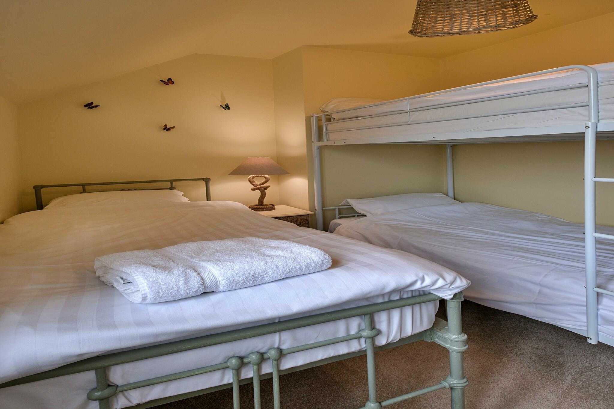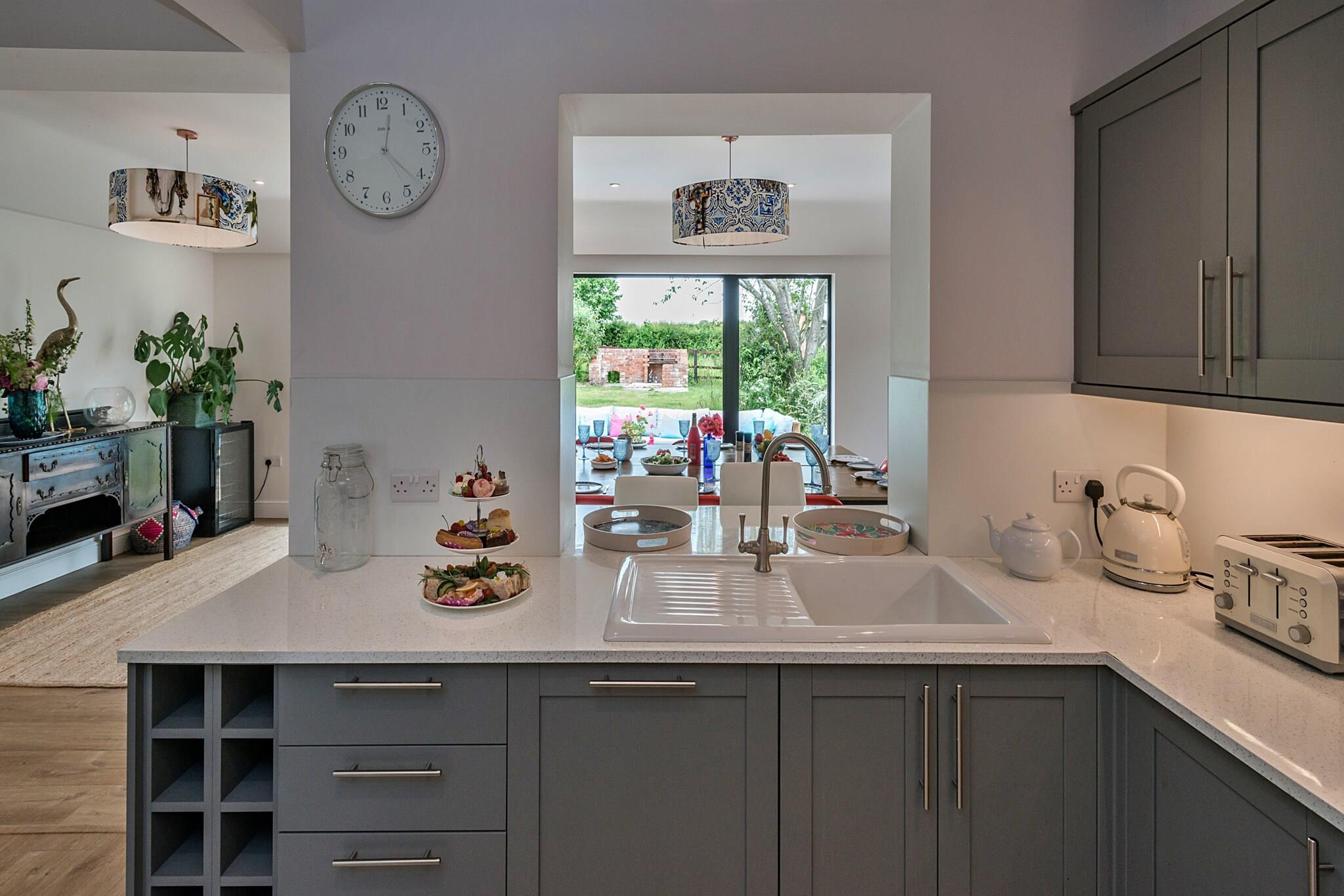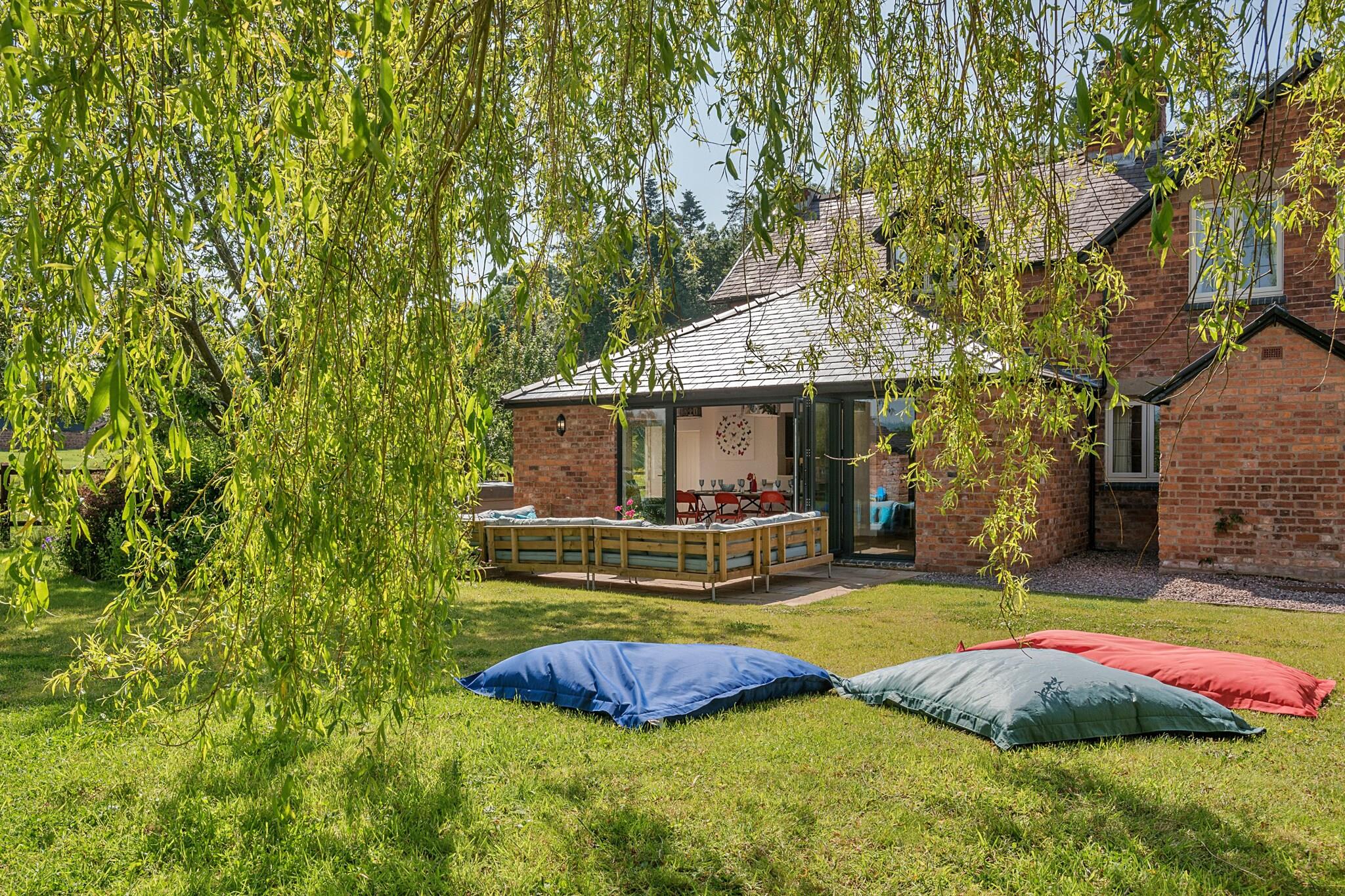 Beliggende i maleriske omgivelser tilbyder disse to smukt renoverede hytter et uovertruffent tilflugtssted for store grupper af familie og venner med plads til op til 16 gæster i ultimativ luksus. Med et indbydende spabad omgivet af terrasser, omfattende indhegnede haver og håndlavede lounge-siddepladser, fungerer denne ejendom som den perfekte baggrund for latterfyldte sammenkomster og elskede minder. Træd ind i den rummelige Hare Cottage, som komfortabelt har plads til 9 gæster. Her finder du et overdådigt kingsize-værelse med eget bad, et hyggeligt dobbeltværelse og et charmerende køjeværelse med en ekstra enkeltseng, suppleret med et familiebadeværelse for ekstra bekvemmelighed. Den nedenunder king soveværelset kommer med sit eget private badeværelse, hvilket sikrer privatliv og komfort for alle. Hjertet i Hare Cottage er dens ekspansive havestue, designet til socialisering og spisning. Med en dobbeltsidet brændeovn til at holde dig varm, et komfur til kulinariske lækkerier, et vinkøleskab til de festlige øjeblikke og et smart-tv parret med et sjovt bordfodboldområde, er det det ideelle sted for hele gruppen at nyde sammen. Fox Cottage, der kan rumme 7 gæster, udstråler en lignende charme med sine egne luksuriøse detaljer. Med et king-size soveværelse med eget bad, et hyggeligt dobbeltværelse og et dejligt køjeværelse med en enkeltseng, tilbyder denne hytte alt, hvad du behøver til afslappende nætter og behagelige morgener. Den hyggelige Fox Cottage skaber et magisk filmrum, perfekt for børn at fordybe sig i film, mens de voksne kan slappe af i deres eget fristed. Hver hytte er udsmykket med stoffer og møbler af høj kvalitet fra kendte designere som Farrow and Ball, Laura Ashley og Christian Lacroix, hvilket sikrer en elegant og moderne atmosfære under hele dit ophold. Udenfor er de store haver perfekte til solrige morgener med en kop kaffe, eftermiddagsgrill og aftener tilbragt i blød i boblebadet under en stjernehimmel. Med enge langs floden Severn kan gæsterne nyde den unikke mulighed for at fiske fra flodbredderne eller endda tage en forfriskende dukkert i naturens skønhed med vild svømning. Dette tilbagetog er ikke kun et sted at bo; det er en destination, hvor varige minder skabes, og hvor kvalitetstid værdsættes.