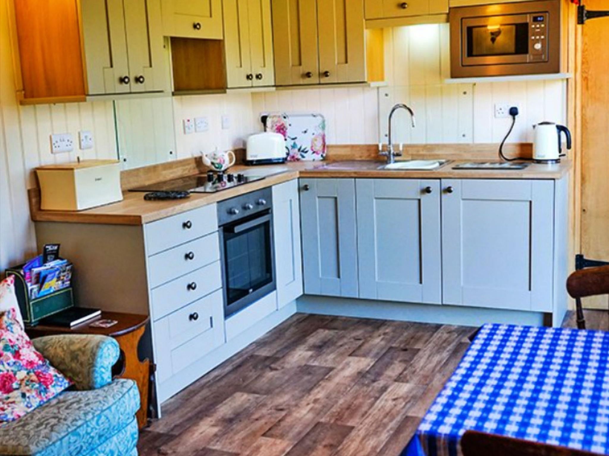 "Shepherd's Lodge at Morrells Wood", 2-room chalet 20 m2. Object suitable for 2 adults. Living room. 1 room with 1 double bed. Kitchen (oven, toaster, kettle, microwave, freezer). Shower/WC. Facilities: washing machine. Internet (WiFi, free). Please note: non-smokers only. Smoke alarm.