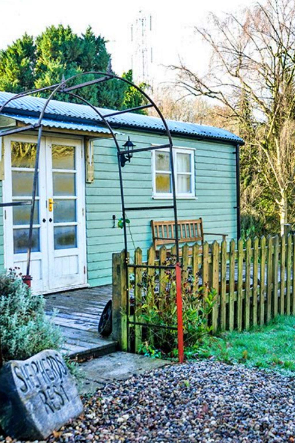 "Shepherd's Rest at Morrells Wood", 2-room chalet 20 m2. Object suitable for 2 adults. Living room with open-hearth fireplace. 1 room with 1 double bed. Kitchen (oven, kettle, microwave, freezer). Shower/WC. Barbecue. Facilities: washing machine. Internet (WiFi, free). Please note: non-smokers only. 2 pets/ dogs allowed. Smoke alarm.