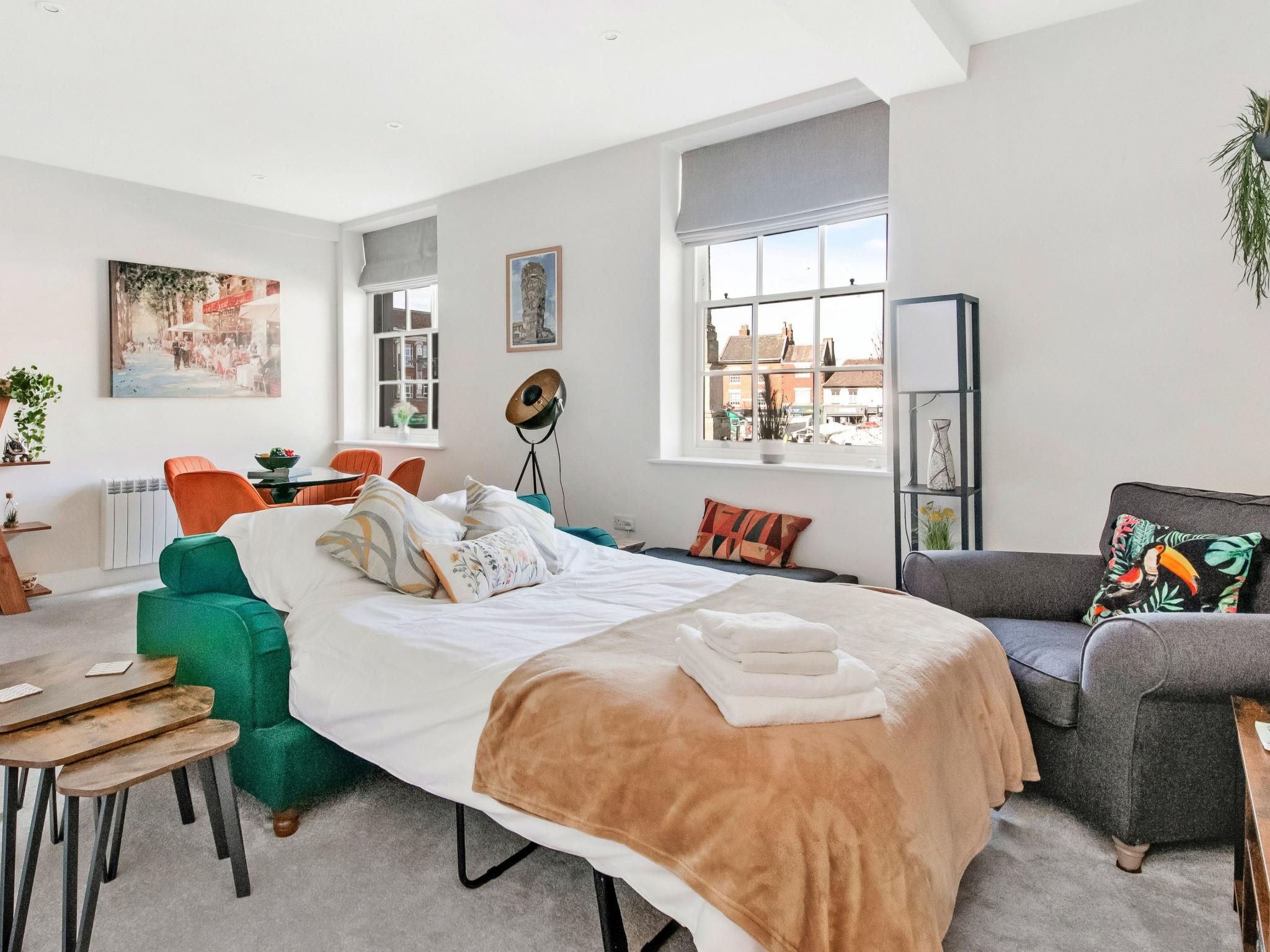 "Market View Ripon", 2-room house 50 m2 on 1st floor. Object suitable for 3 adults. Living room with 1 sofabed and 1 pull-out bed. 1 room with 1 french bed. Kitchen (oven, dishwasher, toaster, kettle, microwave, freezer). Shower/WC. Facilities: washing machine, iron. Internet (WiFi, free). Parking (1 car). Please note: non-smokers only. 1 pet/ dog allowed.