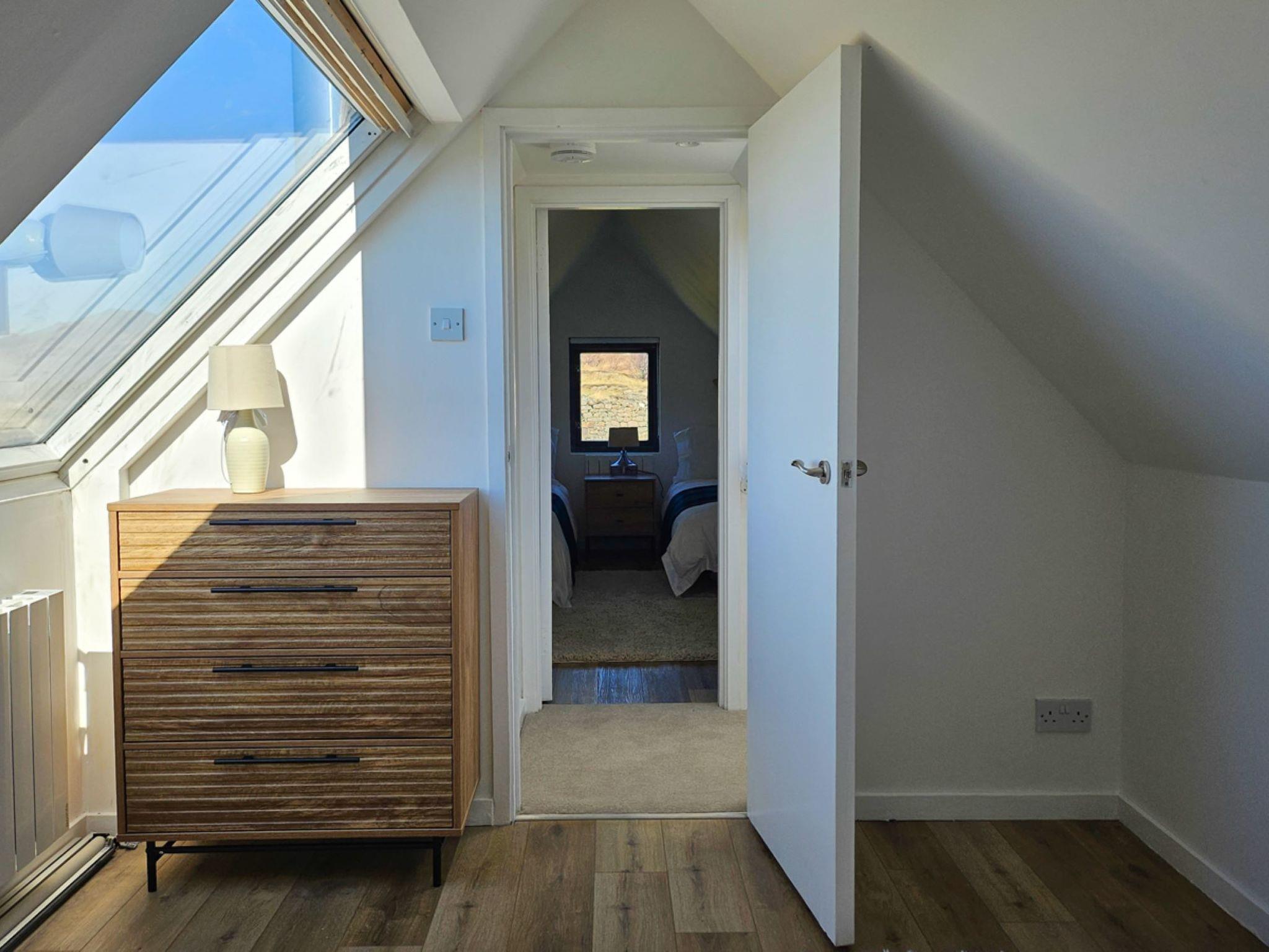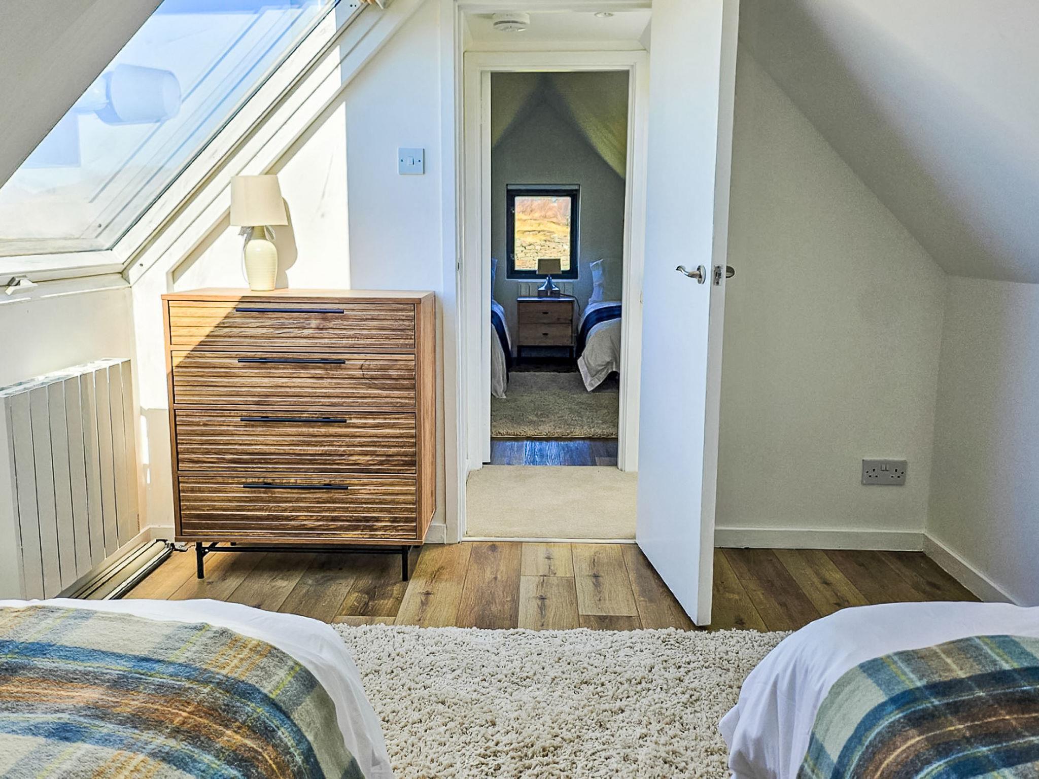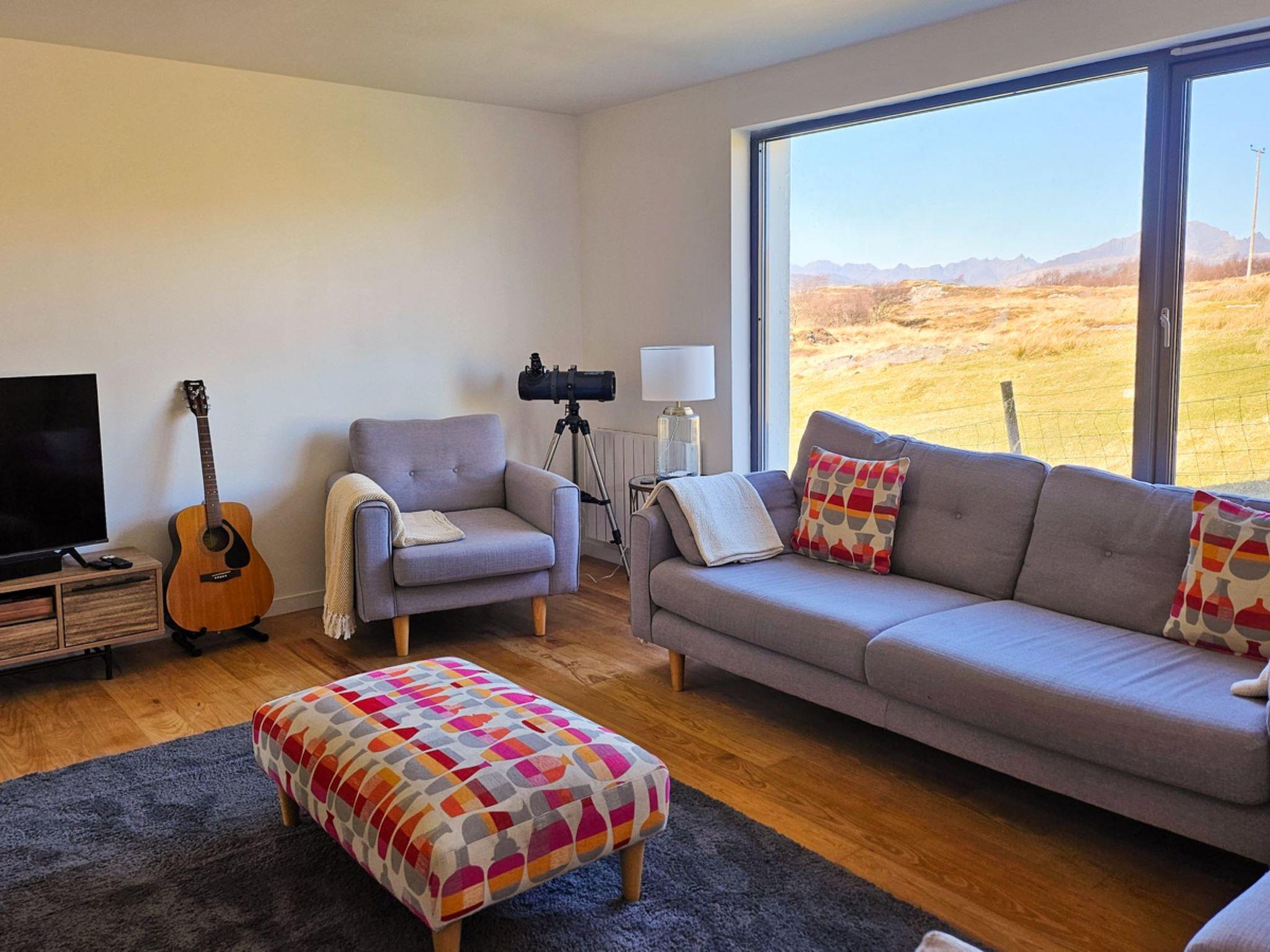 Modern, beautiful house "Horizon House", detached, surrounded by fields. In the district Isle of Skye, in a quiet position, 600 m from the sea, 3 km from the beach. Private: large garden (not fenced). In the house: central heating system. Parking (for 2 cars). Supermarket 13 km, restaurant 15 km, bar 15 km, café 13 km, bus stop "sleat medical centre" 15 km, ferry "Armadale Ferry Terminal" 16 km. Nearby attractions: Armadale Castle, Gardens & Museum 15 km, Fairy Pools 63 km, Dunscaith Castle 1 km, Spar caves 53 km, Sligachan Waterfalls 55 km. Please note: car recommended.