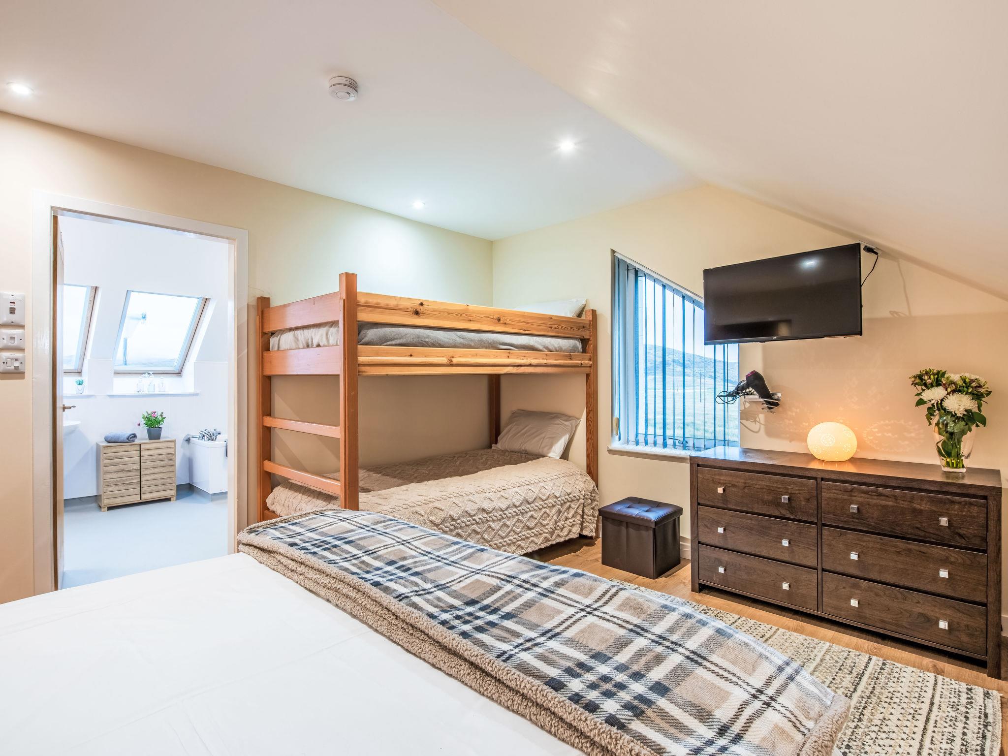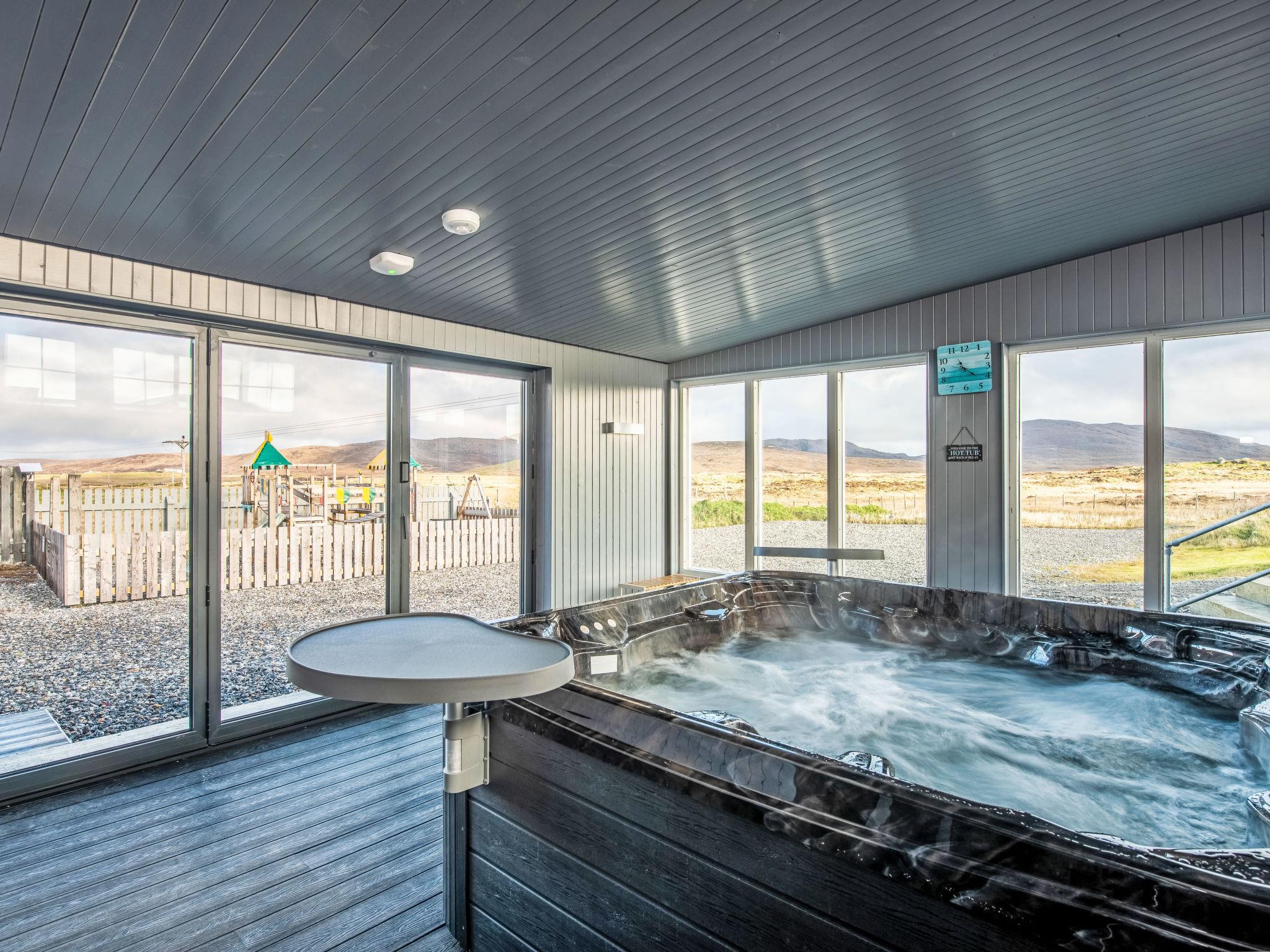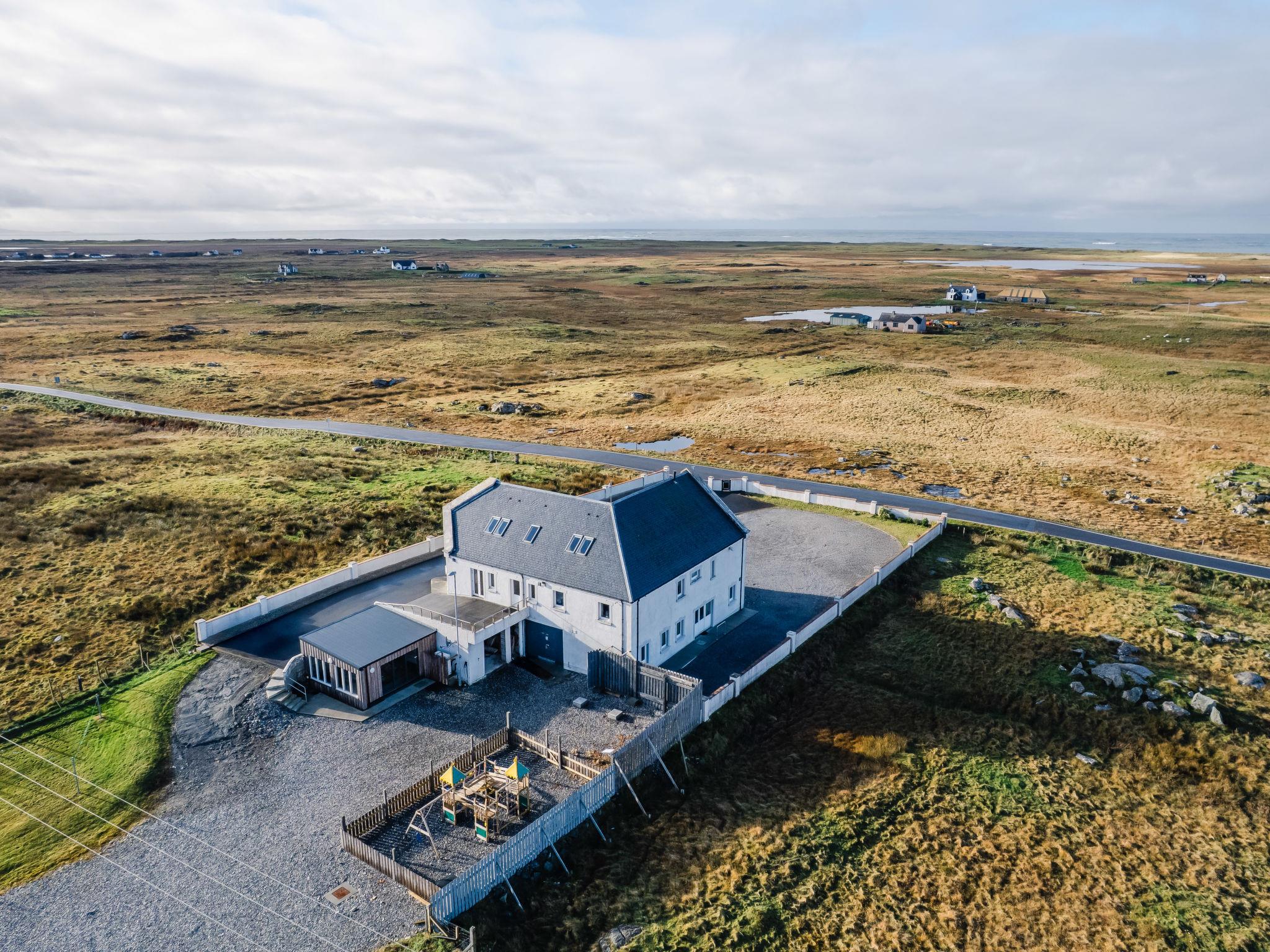 South Uist: Modern, comfortable house "Benderloch House", detached, built in 2008, renovated in 2024, surrounded by fields. In a secluded, quiet position, 1 km from the sea, 1 km from the beach. Private: natural garden, lawn for sunbathing. Hot tub, garden furniture, barbecue, children's playground. In the house: sauna. Parking at the house. E-charging station. Shop 4 km, grocery 4 km, restaurant 4 km, bar 4 km, bus stop 3 m, ferry "Lochboisdale" 8 km, sandy beach 1 km. Nearby attractions: Ormiclate Castle 8 km, Flora Macdonald's Birthplace 2 km, Howmore Church 13 km, Askernish Golf Club 3 km, Our Lady of the Isles 17 km, Kildonan Museum 3 km. Please note: car recommended. Property ref. GB8850.101.1 is situated on the same property. Large snooker table for guests use.