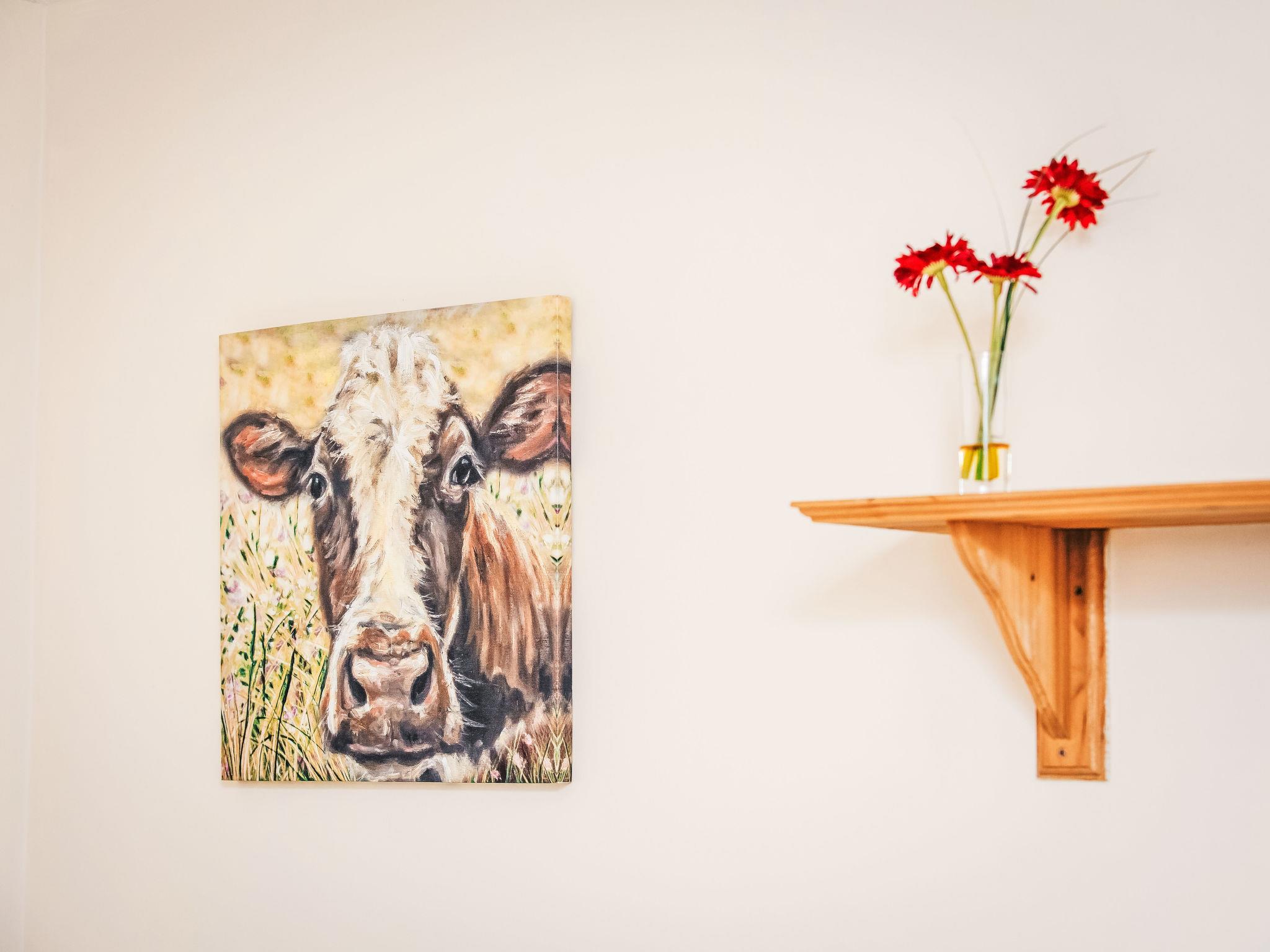 3-room apartment. Simple and comfortable furnishings: open living/dining room with dining table and digital TV. 2 double bedrooms, each room with 1 double bed. Kitchen-/living room (oven, 4 ceramic glass hob hotplates, toaster, kettle, microwave, freezer). Shower, shower/WC, sep. WC. Heating. Solar power. Marvellous view of the countryside. Facilities: washing machine, dryer. Internet (WiFi, free). Parking. E-charging station. Please note: non-smoking house. Smoke alarm, fire extinguisher.