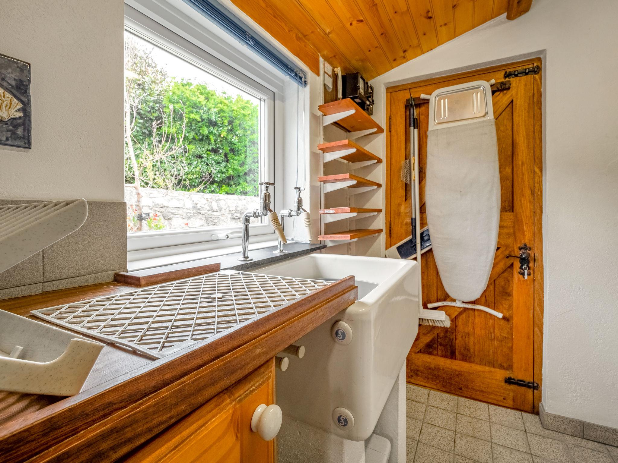 2-room semi-detached house on 2 levels. Very cosy furnishings: living/dining room with TV. Open kitchen (oven). Shower/WC. Electric heating. Upper floor: 1 double bedroom with 2 beds. Small patio. Terrace furniture. Beautiful view of the sea. Facilities: washing machine, dryer. Internet (WiFi, free). Please note: not suitable for small children. Non-smoking house. If the property is not left in clean conditions there will be a charge of £40.