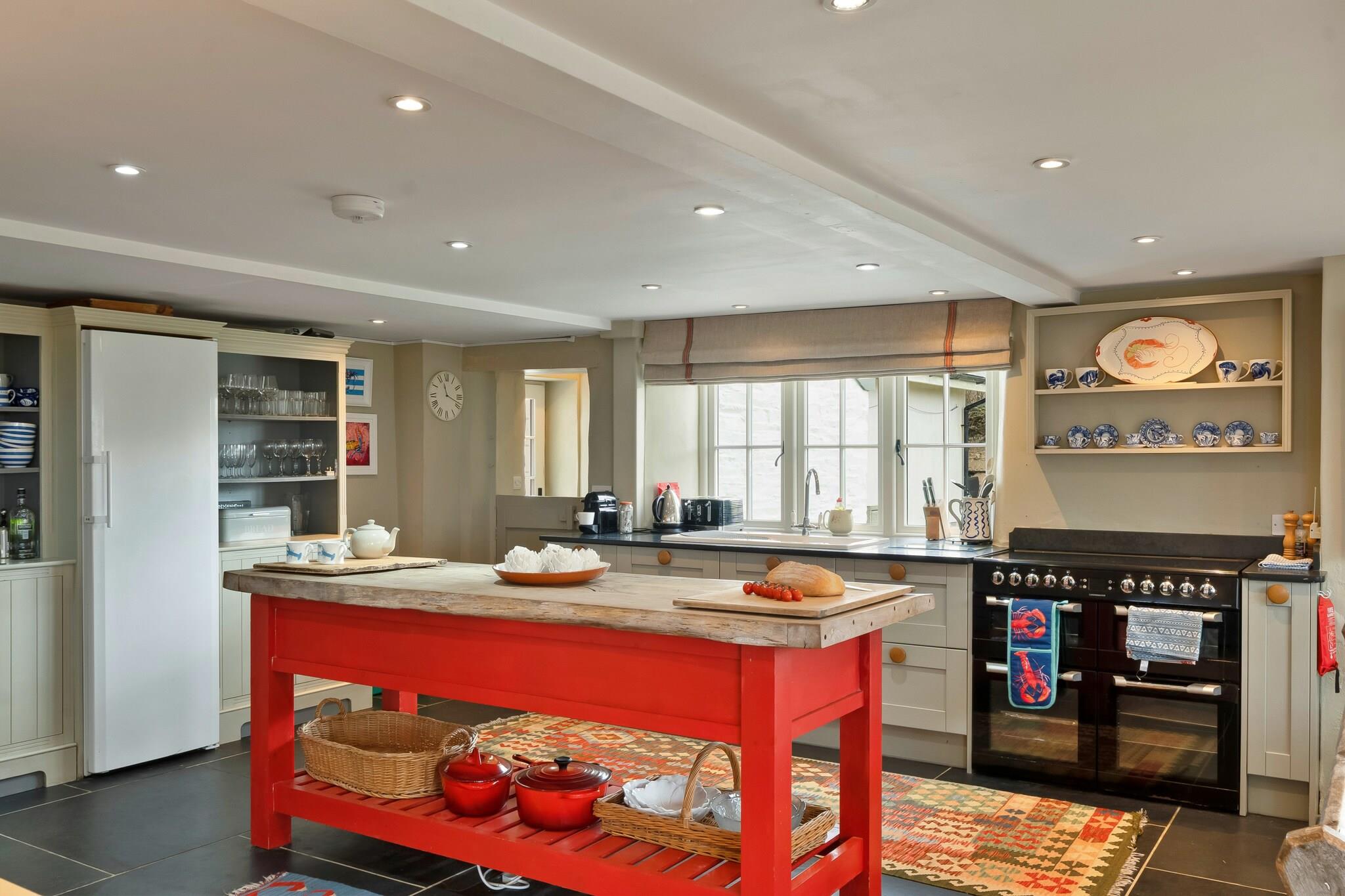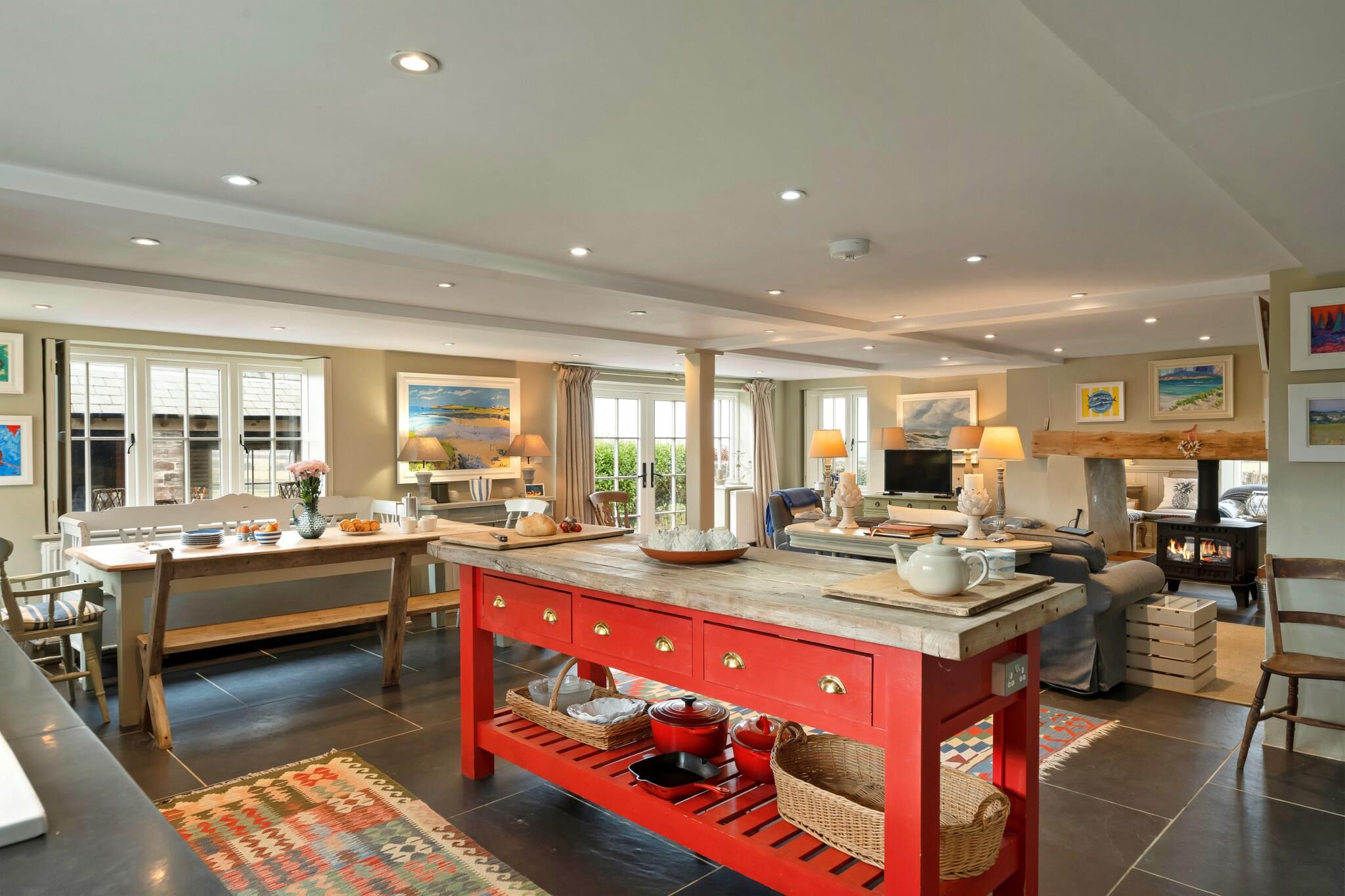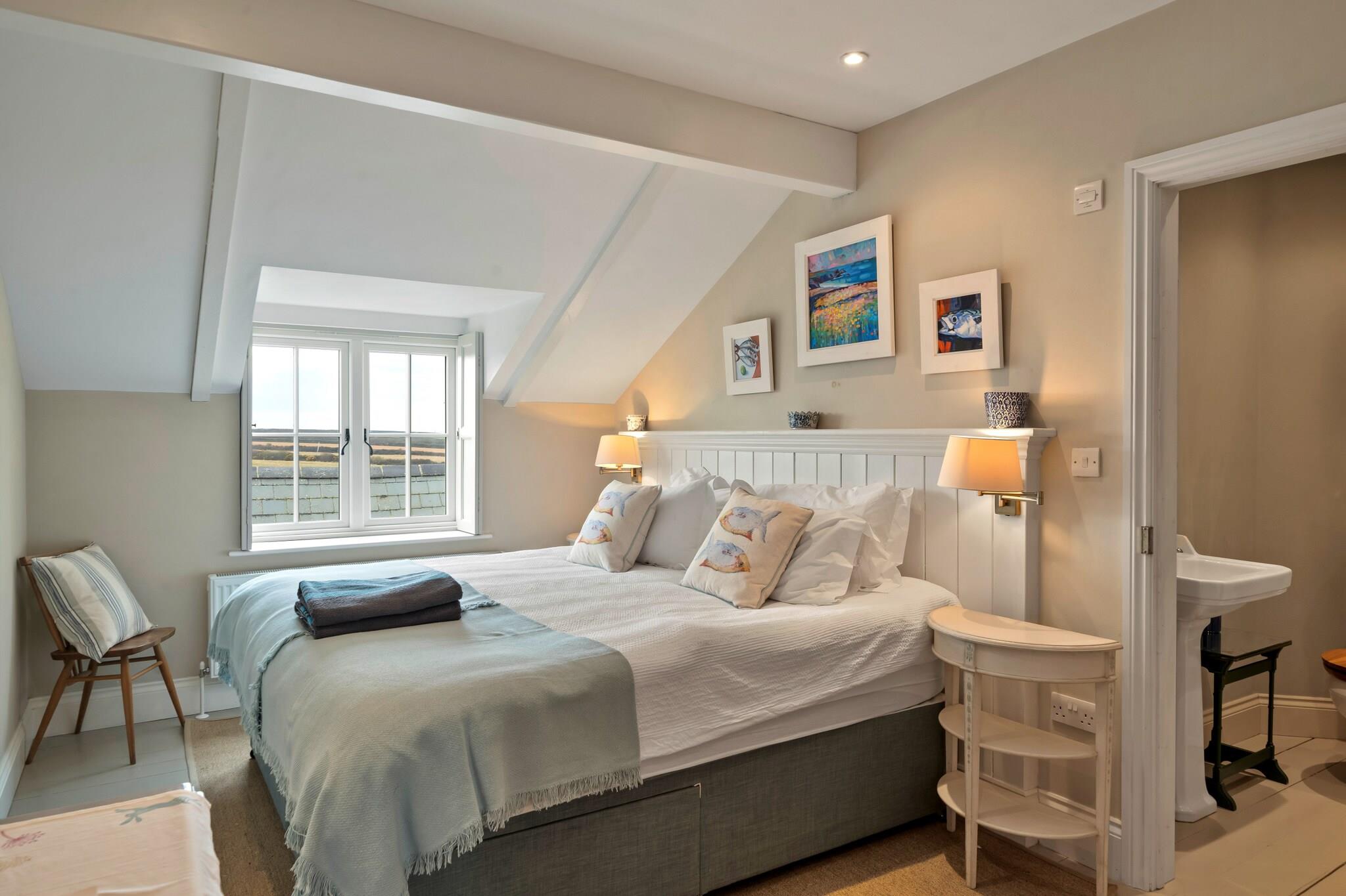 Beliggende i den fortryllende landsby St Eval tilbyder dette smukt ombyggede tidligere skolehus et unikt kysttilflugtssted på Cornwalls forrevne kystlinje. Kun få minutter fra Mawgan Porths og Porthcothans gyldne sandstrande udstråler ejendommen historisk charme, mens den byder på moderne bekvemmeligheder, der imødekommer ethvert behov. Med havudsigt synlig fra de fleste værelser giver dette hjem den perfekte baggrund for en rolig ferie i North Cornwall. Træd indenfor for at opdage et stilfuldt opholdsrum i åbent plan, der tilskynder til sammenkomster og afslapning. Det luftige køkken, spisestue og opholdsområde flyder problemfrit sammen, hvor store vinduer tillader sollys at oversvømme rummet, mens de fremviser en betagende udsigt over landskabet og havet. En dobbeltsidet brændeovn tilføjer den varme stemning, hvilket gør den til det perfekte sted at slappe af efter en dag med udforskning. Til de øjeblikke af ensomhed tilbyder en ekstra stue en hyggelig krog til læsning eller filmaftener med familie og venner. Ejendommen kan rumme op til ti gæster komfortabelt og kan prale af fem indbydende soveværelser, alle udsmykket med kystindretning, der afspejler de fantastiske omgivelser. Et soveværelse i stueetagen med eget badeværelse tilbyder bekvemmelighed, mens fire rummelige soveværelser ovenpå har enten ensuite faciliteter eller deler et familiebadeværelse. Udenfor bliver den private have et fredfyldt tilflugtssted for udendørs spisning og underholdende, komplet med et beskyttet grillområde til nydelse i al slags vejr. Med lokale strande, naturskønne vandrestier og charmerende nærliggende byer er dette dejlige skolehus den perfekte base for dit Cornish-eventyr, der giver et behageligt tilflugtssted for familier og grupper, der søger afslapning og mindeværdige oplevelser.