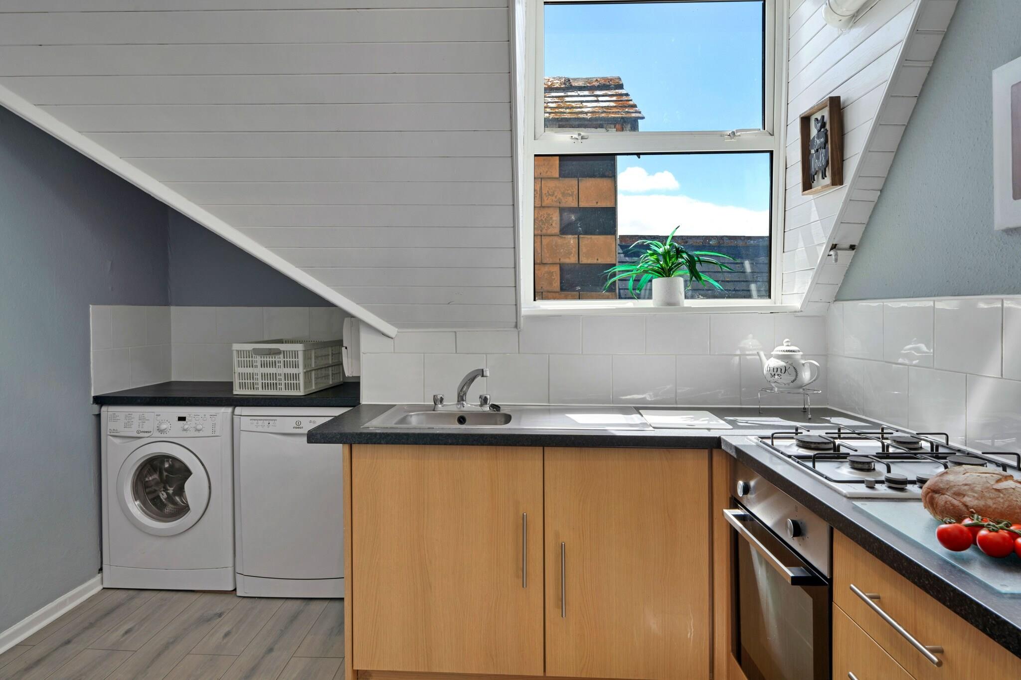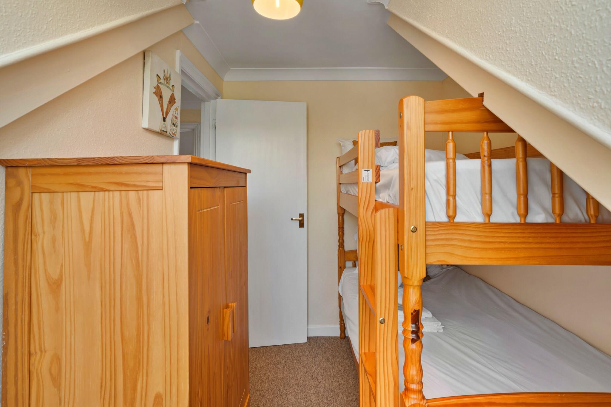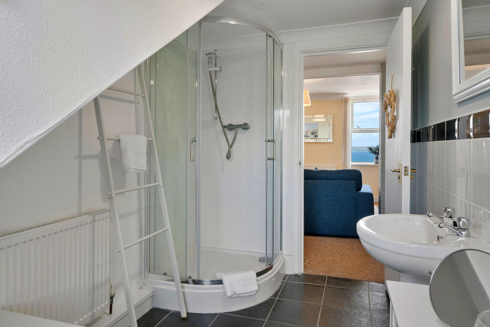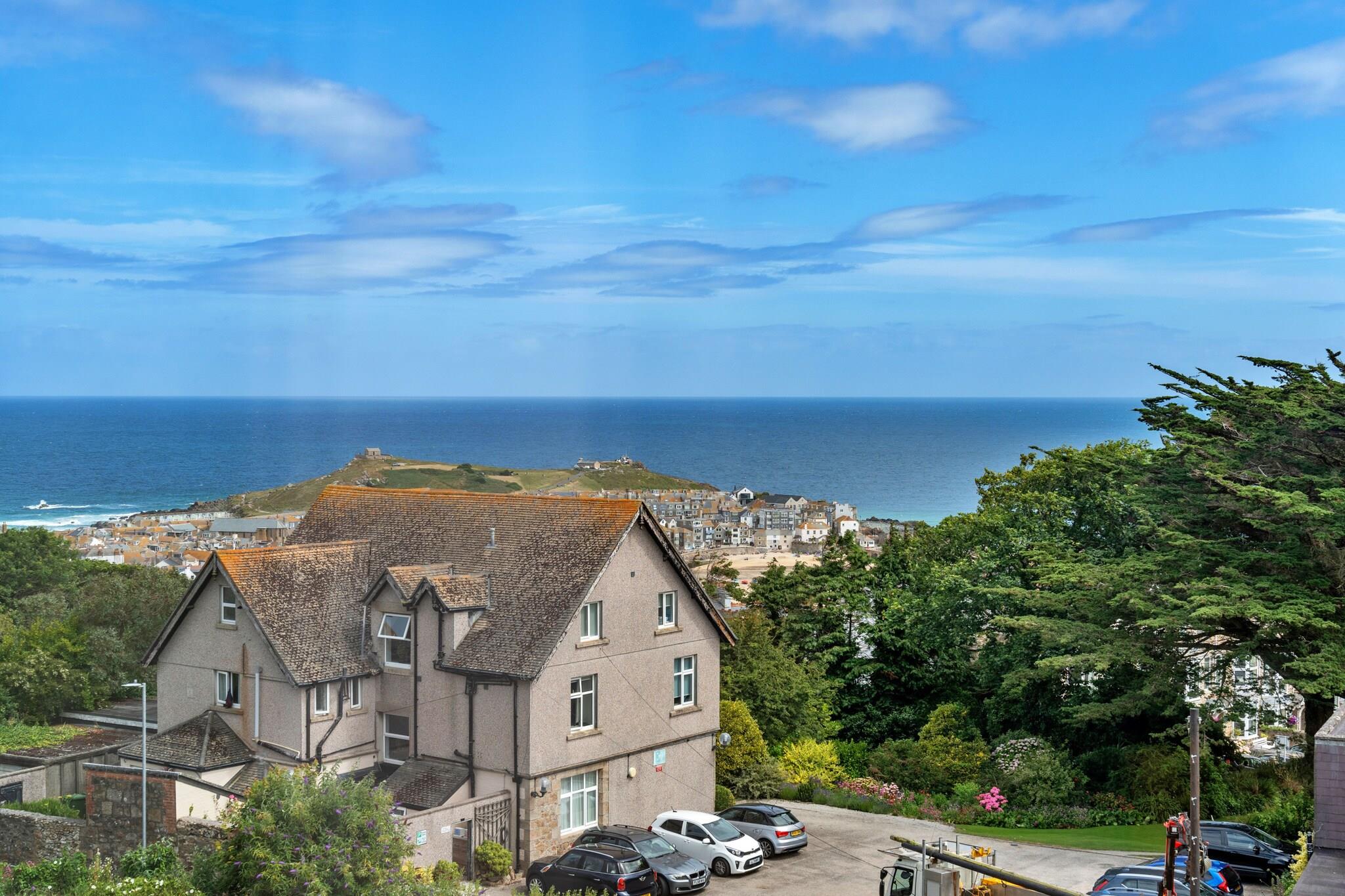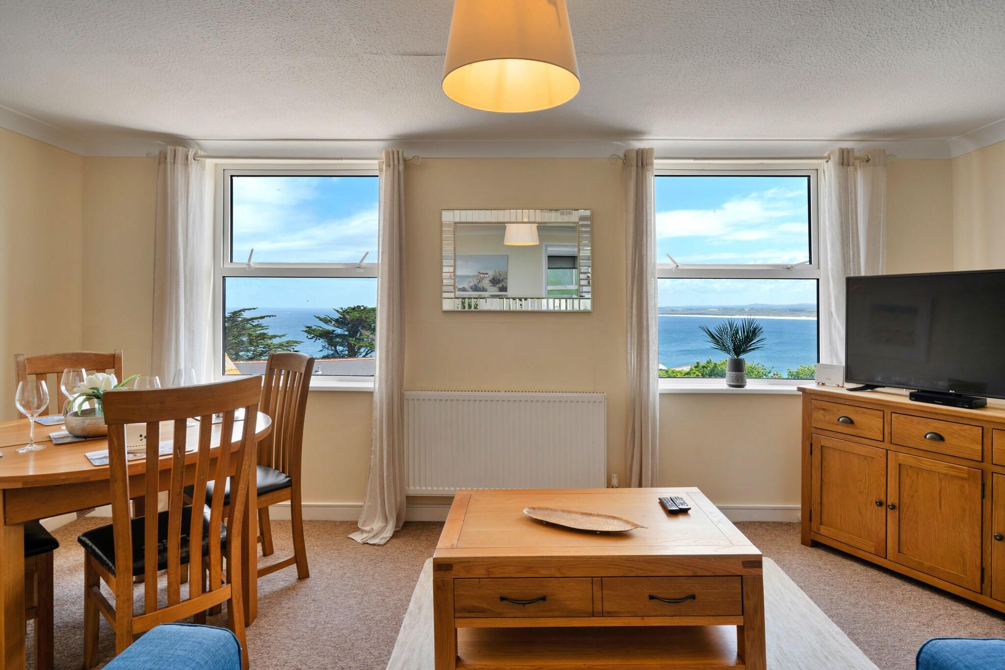 Introduktion af en komfortabel 2-værelses lejlighed med betagende havudsigt, der strækker sig over Carbis Bay til Gwithians gyldne sandstrande. Denne populære destination, der er kendt for sin perfekte naturlige belysning, tiltrækker både kunstnere og turister og forvandler havet til en elektrisk turkisblå. Familier vil sætte pris på den centrale beliggenhed og hjemmelignende bekvemmeligheder, herunder et veludstyret køkken med elektrisk ovn, gaskomfur, mikroovn og opvaskemaskine. Det hyggelige køkkenbord er ideelt til at nyde morgenkaffen sammen med friskbagte kager fra lokale håndværksbagerier, med et omfattende udvalg af spisemuligheder kun få skridt væk. Det store soveværelse med dobbeltseng har malerisk udsigt, der strækker sig til Godrevy Head, mens det andet køjeværelse rummer yderligere gæster. Slap af i den rummelige stue/spisestue, mens du nyder den fantastiske udsigt over bugten, eller nyd en film på det 43" digitale fladskærms-smart-tv. Familiebadeværelset med strandtema inkluderer bruseniche, toilet og håndvask, med den ekstra bekvemmelighed af en vaskemaskine/tørretumbler i køkkenet. Perfekt beliggende kun 300 meter fra Porthminster Beach, dette beskyttede sandstrand er ideelt til familieudflugter. Udforsk de charmerende gyder fyldt med uafhængige butikker, historiske bygninger og gallerier i verdensklasse, herunder det berømte Tate Gallery og The Barbara Hepworth Museum. Besøg den lokale chokoladefabrik, 'I Should Coco', for en sød lækkerbisken for workshops eller lækker chokolade med hjem. Lejligheden inkluderer en udpeget parkeringsplads og udendørs picnicbænke, hvilket giver et perfekt tilflugtssted for livet ved havet. Bemærk venligst, at adgang er via trapper, som muligvis ikke er egnet for personer med nedsat mobilitet.