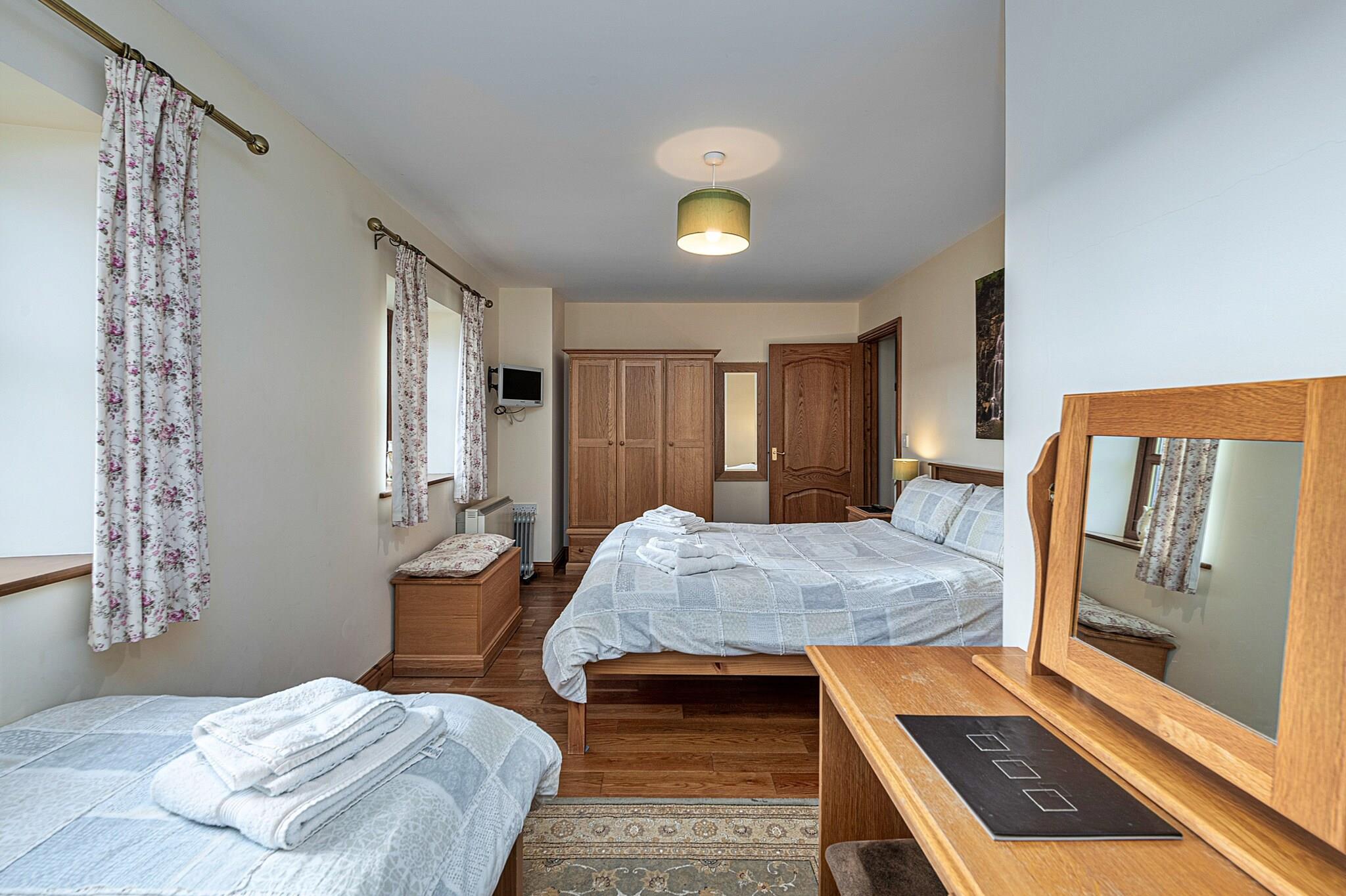 Tag på en ekstraordinær familieferie på dette storslåede tilflugtssted langs den fortryllende Cardigan Bay Coast, hvor kystluksus møder idyllisk charme på landet. Nyd en perfekt blanding af ro ved havet, naturskønne gåture og engagerende familieattraktioner til en mindeværdig flugt. Når du træder ind i sommerhuset, bydes du velkommen af ??egemøbler i landlig stil, der sætter en varm og indbydende tone. Køkkenet, med dets skiferflisegulv, har et spisebord til seks sammen med moderne bekvemmeligheder, herunder et køleskab med fryser, komfur, mikroovn, opvaskemaskine, vaskemaskine og tørretumbler. Stuen er designet til komfort og tilbyder en tredelt suite til seks, sofaborde, Freeview-tv og en hyggelig brændeovn. Træd gennem gangen for at opdage en charmerende udendørs oase komplet med et spisebord til seks - ideel til al fresco måltider. Retreatet har to smukt indrettede soveværelser. Den første kan prale af et en-suite brusebad, en kingsize seng, en enkeltseng, et toiletbord, en skammel, sengeskabe og et tv. Det andet soveværelse afspejler denne storhed og giver endnu en king-size seng, en enkeltseng og alle de bekvemmeligheder, der er nødvendige for et afslappende ophold. Familiebadeværelset, der er udsmykket med skiferfliser, inkluderer en bruser over badekar for bekvemmelighed. Udenfor kan du nyde din lukkede haveoase, komplet med havemøbler, en gasgrill og et luksuriøst seks-personers spabad, der inviterer dig til at slappe af, mens du nyder en betagende udsigt. Sengelinned og håndklæder leveres, med yderligere faciliteter såsom en rejseseng, høj stol og trappeport til rådighed for de små. Rygning er ikke tilladt på stedet.