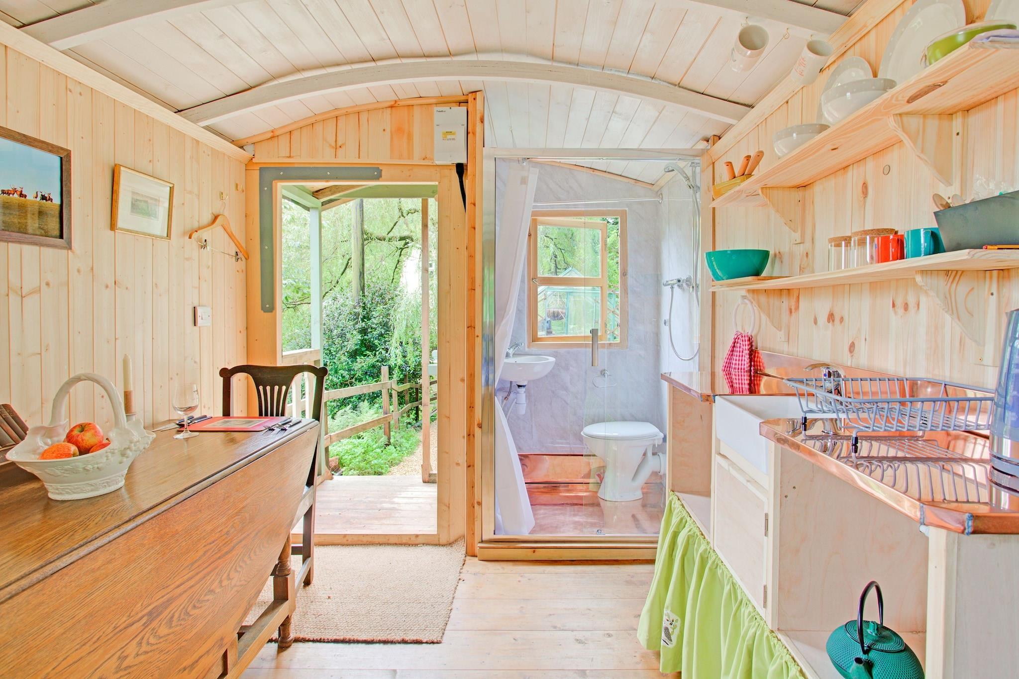 Beliggende i udkanten af ??Exmoor National Park i West Somerset, tilbyder denne store hyrdehytte alle moderne bekvemmeligheder midt i et fantastisk landskab. Meget tilgængelig, det er kun 20 minutter fra afkørsel 25 på M5, hvilket gør det til en ideel base for at udforske talrige nærliggende attraktioner. Hytten har en rummelig seng, et tekøkken, et brusebad og et stort spisebord - der byder på den hyggelige charme af et sommerhus med en hyrdehyttes unikke tiltrækningskraft. Den smukke West Somerset-kyst ligger kun en halv time væk nær Minehead, mens East Devon-kysten nær Lyme Regis og Sidmouth kan nås inden for en time. For surfentusiaster ligger strandene i North Devon og North Cornwall lidt over en times kørsel væk. Exmoor National Park, kun fem minutter i bil, byder på betagende vandrestier og en indbydende pub undervejs. I oktober kan gæsterne nyde Dark Sky Festival, der fejrer områdets berømte klare nattehimmel fri for lysforurening. Denne hyrdehytte ligger på grunden af ??et lille landsted og er perfekt til naturelskere, der søger fred og eventyr. Venlige ejere er klar til at sikre et mindeværdigt ophold og kan hjælpe med at planlægge dine daglige udflugter. Uanset om det er vandreture, stjernekiggeri eller kystudforskning, tilbyder dette rolige tilflugtssted en perfekt blanding af komfort og charme på landet.