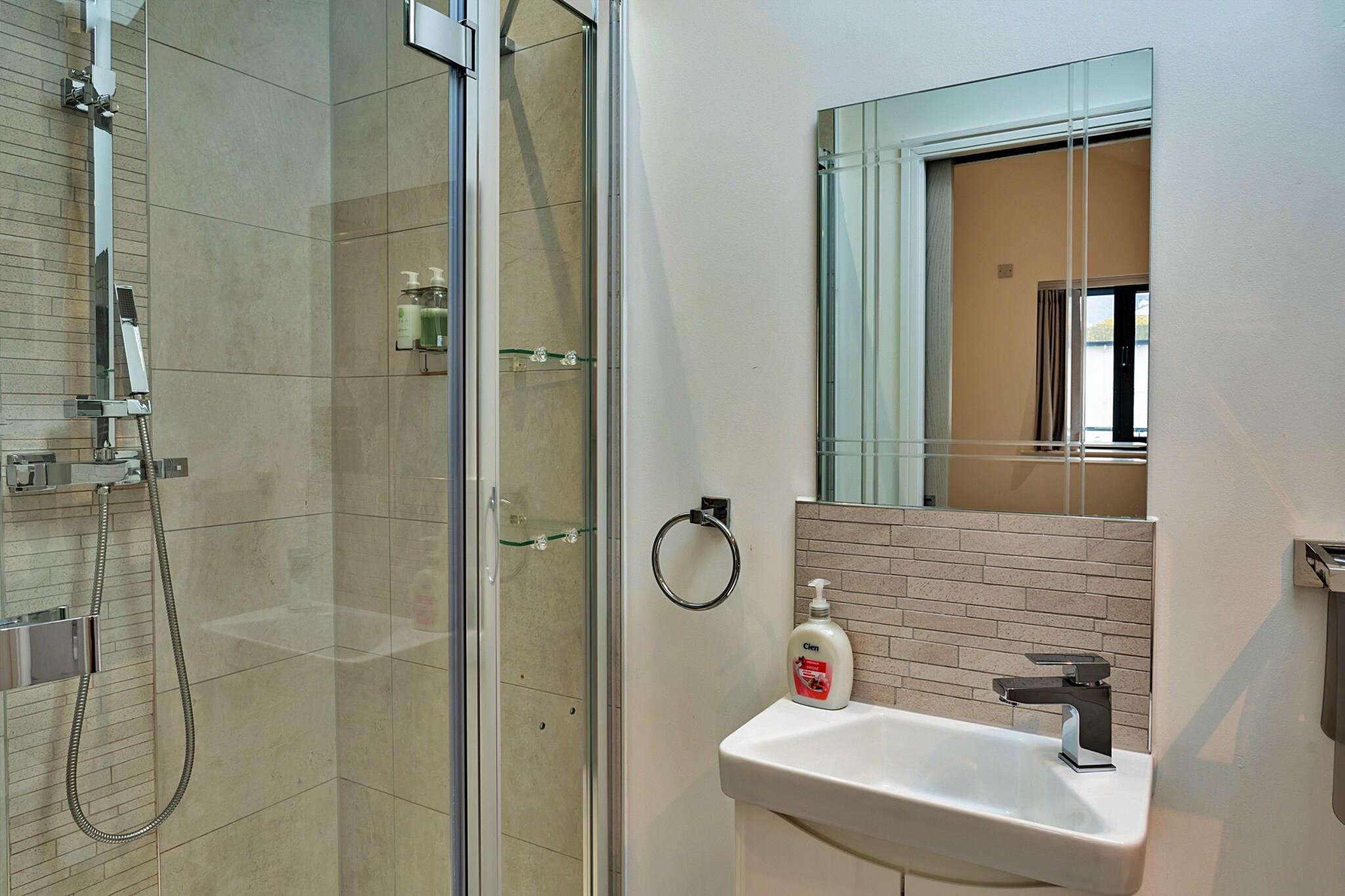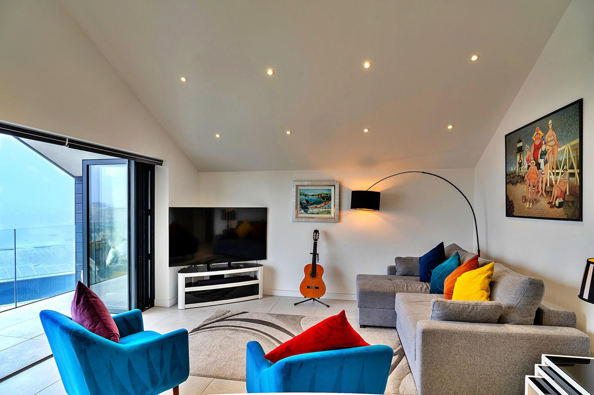 Velkommen til Anchor View, en luksuriøs penthouselejlighed med en betagende udsigt over Teignmouth, Shaldon og Teign Estuary. Denne moderne lejlighed er et ideelt tilflugtssted for familier eller små grupper, der komfortabelt kan rumme op til seks gæster. Med to rummelige soveværelser med dobbeltsenge, inklusive en king-size seng med eget brusebad og et dobbeltværelse, vil du nyde både privatliv og komfort. En king-size sovesofa i opholdsområdet giver ekstra soveplads for din bekvemmelighed. Den åbne planløsning er et sandt højdepunkt med et fuldt udstyret køkken, spiseplads og rigelig siddeplads omkring det 65" smart-tv. Bifoldede døre åbner til en fantastisk 7,1 meter bred balkon, hvor du kan læne dig tilbage, slappe af og nyde den spektakulære udsigt. Uanset om det er at nyde en morgenkaffe eller aftendrinks i lejligheden, så byder Devon også på den perfekte atmosfære i lejligheden, så den perfekte atmosfære byder på altanen. faciliteter som gulvvarme, en EV-oplader og tildelt parkering til to køretøjer i den sikre underjordiske parkeringsplads. Beliggende nær den populære Back Beach og i gåafstand til en pulserende bymidte fyldt med barer, restauranter og butikker, tilbyder Anchor View en vidunderlig base for at udforske den smukke Devon-kyst. For dem, der nyder udendørslivet, er vandreture ved kysten og strande let tilgængelige. Hvis du er fan af tog, vil du endda blive behandlet med udsigt over Devons damptog i løbet af foråret og sommeren. Bemærk venligst, at ejendommen er tilgængelig via tre trapper eller en elevator fra parkeringspladsen, og den er tilgængelig for kørestolsbrugere.