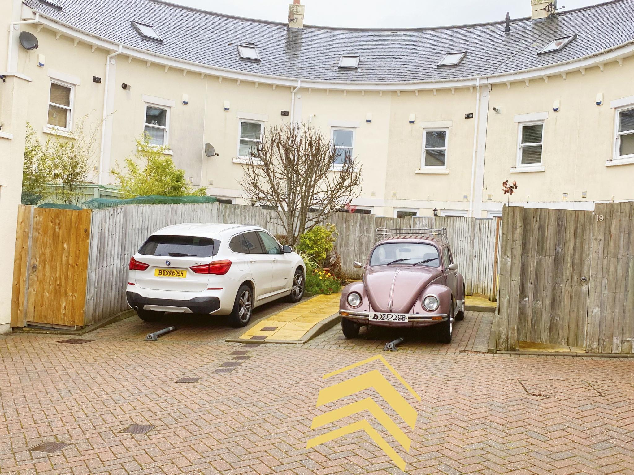 The property has a small south facing private courtyard which is accessed via the kitchen door and which is drenched in sunlight all day long. There is a garden sofa here plus a table and chairs as well as a collection of exotic plants in pots. The back gate leads to the secure allocated parking space.