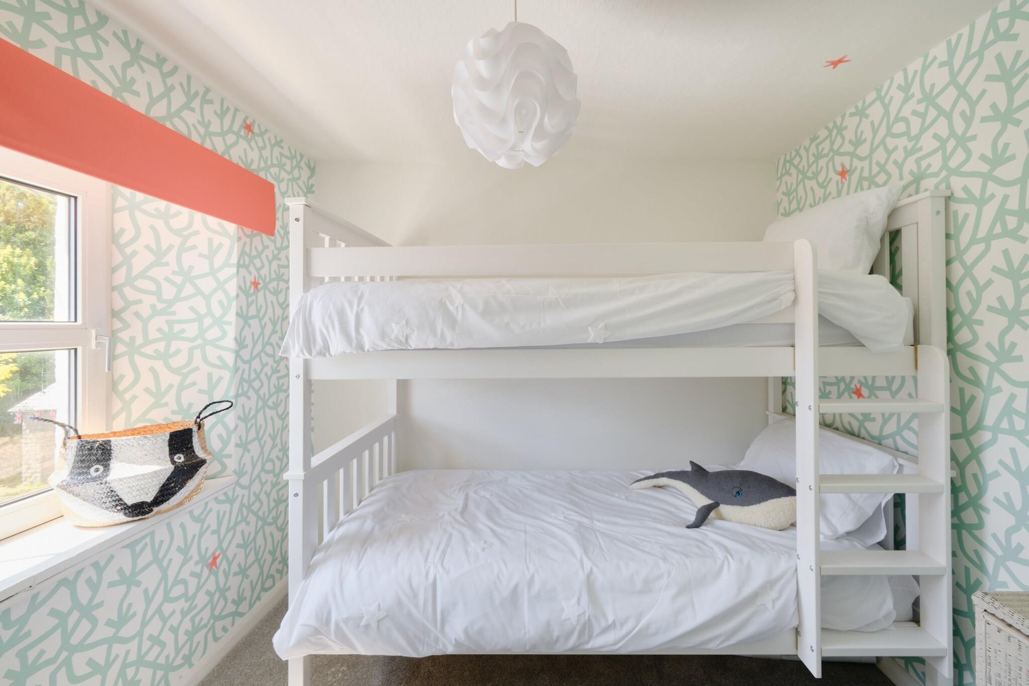 Dette nyligt renoverede, stilfulde feriehus tilbyder en perfekt blanding af traditionel charme og moderne bekvemmeligheder. Det har tre soveværelser, inklusive en kingsize seng, en dobbeltseng og et værelse med køjeseng, der kan rumme op til seks gæster komfortabelt. Ejendommen er kæledyrsvenlig og byder dine lodne venner velkommen under dit ophold. Den rummelige stue kan prale af generøse sofaer, en pejs med brændeovn og familievenlige underholdningsmuligheder såsom brætspil og dvd'er. Ejendommen omfatter også et køkken-alrum i åbent plan, ideel til socialt samvær og tilberedning af måltider. For udendørsentusiaster tilbyder den lukkede gårdhave plads til at opbevare strandudstyr eller vandreudstyr. Feriehuset er beliggende i den maleriske landsby Tywardreath, kun en kort gåtur fra lokale butikker, pubber og den fantastiske Par Beach, som er hundevenlig året rundt. Besøgende kan udforske South West Coast Path, med smukke gåture lige fra døren, eller nyde paddleboarding på nærliggende Golant. Den berømte by Fowey er inden for rækkevidde, og andre attraktioner som Eden Project og landsbyen Polruan er kun en kort køretur væk. Indeni har det fuldt udstyrede køkken en komplet ovn, fem-ring varmluftskomfur, kedel, brødrister, mikroovn og køleskab med fryser, der giver alt det nødvendige for et behageligt ophold. Familiebadeværelset inkluderer et badekar med en hovedbruser, stor håndvask og toilet. Den charmerende tidstypiske trappe fører til første sal, hvor soveværelserne er placeret. Udenfor giver den private have og gårdhave et fredeligt sted at slappe af og nyde aftensolens sidste stråler. Ejendommen tilbyder ikke privat parkering, men der er gratis parkering på gaden i nærheden.