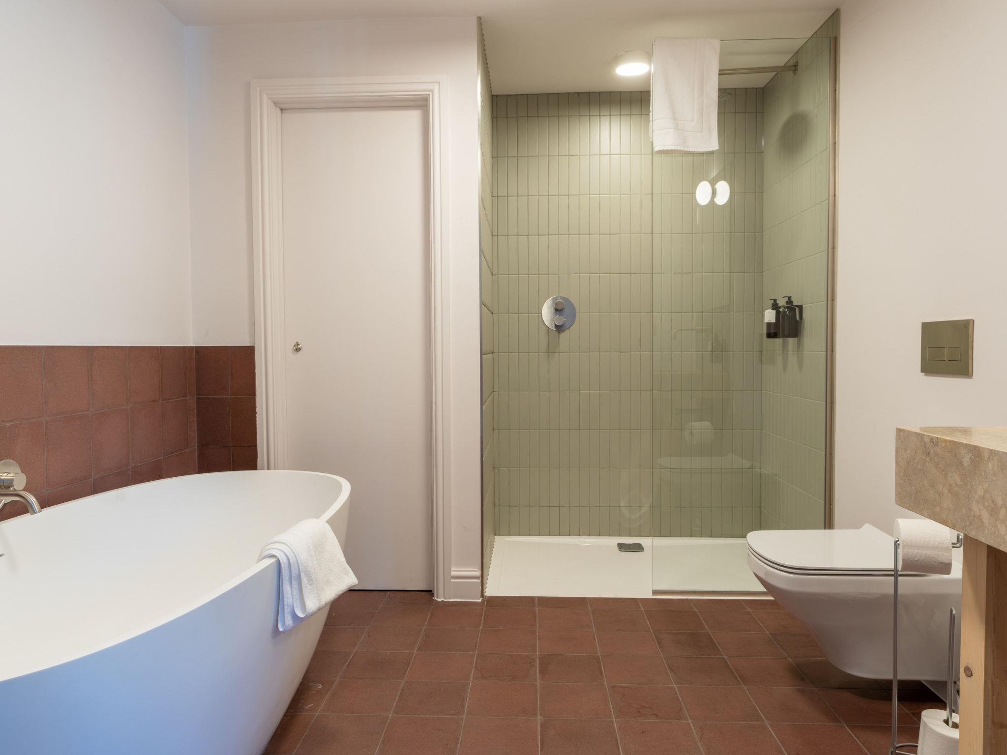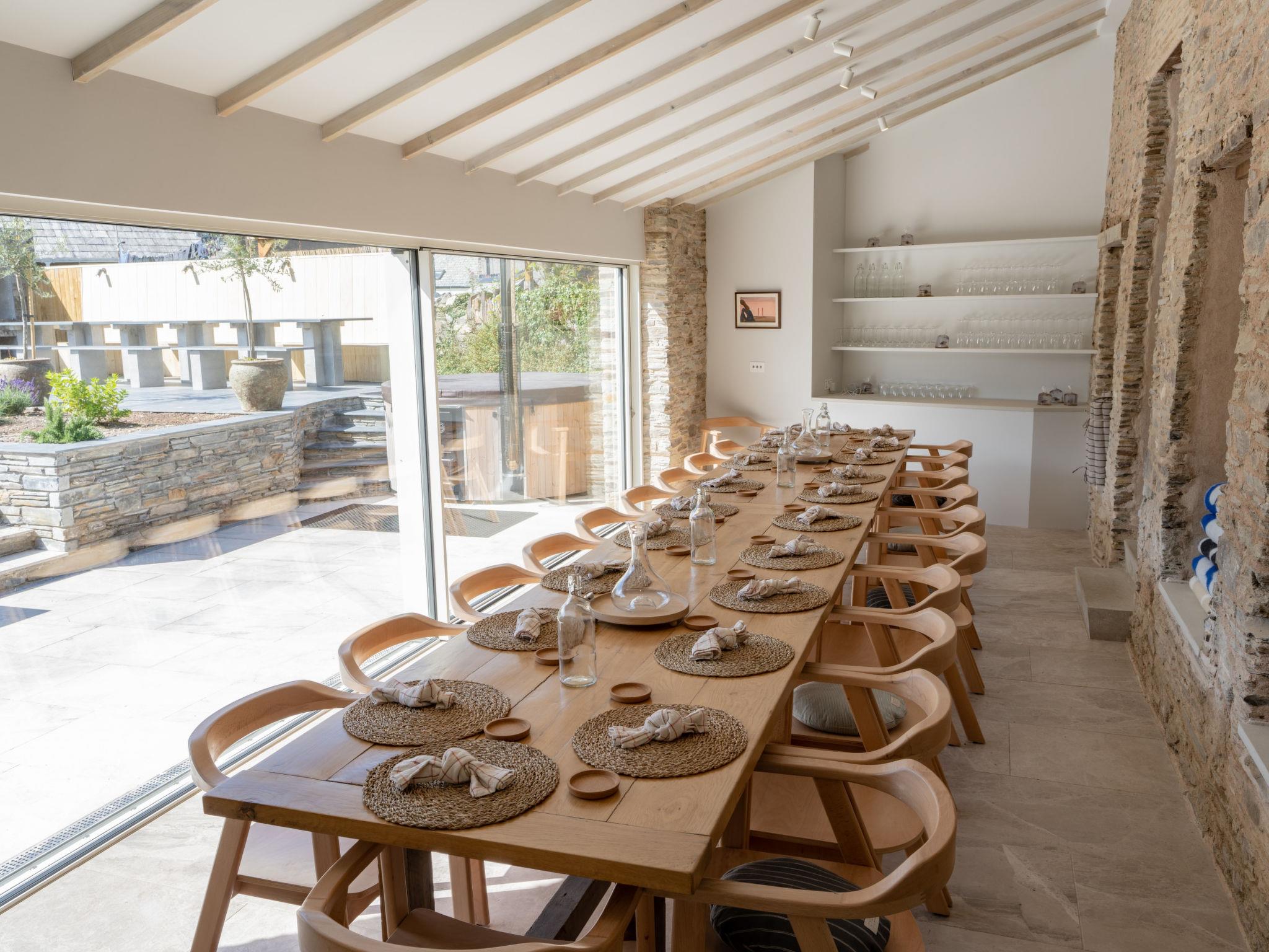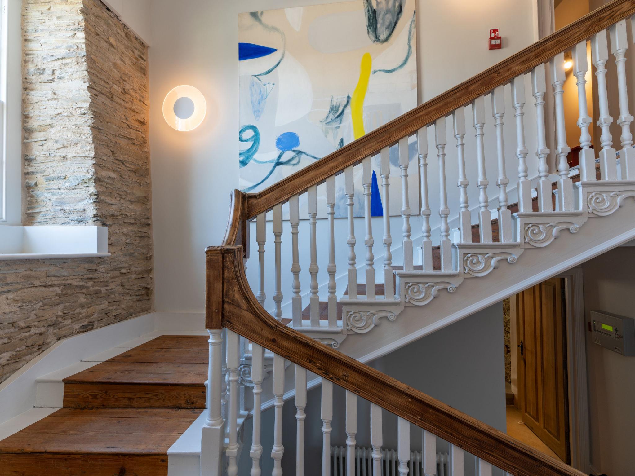 "Arc Padstow", 14-room house 465 m2. Object suitable for 26 adults. Living room with open-hearth fireplace and TV. 1 room with 1 french bed and TV. 1 room with 1 french bed. 1 room with 1 french bed. 1 room with 2 beds and 1 french bed. 1 room with 1 french bed. 1 room with 1 french bed. 1 room with 1 french bed. 1 room with 1 french bed. 1 room with 1 french bed. 1 room with 1 french bed. 1 room with 1 french bed. 1 room with 1 french bed. Dining room. Kitchen (oven, dishwasher, toaster, kettle, microwave, freezer, electric coffee machine). 5 baths/WC, 7 showers/WC, sep. WC. Terrace. Barbecue. Facilities: washing machine, iron. Internet (WiFi, free). Parking (10 cars). Please note: non-smokers only. 2 pets/ dogs allowed. Smoke alarm.