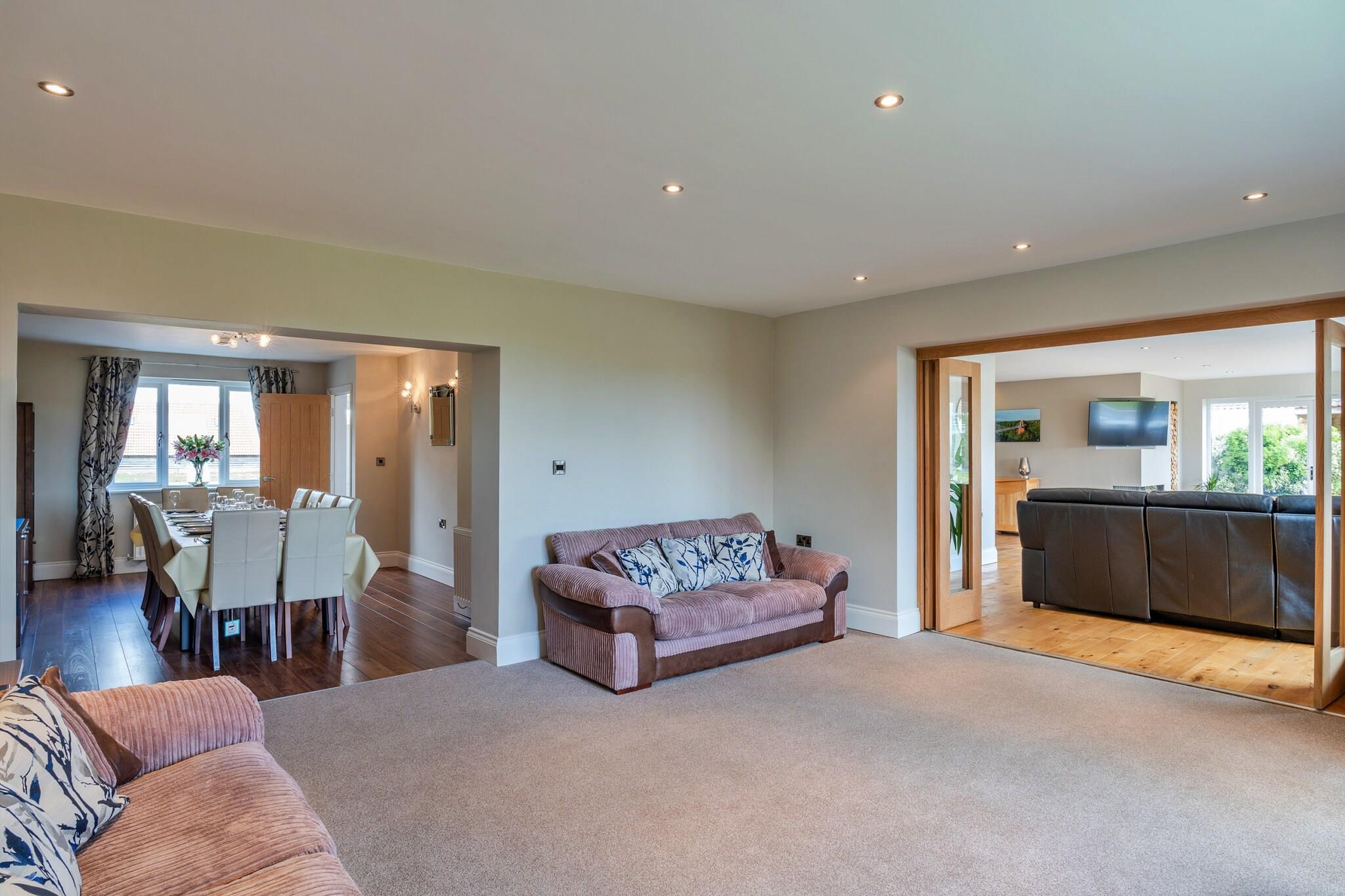 Denne rummelige og charmerende bondegård tilbyder den perfekte flugt på landet, ideel til store familier eller vennegrupper. Med fem generøst store soveværelser i hovedhuset og et separat anneks med 1 soveværelse, kan ejendommen komfortabelt rumme op til 12 gæster. Stuehuset er kæledyrsvenligt, hvilket sikrer, at dine lodne venner også kan deltage i ferien. Slap af i den store, private have med en bæk, der løber ved siden af, eller forkæl dig selv i det udendørs spabad, perfekt til at slappe af under stjernerne. Beliggende i den smukke by Weston-Super-Mare på Somerset-kysten, er dette bondehus kun en kort køretur fra byens berømte sandstrande og ikoniske Grand Pier. Udforsk de lokale attraktioner, herunder SeaQuarium og Animal Farm Adventure Park, perfekt til familieudflugter. Med sin blanding af traditionel charme ved havet og moderne bekvemmeligheder tilbyder Weston-super-Mare noget for enhver smag, uanset om du nyder strandaktiviteter, lokal shopping eller livlige spiseoplevelser. Området er også godt placeret til naturskønne vandreture og udendørs eventyr i det omkringliggende landskab. Indvendigt byder stuehuset på en ekspansiv, lysfyldt stueetage med flere opholdsområder, perfekt til store forsamlinger. Det fuldt udstyrede køkken og den separate spisestue kan være vært for op til 12 gæster til mindeværdige måltider sammen. Nyd filmaftener ved pejsen i den hyggelige lounge eller træk dig tilbage til familieværelset for en stille stund. Ovenpå er soveværelserne designet til komfort og afslapning med luksuriøse ensuite badeværelser og en fantastisk udsigt over landskabet