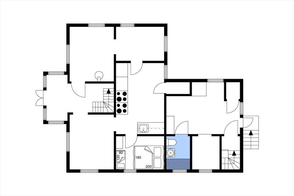 Feriehuset blev i 1905 oprindeligt opført i træ og er sidenhen blevet pudset. Under den delvise renovering blev der lagt vægt på, at bibeholde husets oprindelige karakter og charme. Man kommer ind i huset via en lukket veranda med et godt lysindfald og fine møbler. Huset har to stuer begge indrettet med siddemøbler. Den ene stue har et bord og et lille skrivebord. Den anden stue har TV med Chromecast og en gammel støbejerns brændeovn. Fra den ene stue er der videre adgang til en spisestue, efterfulgt af et køkken fra 1950'erne. Køkkenet er udstyret med opvaskemaskine, kaffemaskine, el-komfur med ovn og køleskab med fryseboks. Fra baggangen er der adgang til et soveværelse med dobbeltseng og til et badeværelse med badekar, håndvask og toilet. På førstesalen er to yderligere soveværelser begge indrettet med en dobbeltseng og en enkeltseng, så der i alt er 8 sovepladser i huset. Derudover kan der stilles en barneseng til rådighed. Huset har koldt og varmt vand og kan opvarmes med jordvarme. Der er gratis, ubegrænset WLAN via fibernet. I kælderen er en vaskemaskine og i haven står havemøbler, grill, trampolin og en gynge til børn.