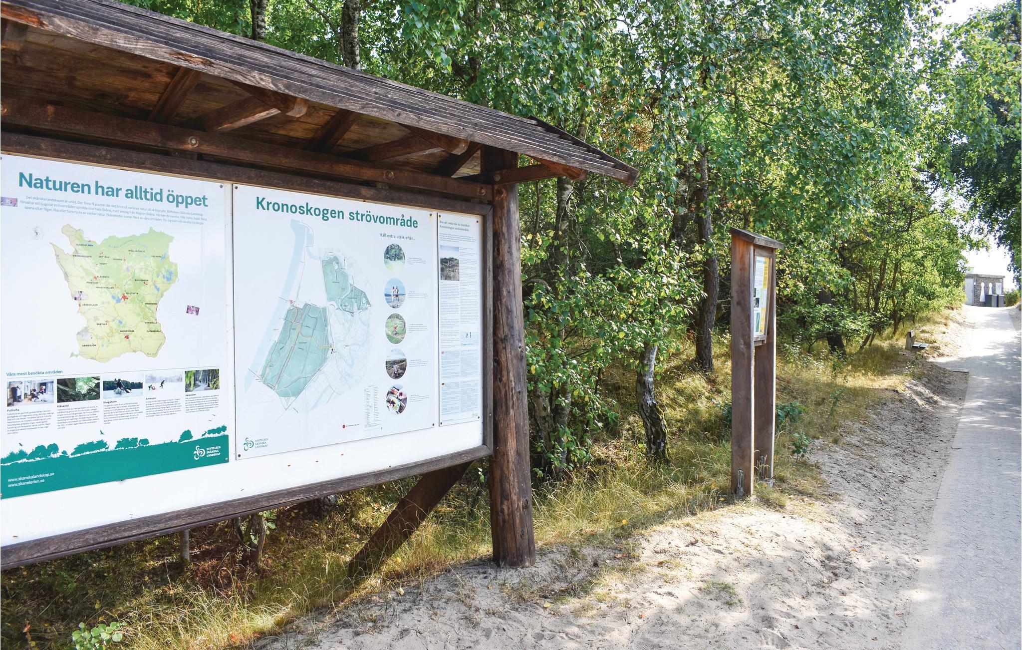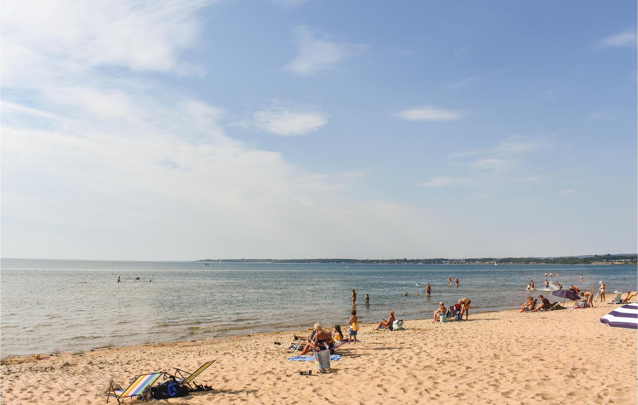 Bo i Klitterbyn, ca. 500 m fra Ängelholms Havsbad med skøn strand og gode bademuligheder i dette feriehus med kamin. Stranden strækker sig langt både mod nord og syd, fx Lomma, Båstad, Torekov og Tylösand. Der er hele 31 golfbaner inden for en afstand af 40 minutter i bil, Ängelholm er det område i verden der har næst flest forekomster af golfbaner. Husets beliggenhed i Ängelholm er perfekt til ture i tog til Malmö, Ystad og Simrishamn. I kan dykke og klatre på Kullahalvøen, med sit berømte kunstværk Nimis. I kan cykle mountainbike og prøve sommerkælk på Vallåsen og i Kungsbygget er der Äventyrspark. Ved Sibirien stranden er der BMX arena og ved den nærliggende Västersjön og ved Rönne å kan i leje kano, her kan I både sejle og fiske – hvad der også kan lade sig gøre i Vege å og i Øresund. Prøv også turbåd på Rönne å. I Hembygdsparken i Ängelholm er der dyr, legepark, restaurant, cafe og teater samt järnvägs- og flygmuseum. I området omkring huset er der gode cykel- og vandrestier, fx Lergöksrundan eller langs stranden. S1 er gennemgangsrum. Der er ikke dør mellem S1 og S2.